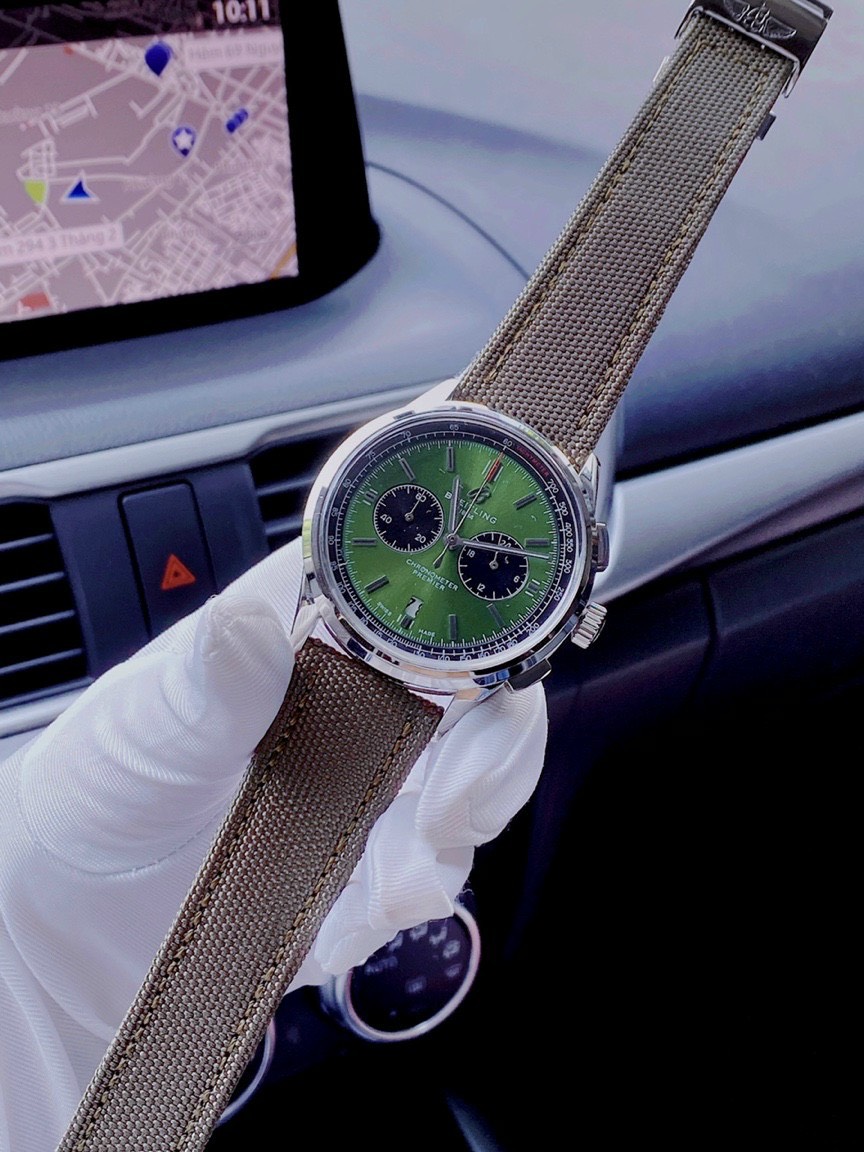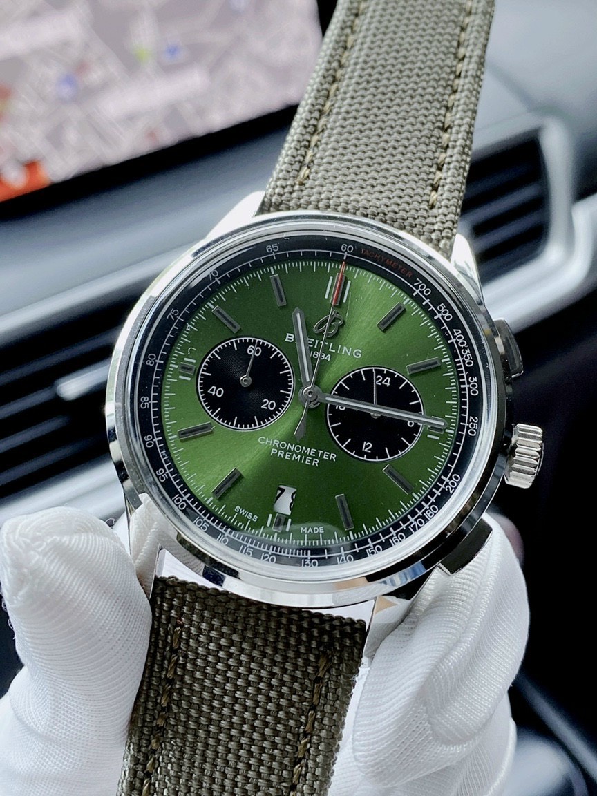 - Đồng hồ Breitling 1884 dây da mặt xanh ngọc lục nổi bật phong cách