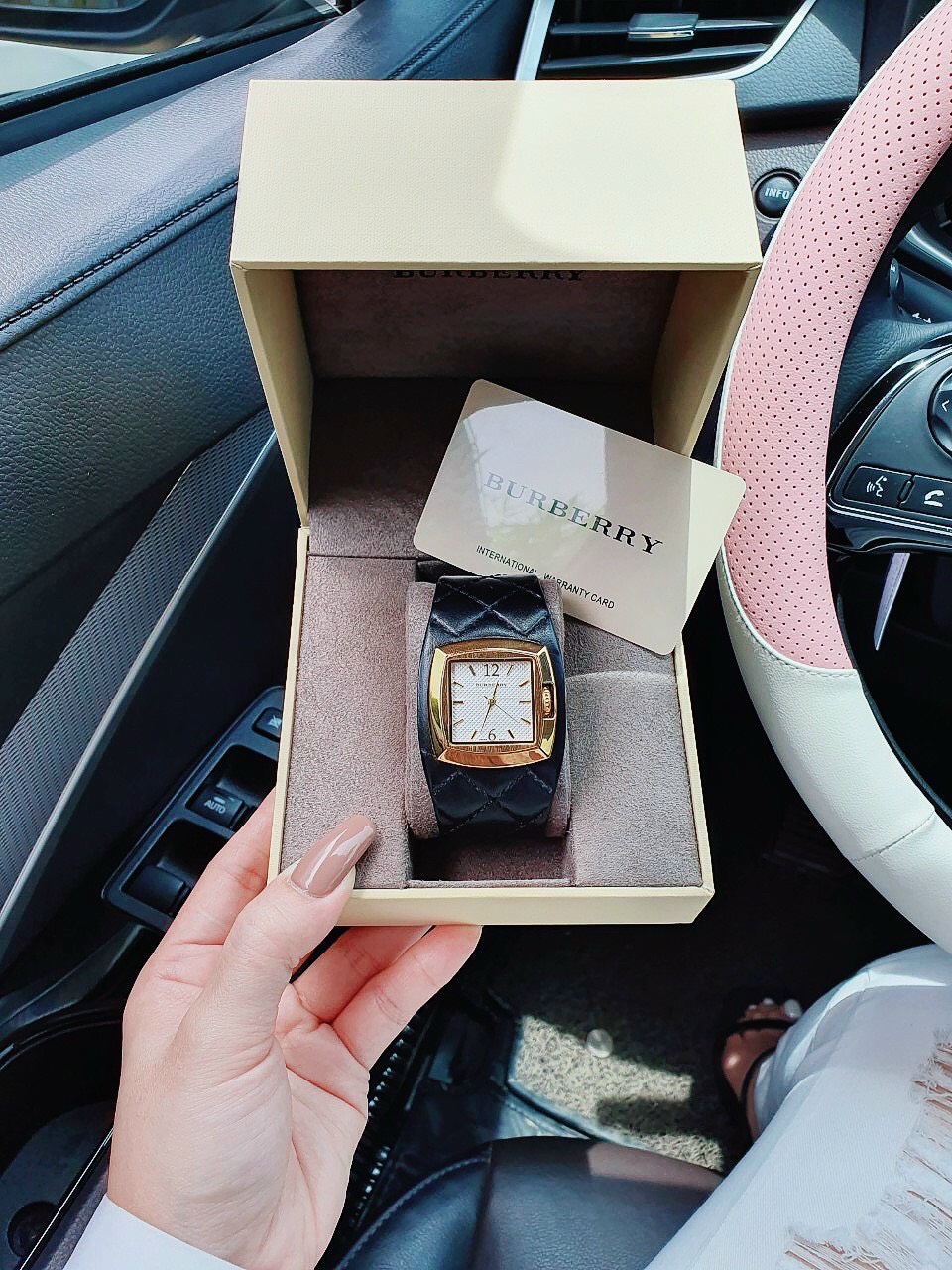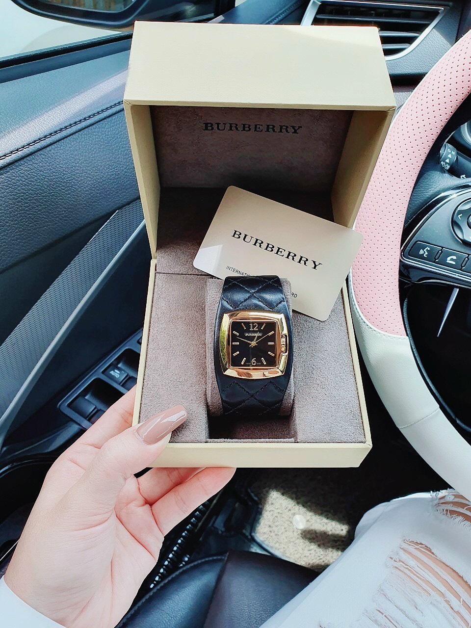 Đồng hồ Burberry nữ siêu cấp mặt vuông dây da màu đen 34mm