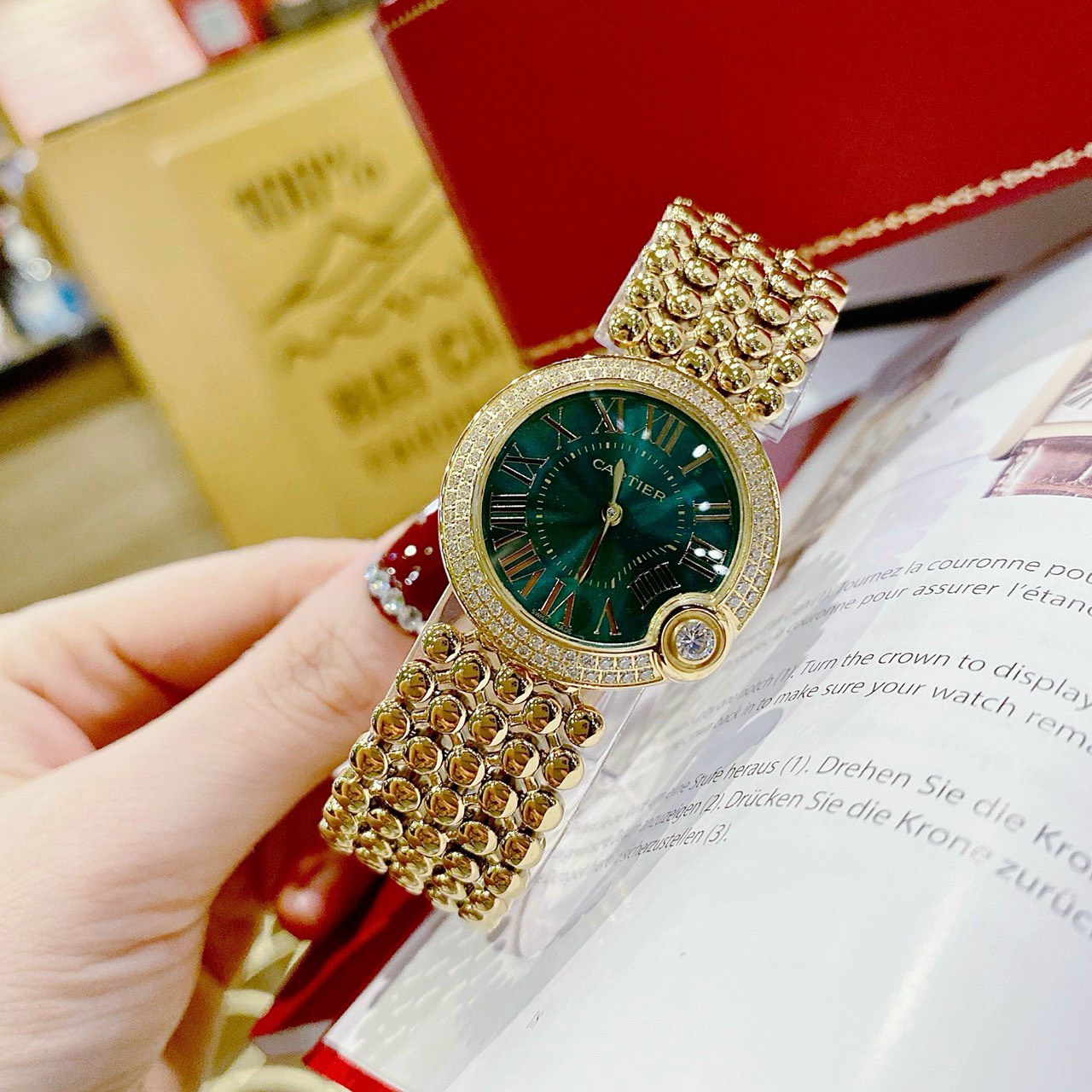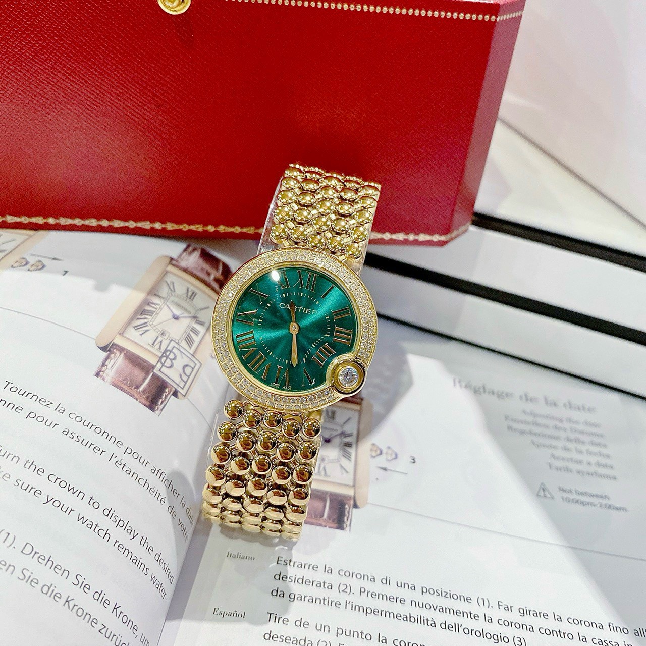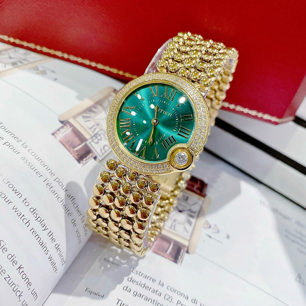 Thông số- Đồng hồ Cartier nữ mặt tròn đính đá