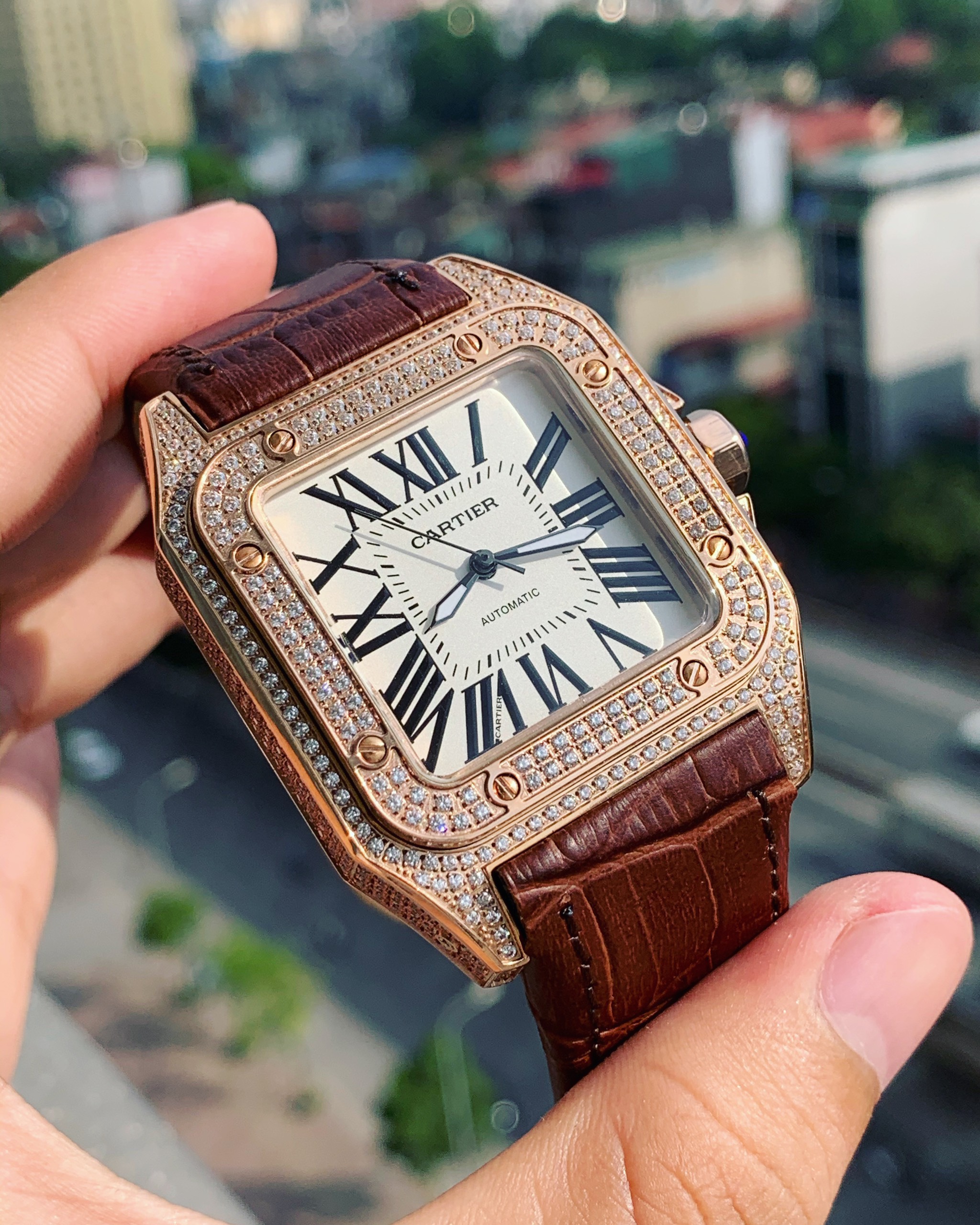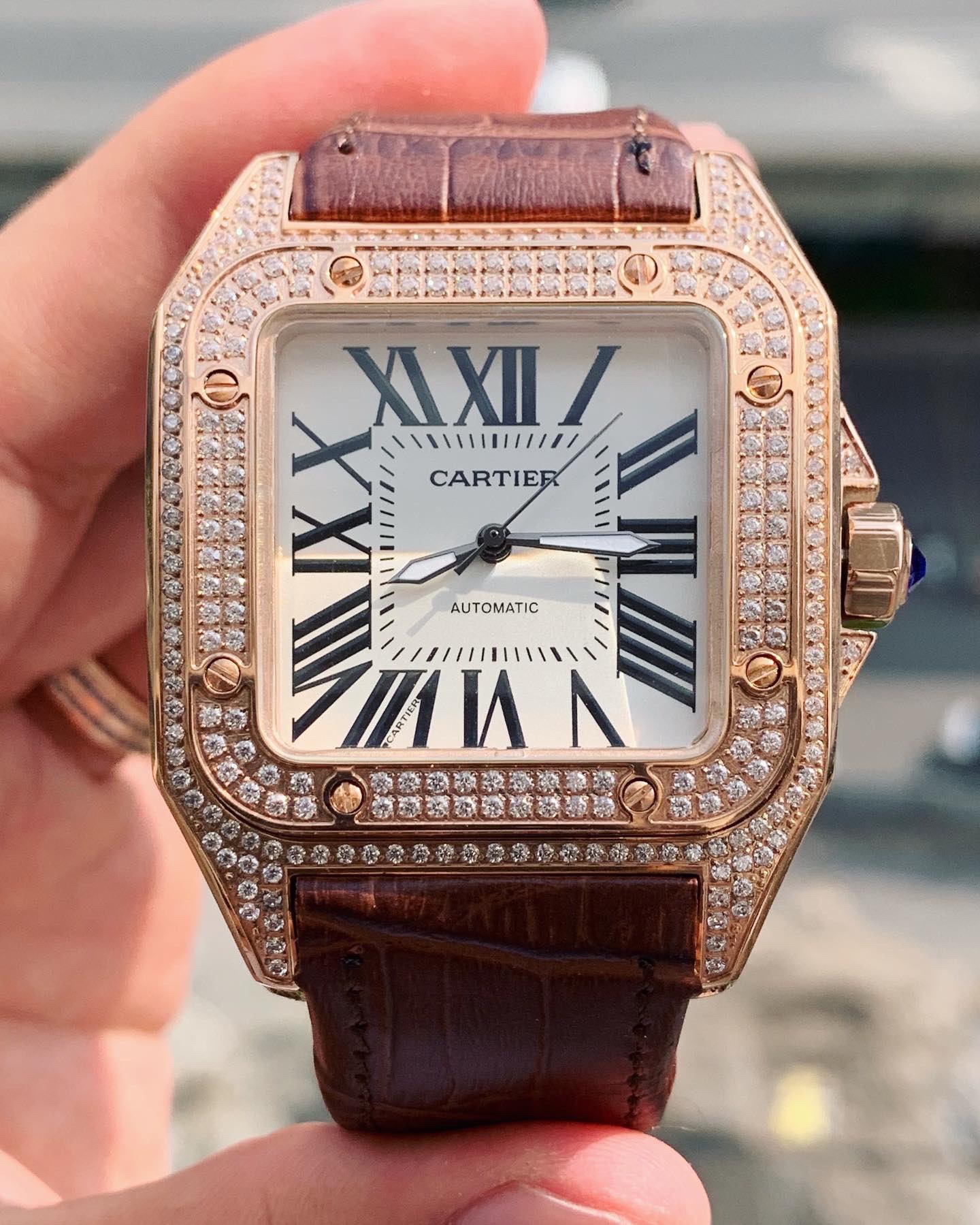 Đồng hồ Cartier nam dây da Cartier Automatic đính đá Super Fake 40mm