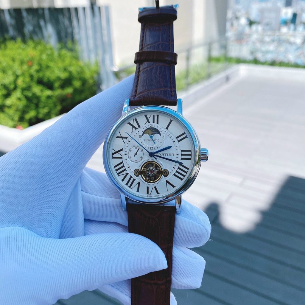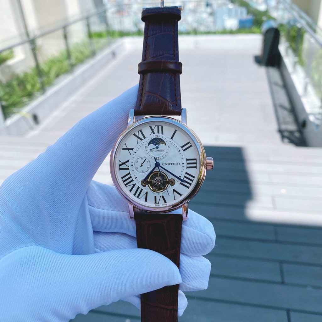 Đồng hồ Cartier nam dây da màu nâu Cartier Automatic Super Fake 42mm