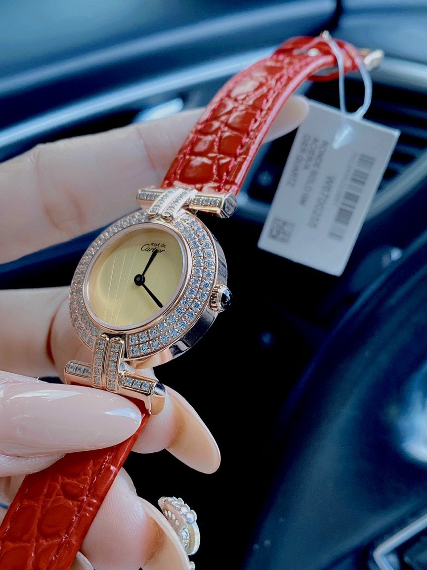 Đồng hồ Cartier nữ đính đá – phối hợp ăn ý với thời trang, dễ kết hợp với các bộ trang phục khác nhau cho những dịp khác nhau như đám cưới hay tiệc tùng sang trọng.