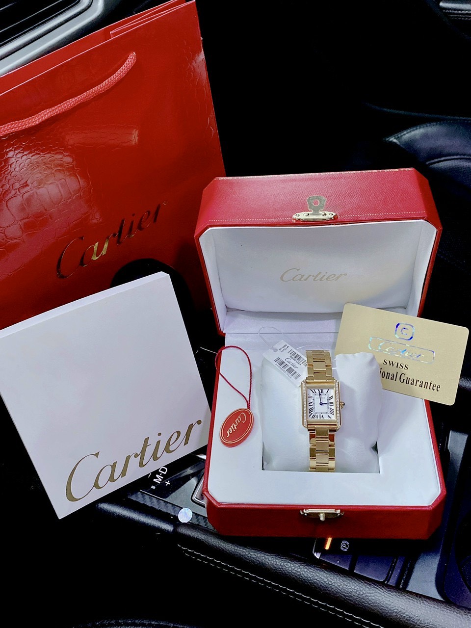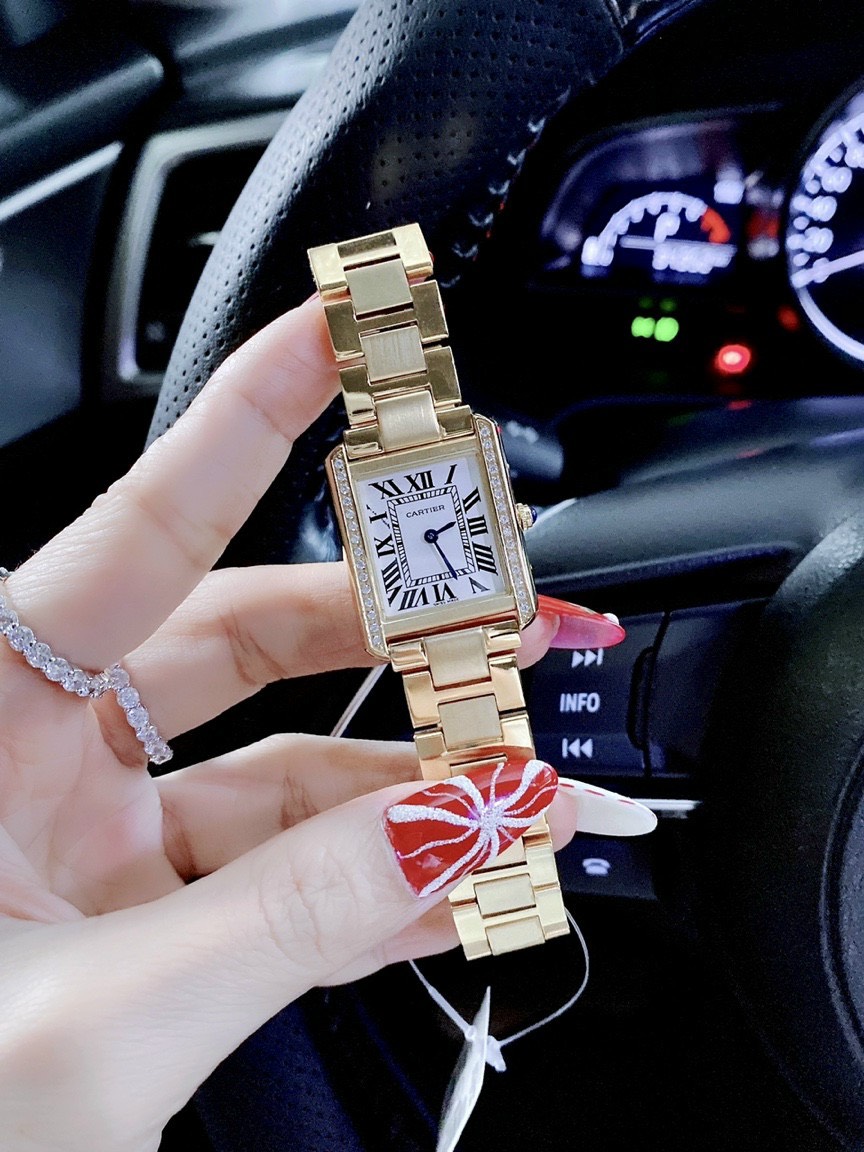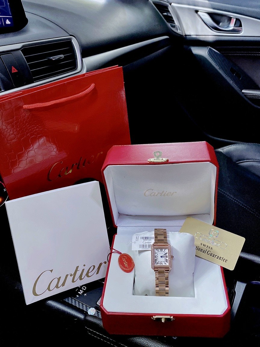 Đồng hồ Cartier nữ mặt vuông đính đá Cartier Tank Diamond Super Fake 36mm