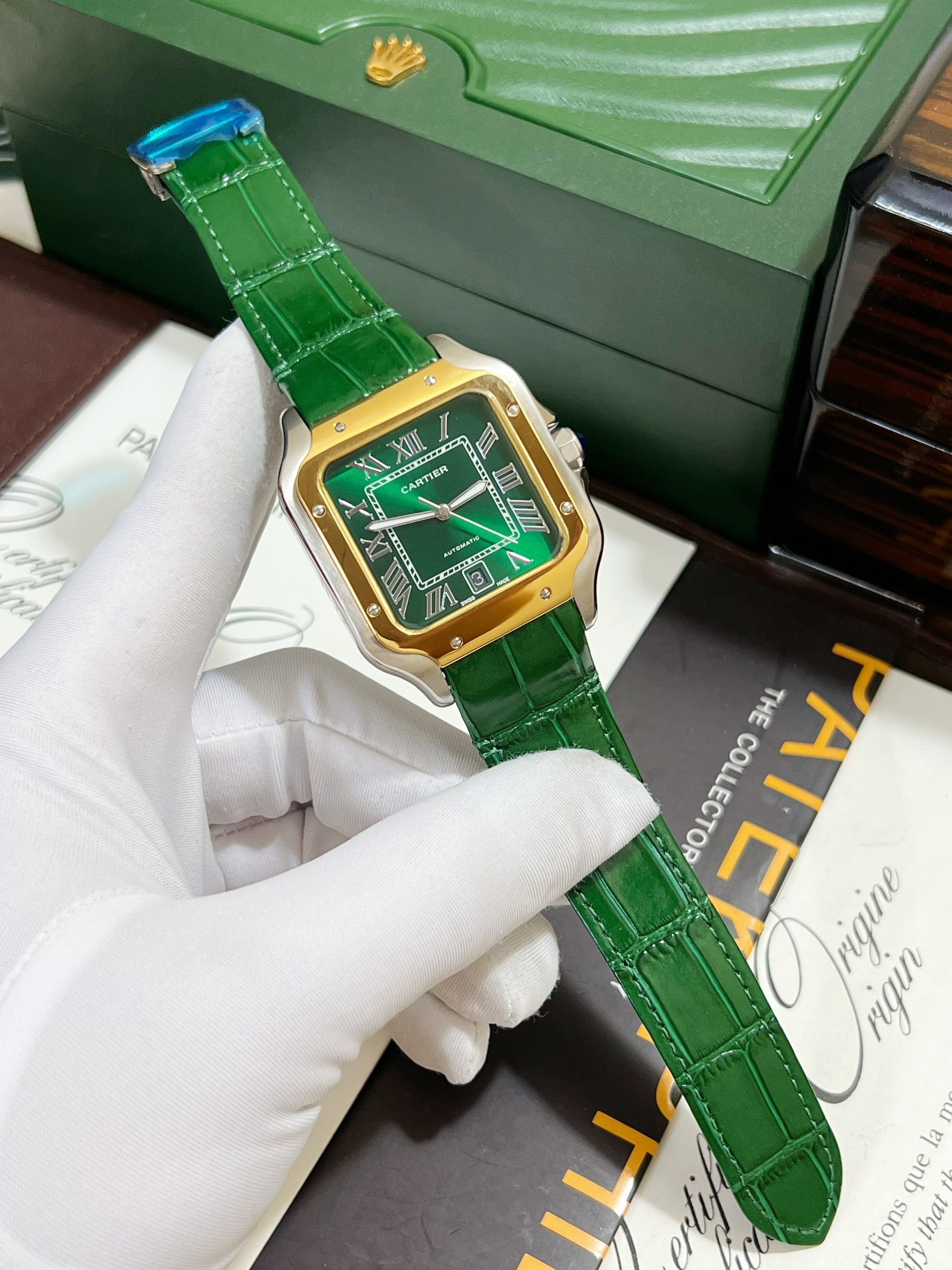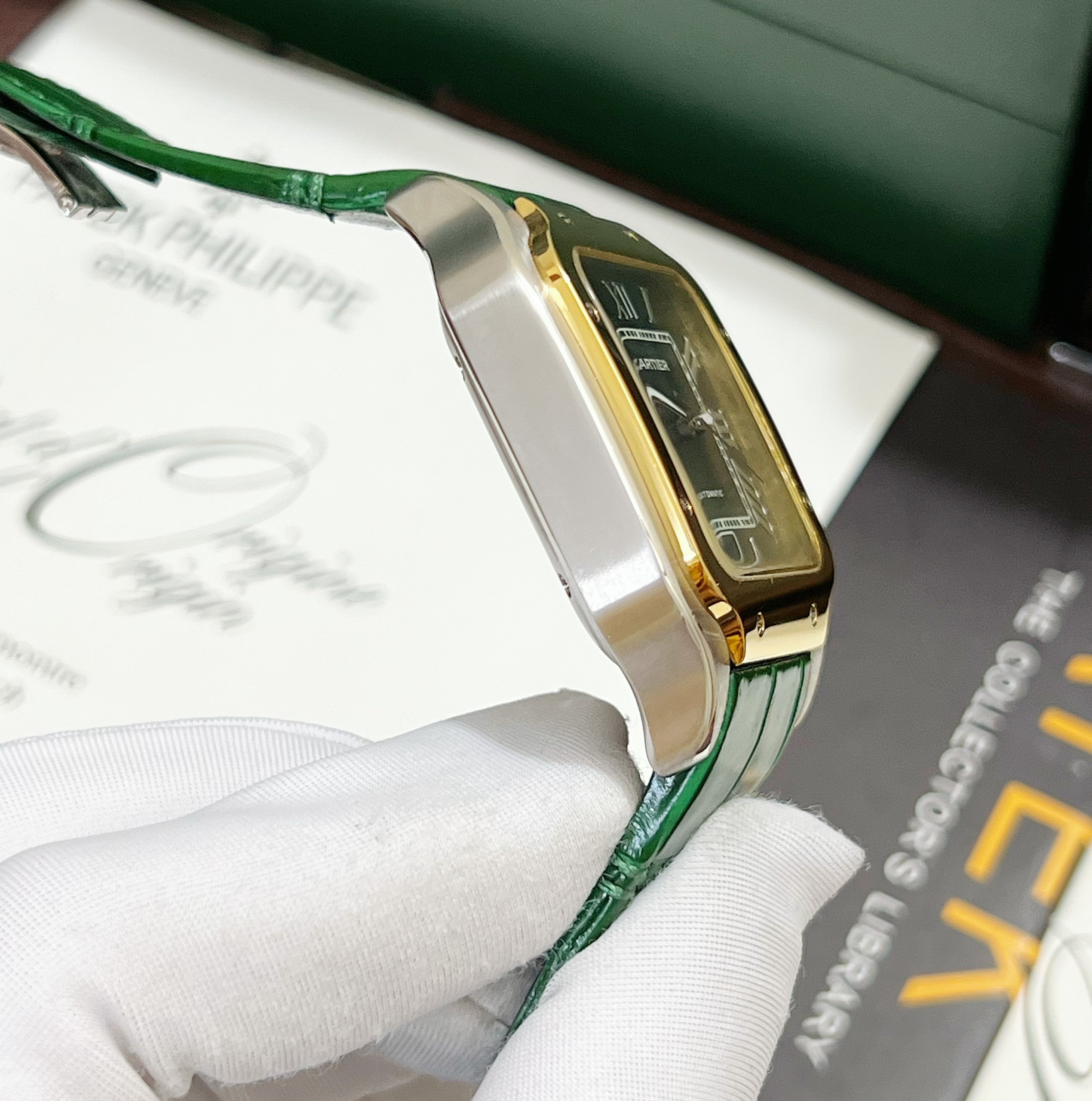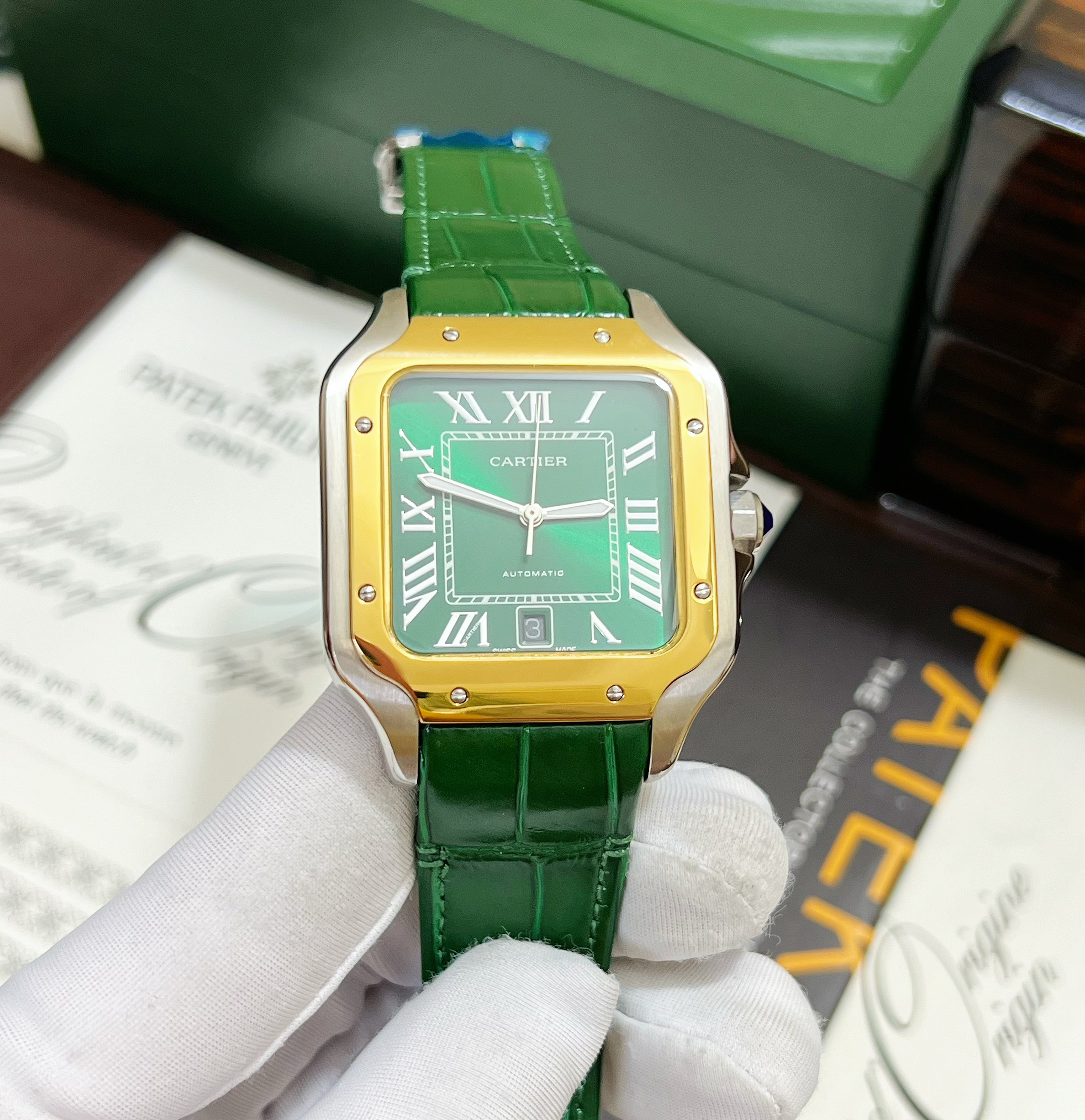 Đồng hồ Cartier Santos nam màu demi Super Fake 11 giá rẻ