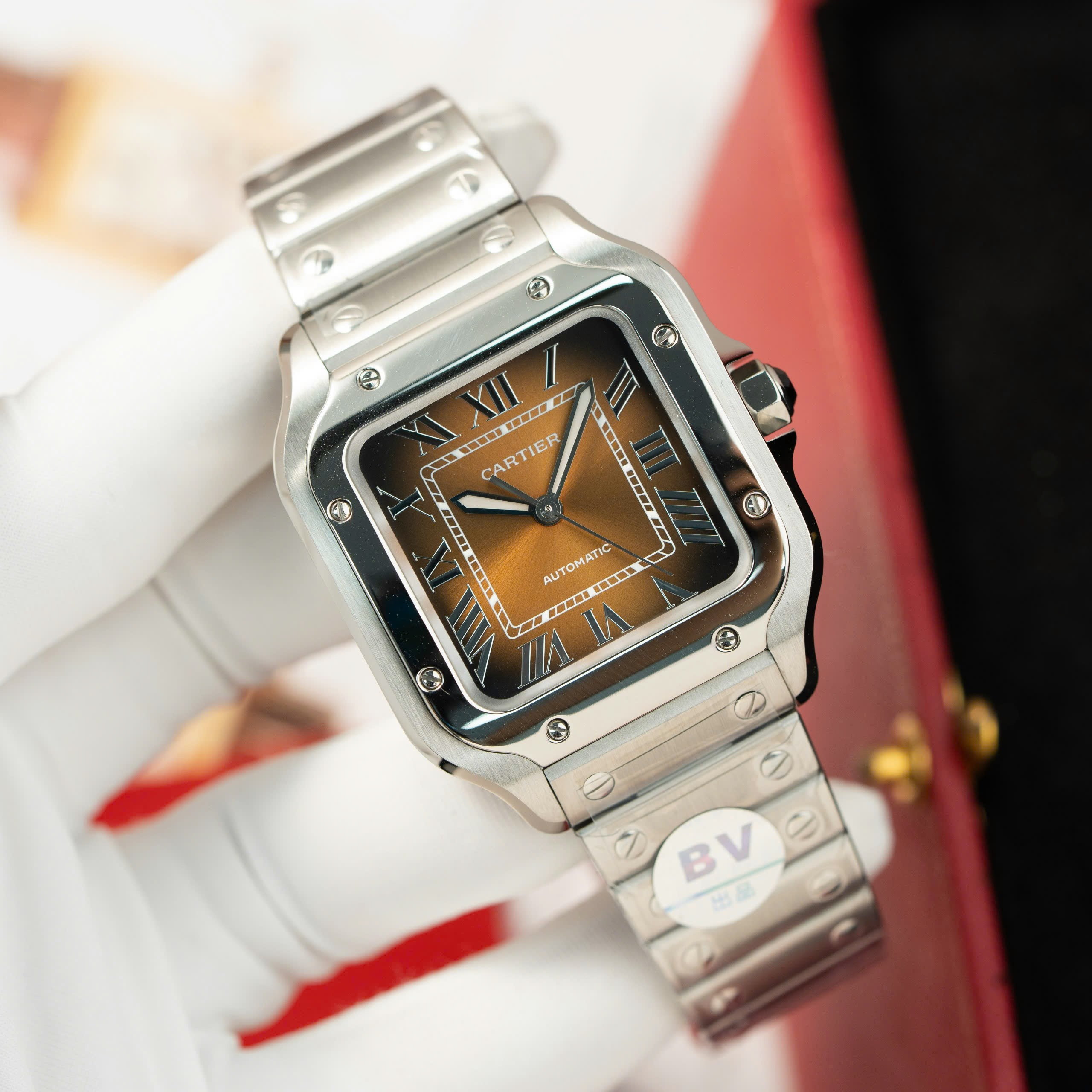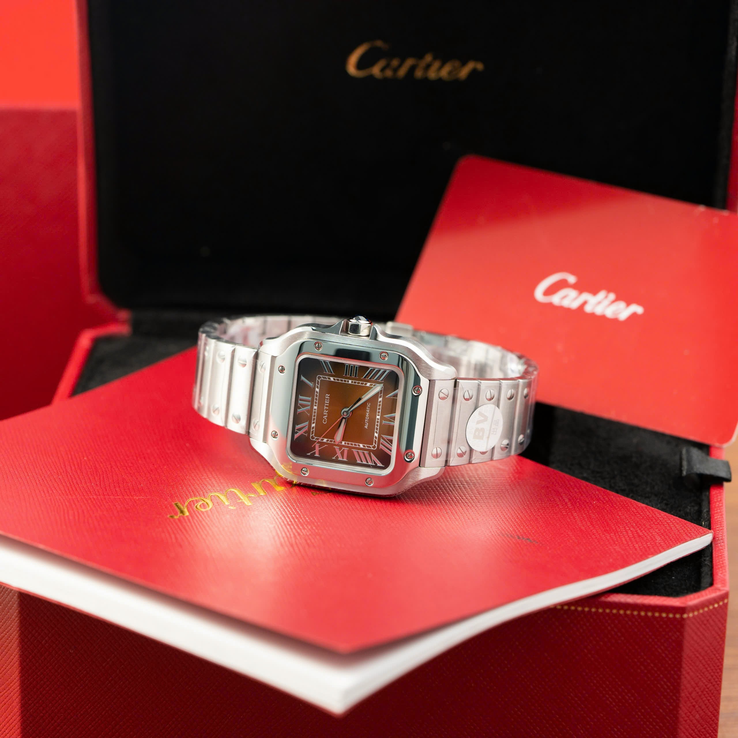 Đồng hồ Cartier Santos Rep 11 cao cấp nữ mặt nâu nhà máy BV phiên bản cao cấp nhất tại DWatch.