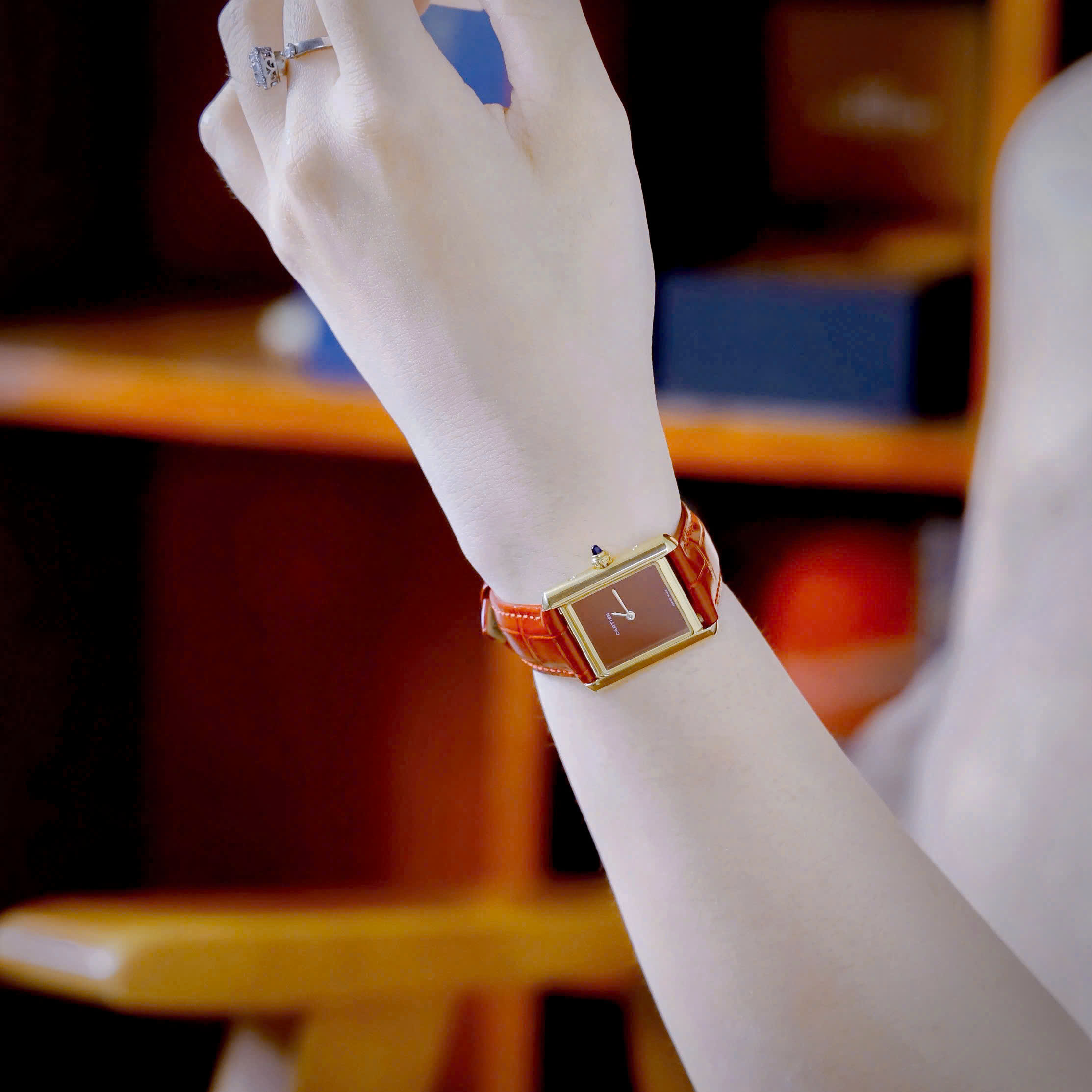 Đồng Hồ Cartier Tank Louis Nữ Vàng Gold Dây Da Đỏ Fake Cao Cấp 24x32mm