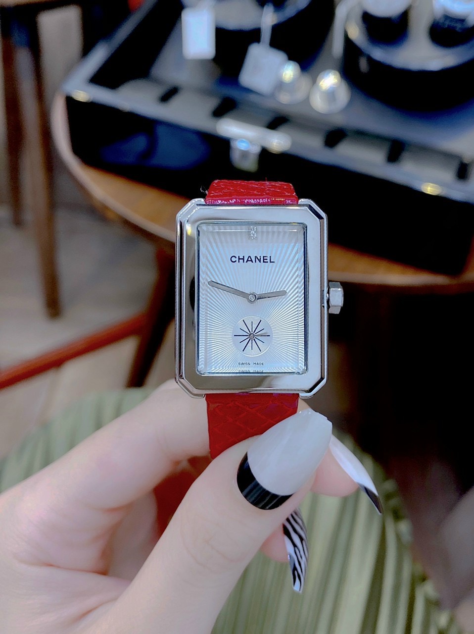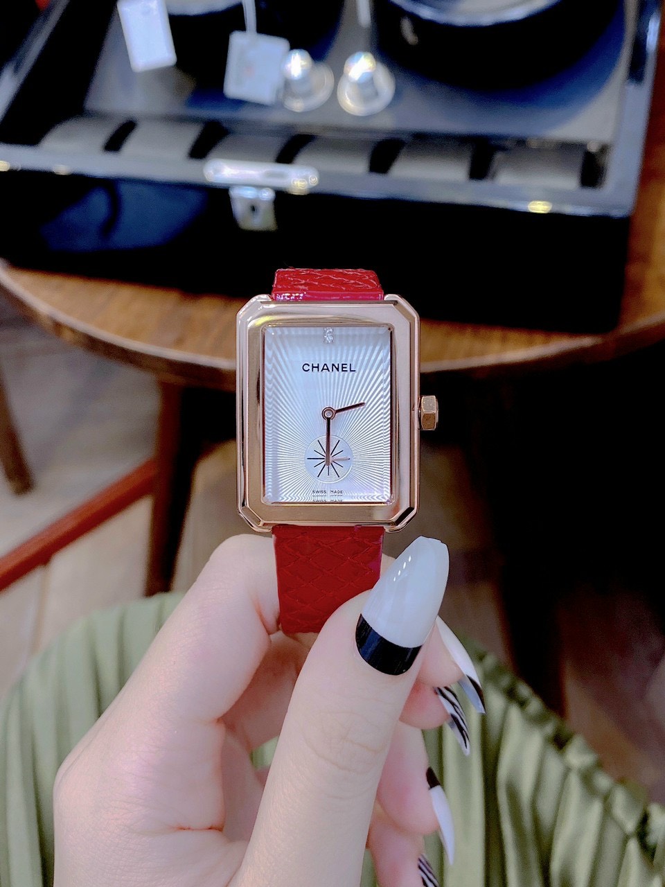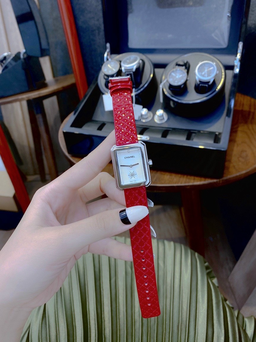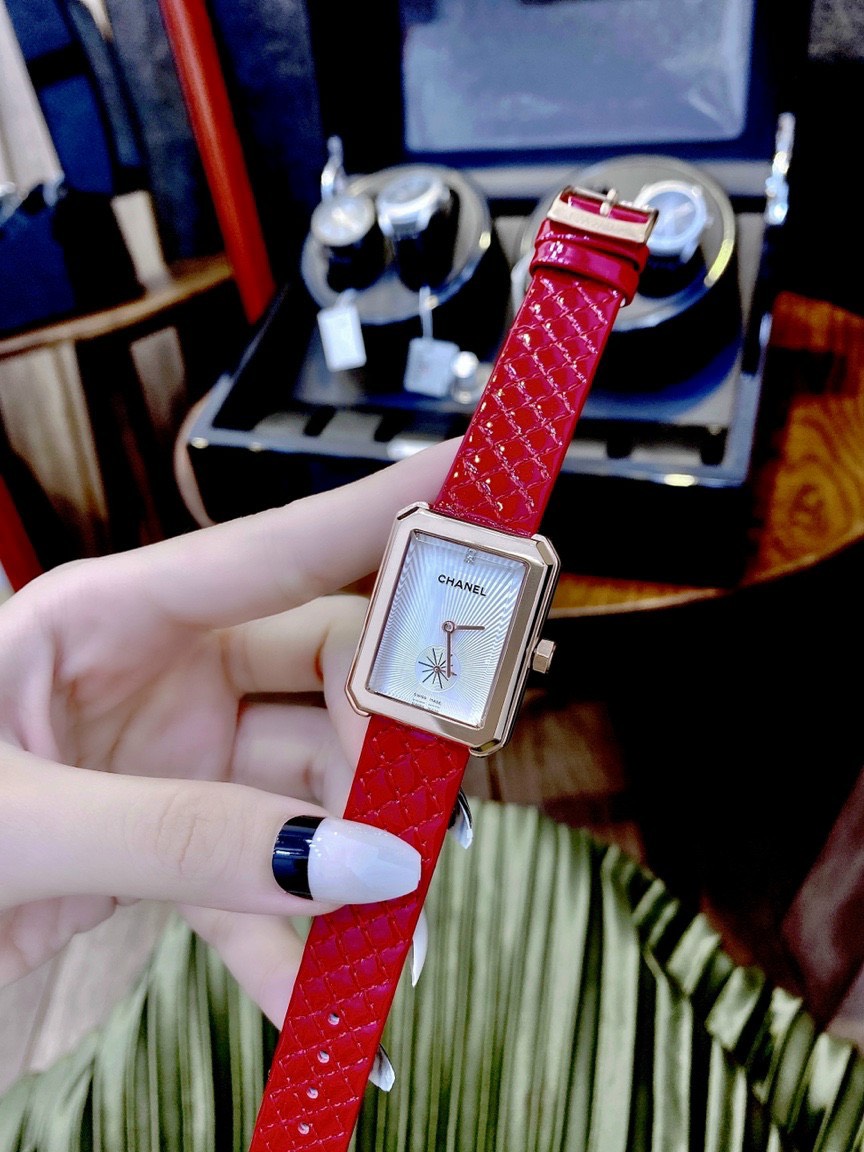Đồng hồ Chanel nữ dây da màu đỏ quả trám Chanel Boy-Friend