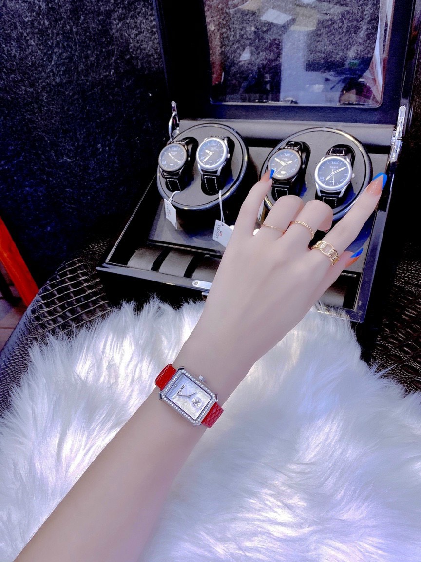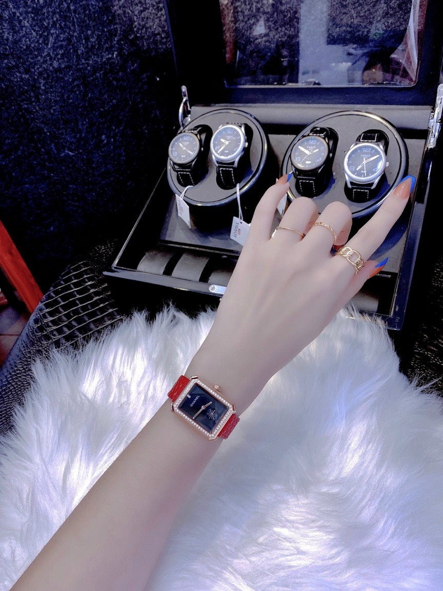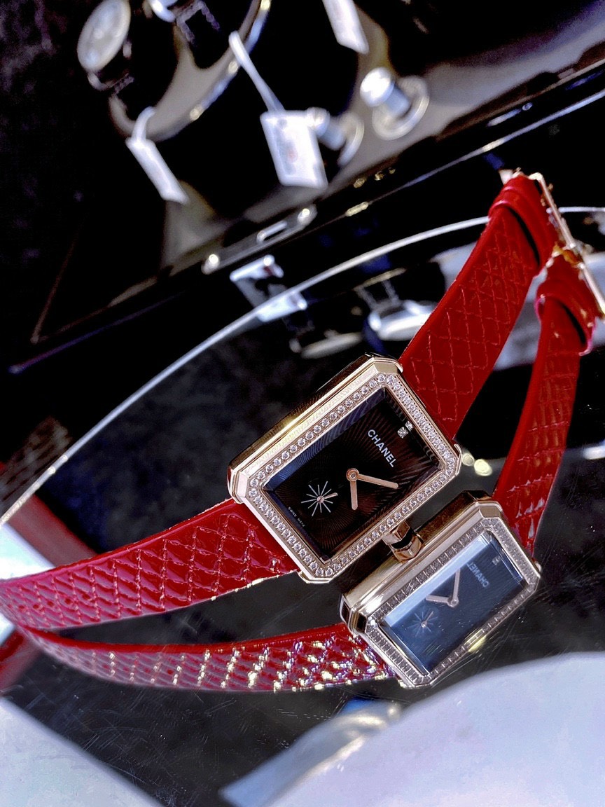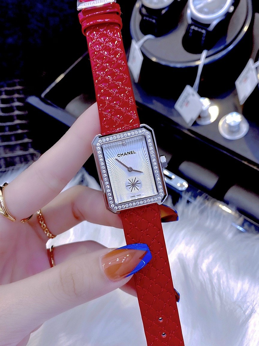 Đồng hồ Chanel nữ dây da màu đỏ quả trám Chanel Diamond Boy-Friend 35mm