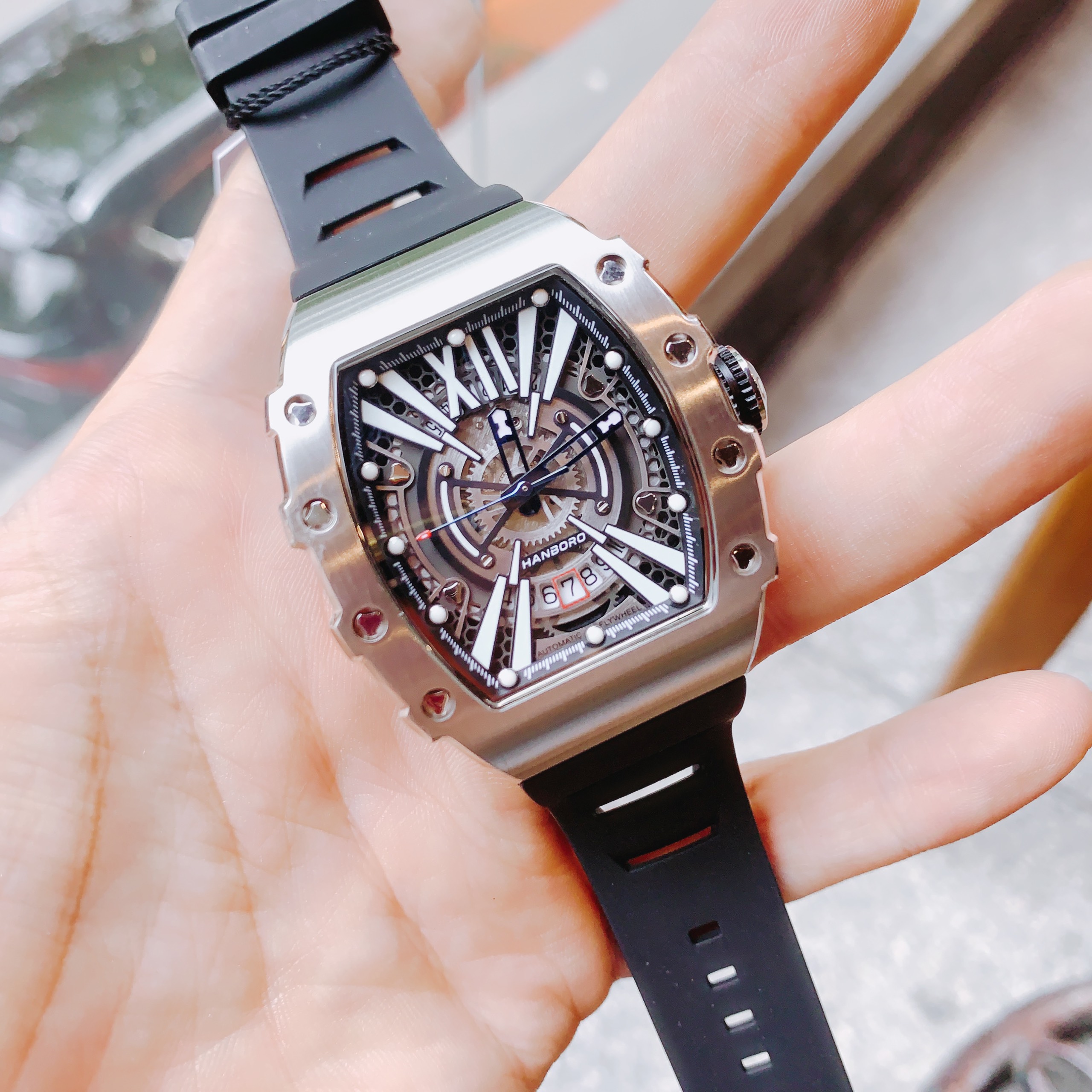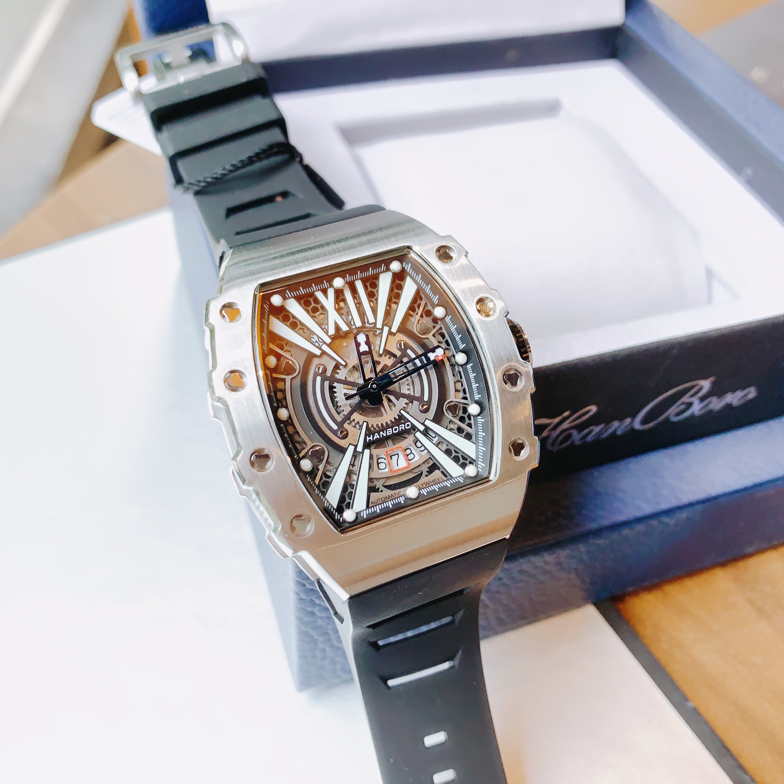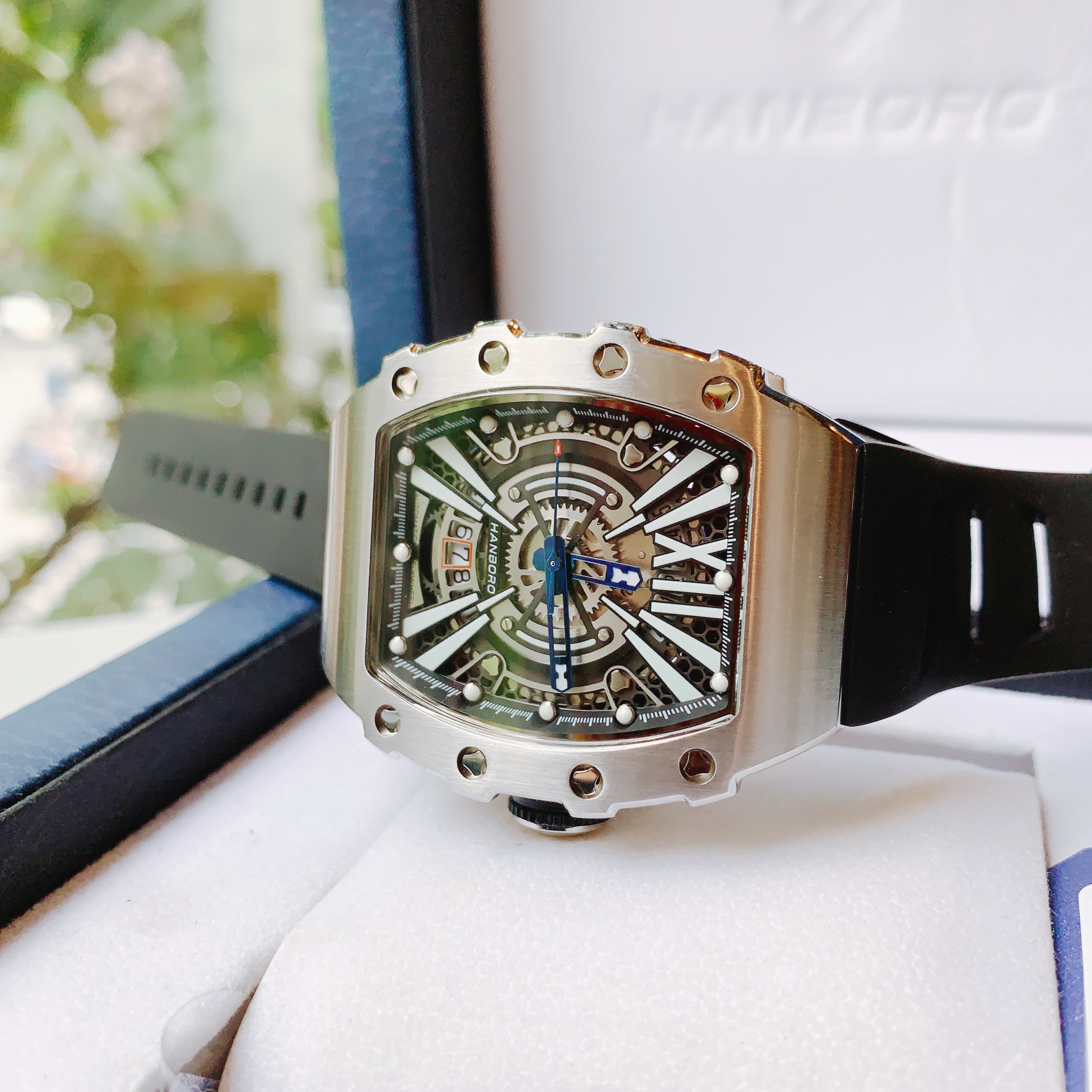Đồng hồ chính hãng Hanboro nam cọc số da quang 40x48mm