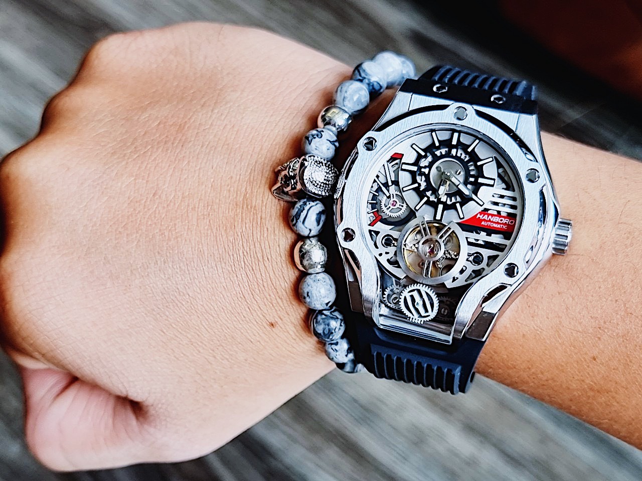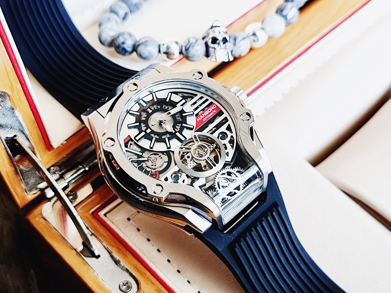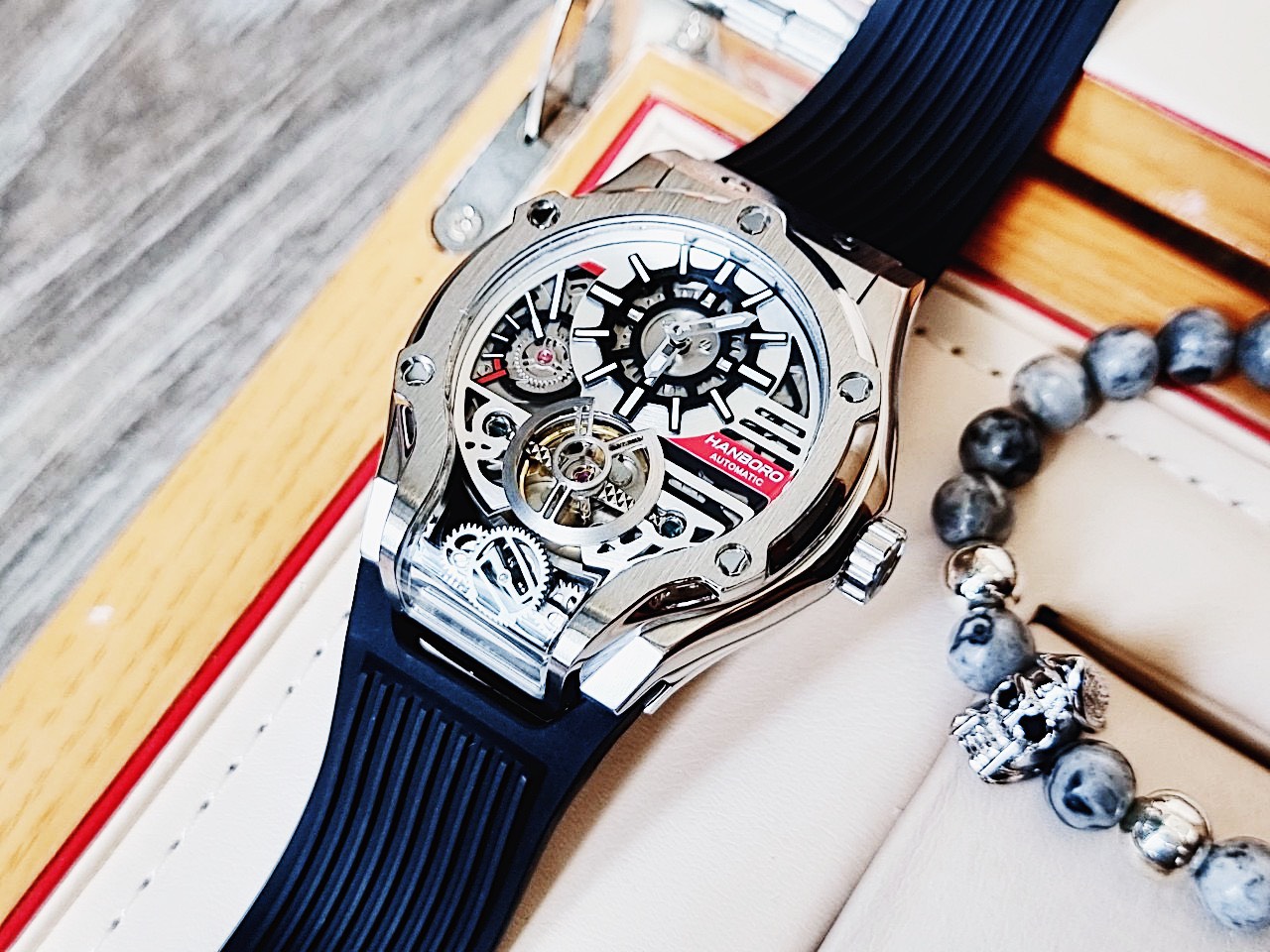 Đồng hồ cơ lộ máy Hanboro by Huboler nam chính hãng màu đen 45mm