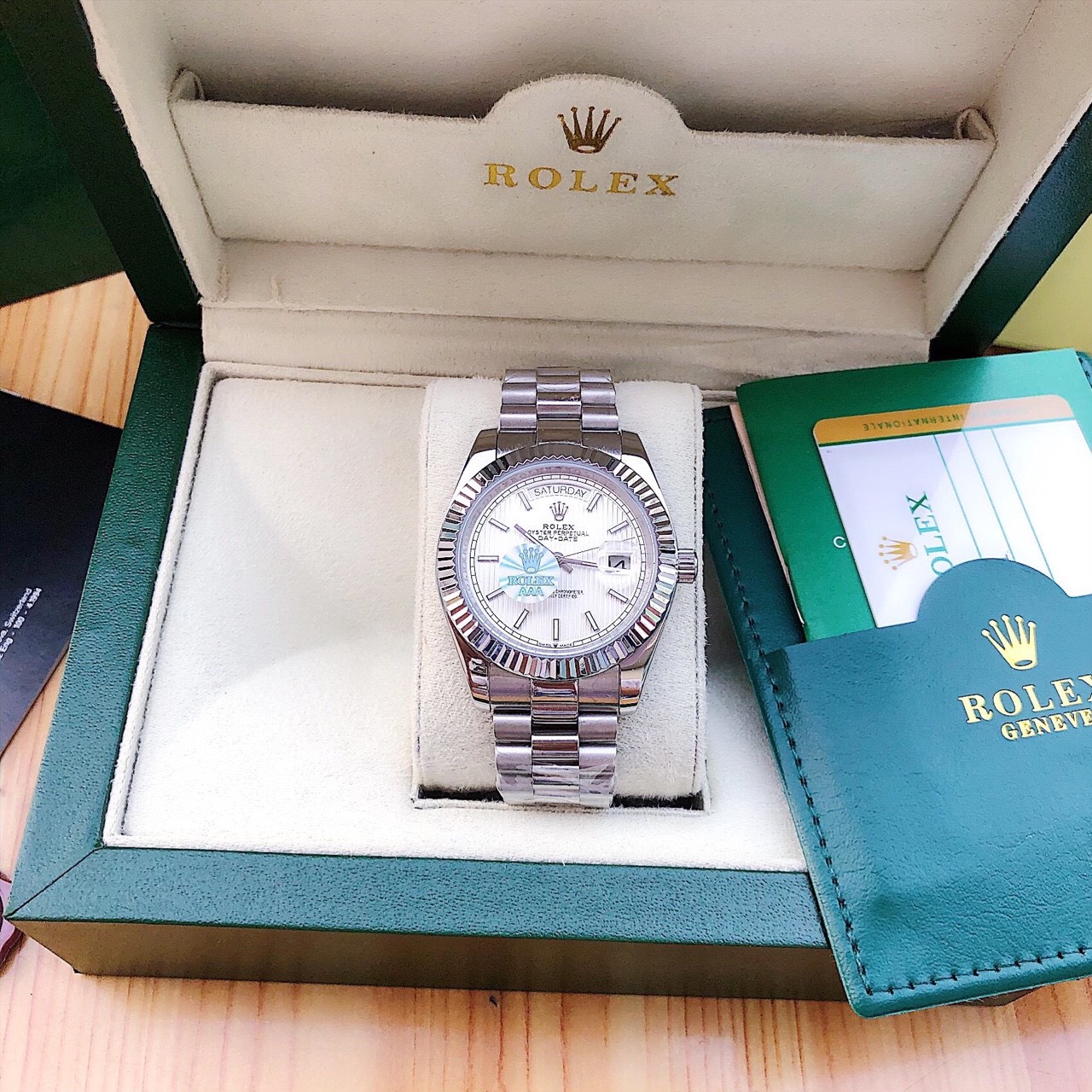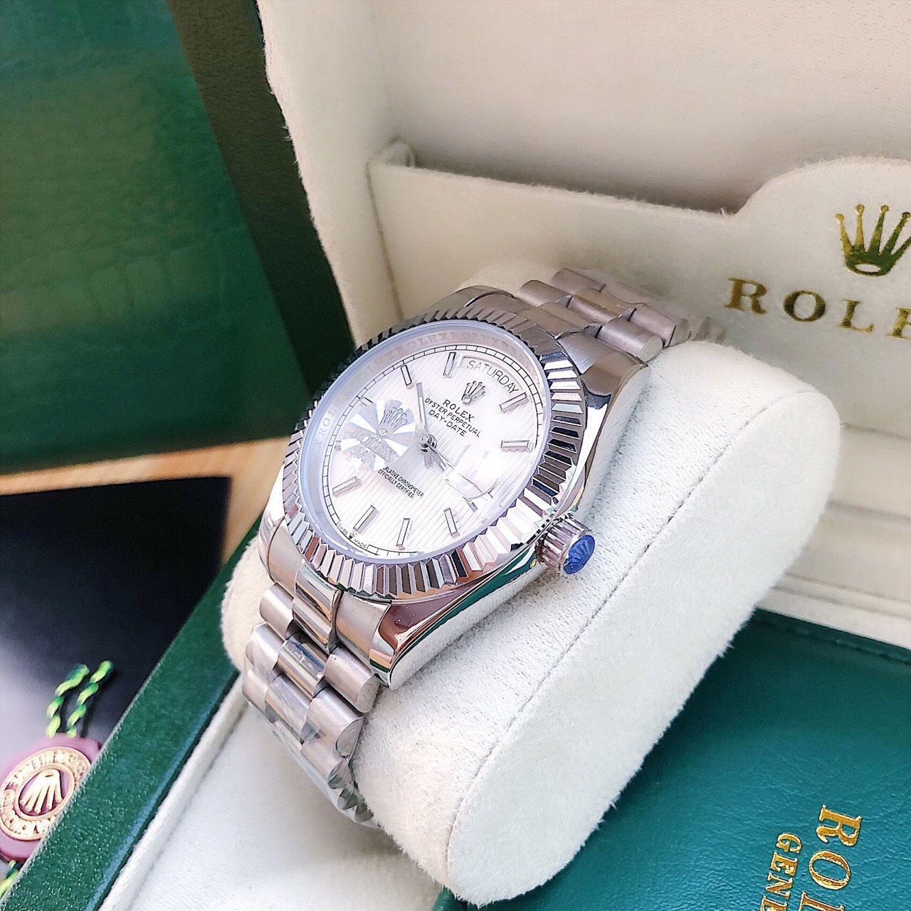 Tiếp tục là một mẫu đồng hồ cơ tới từ thương hiệu Rolex dòng Oyster có màu Sliver nam tính. Với thiết kế mặt đơn giản theo kiểu quen thuộc của Rolex và màu Bạc khiến chiếc đồng hồ trở nên phong cách và sang trọng hơn !