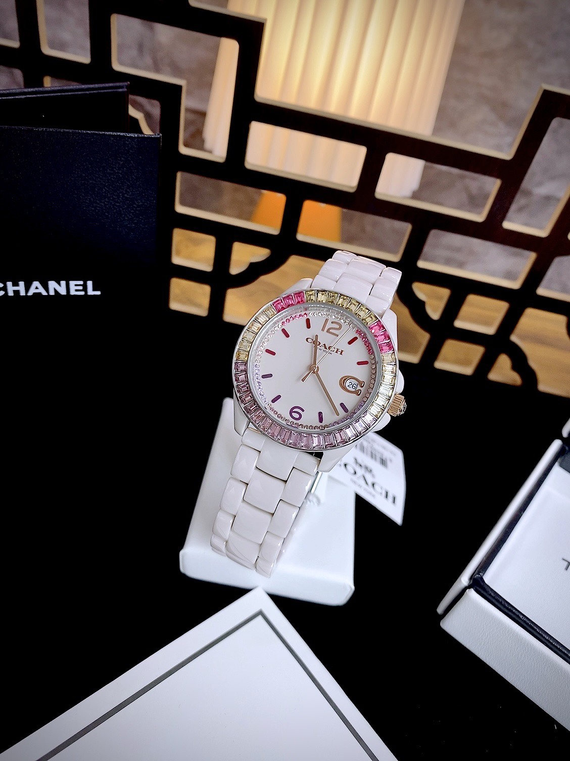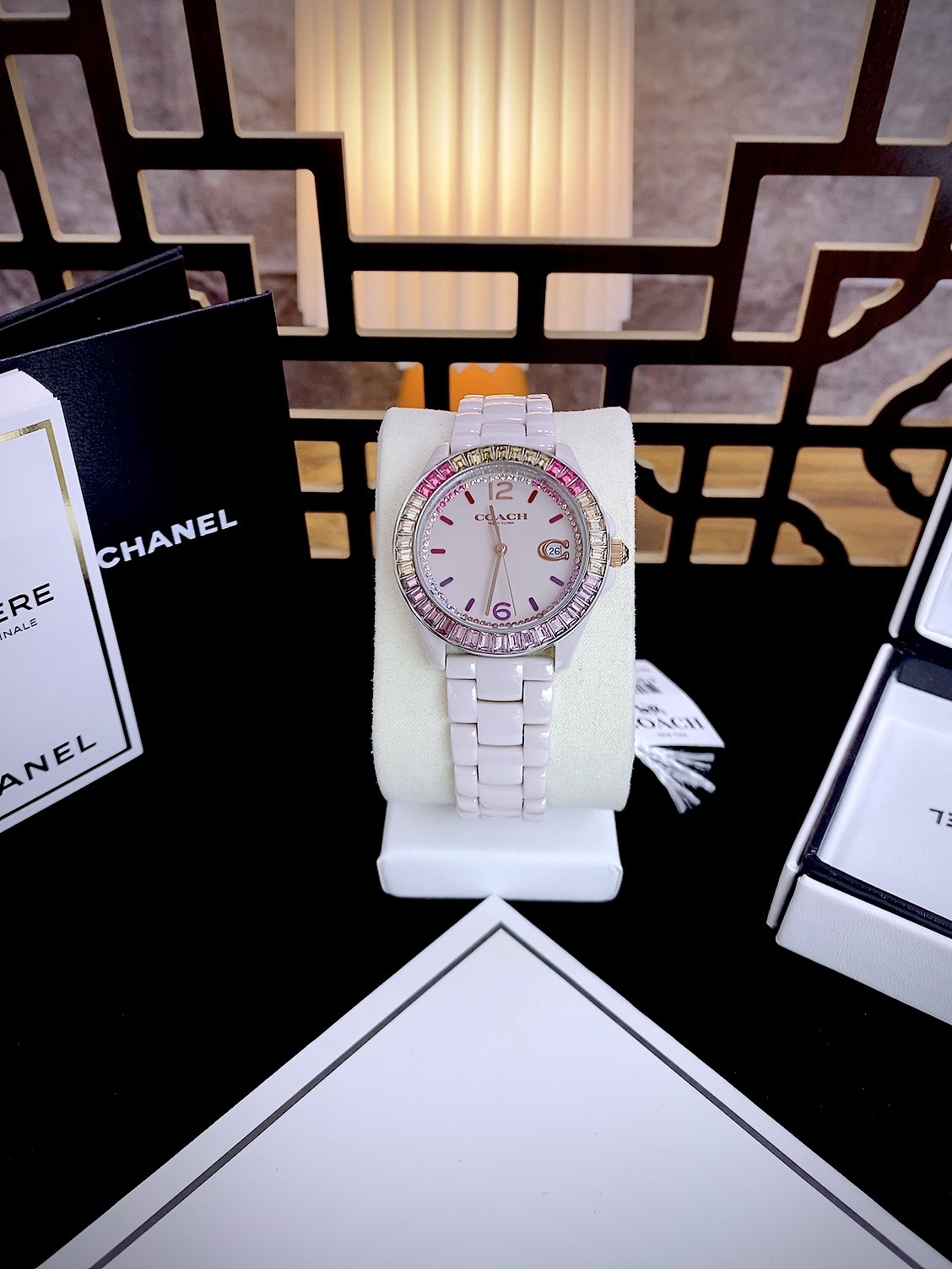 Đồng hồ Coach Ceramic Rainbow Crystal Bezal nữ máy Quartz Nhật