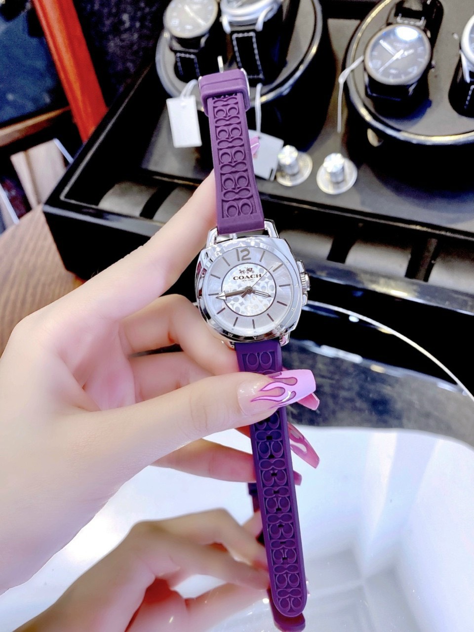 - Đồng hồ Coach nữ dây cao su màu tím đại diện cho sự giàu sang và giới quý tộc