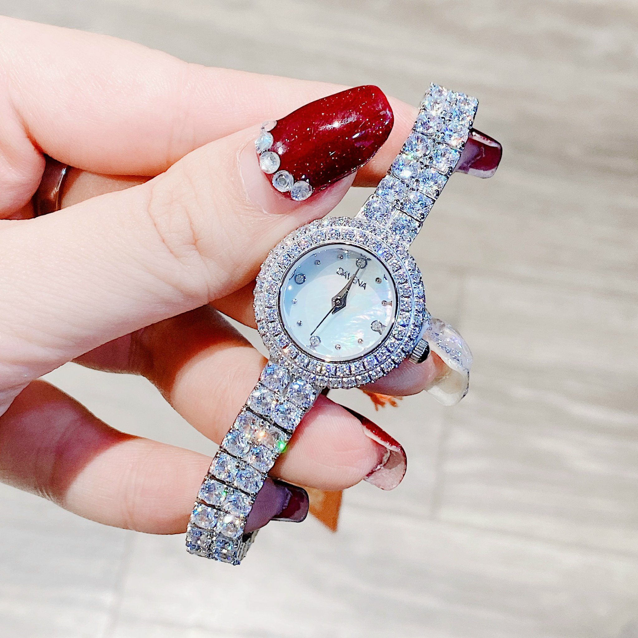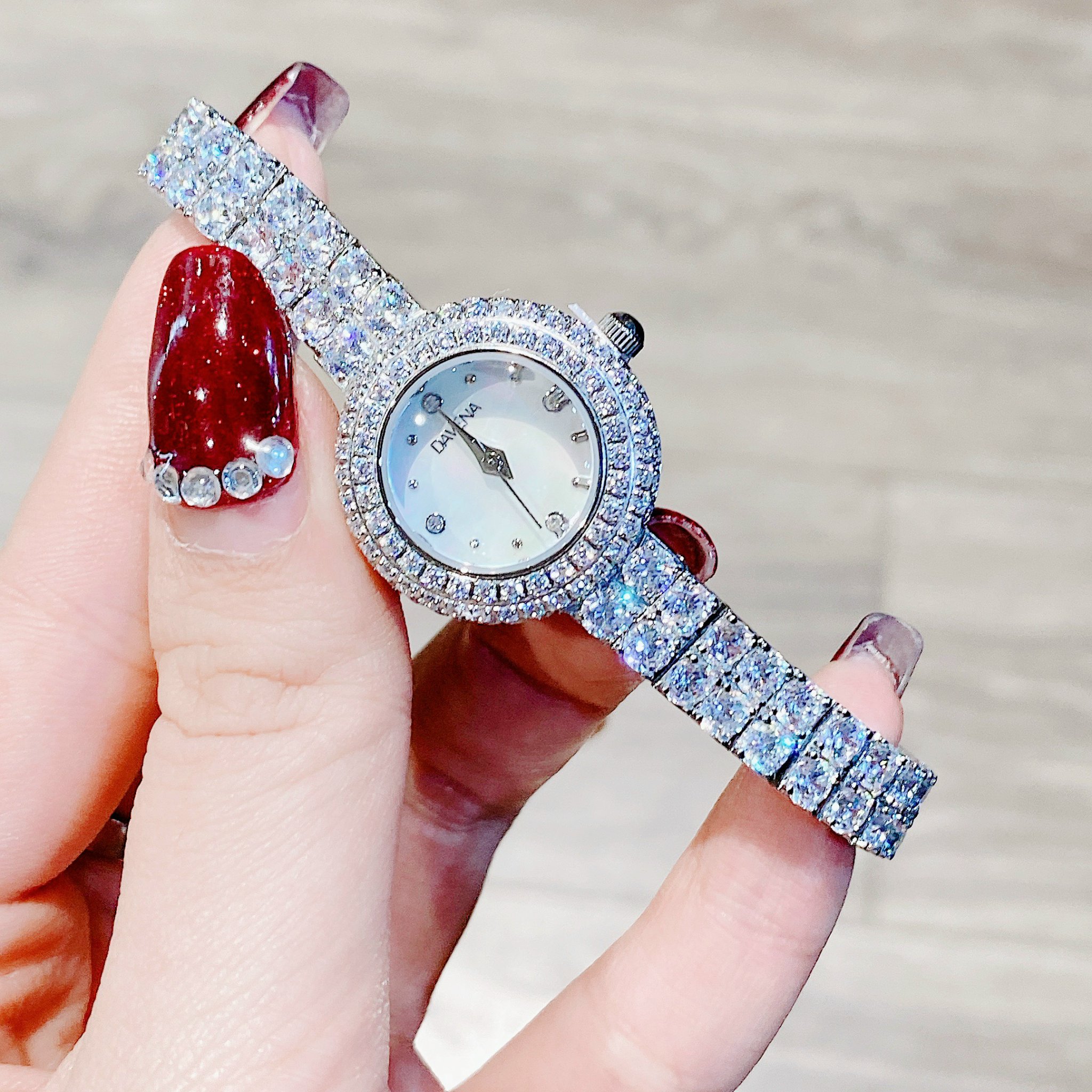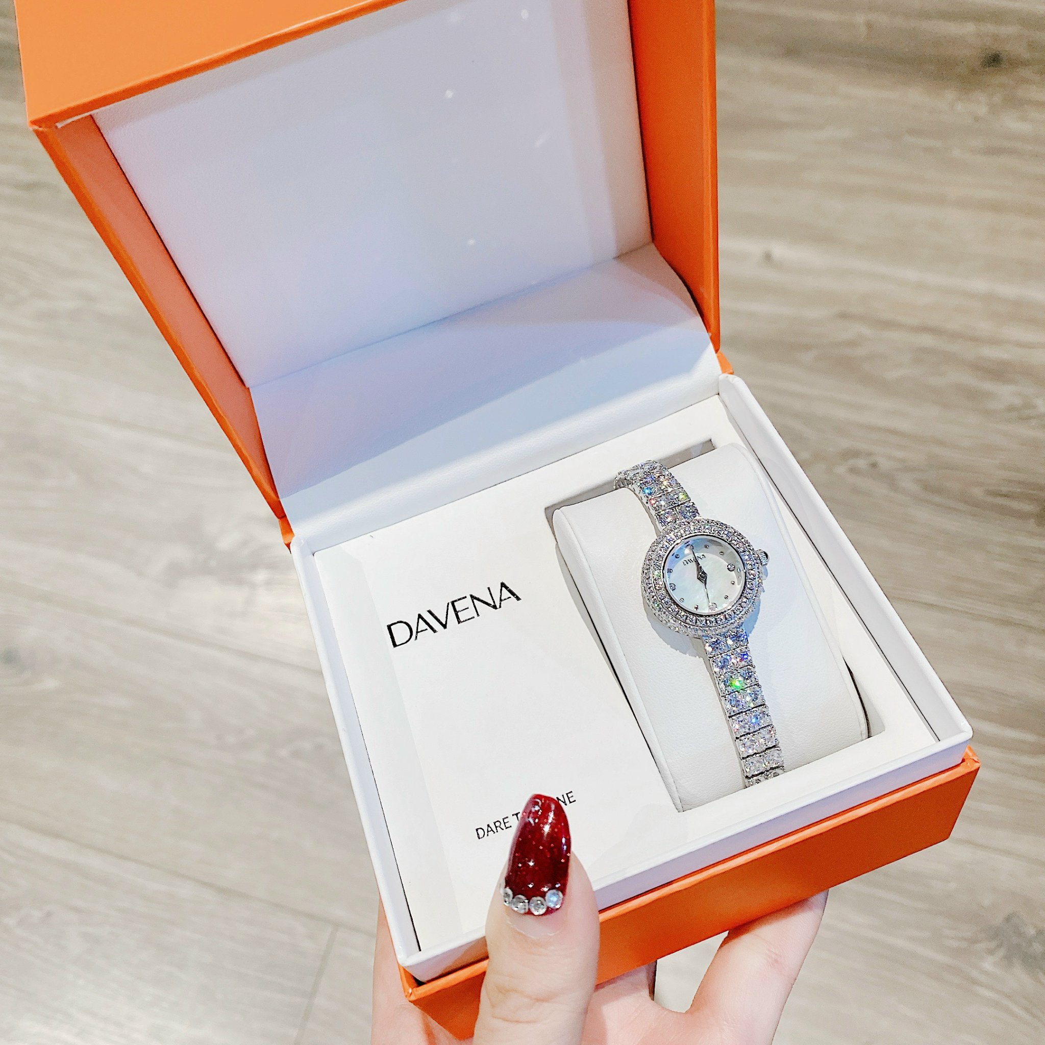 Đồng hồ Davena chính hãng nữ 60858 đính đá mặt khảm trai