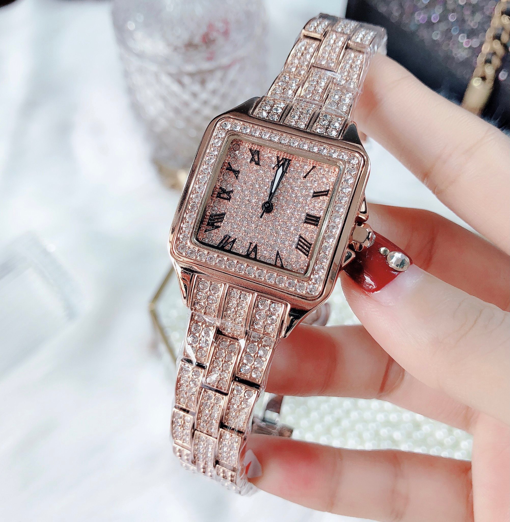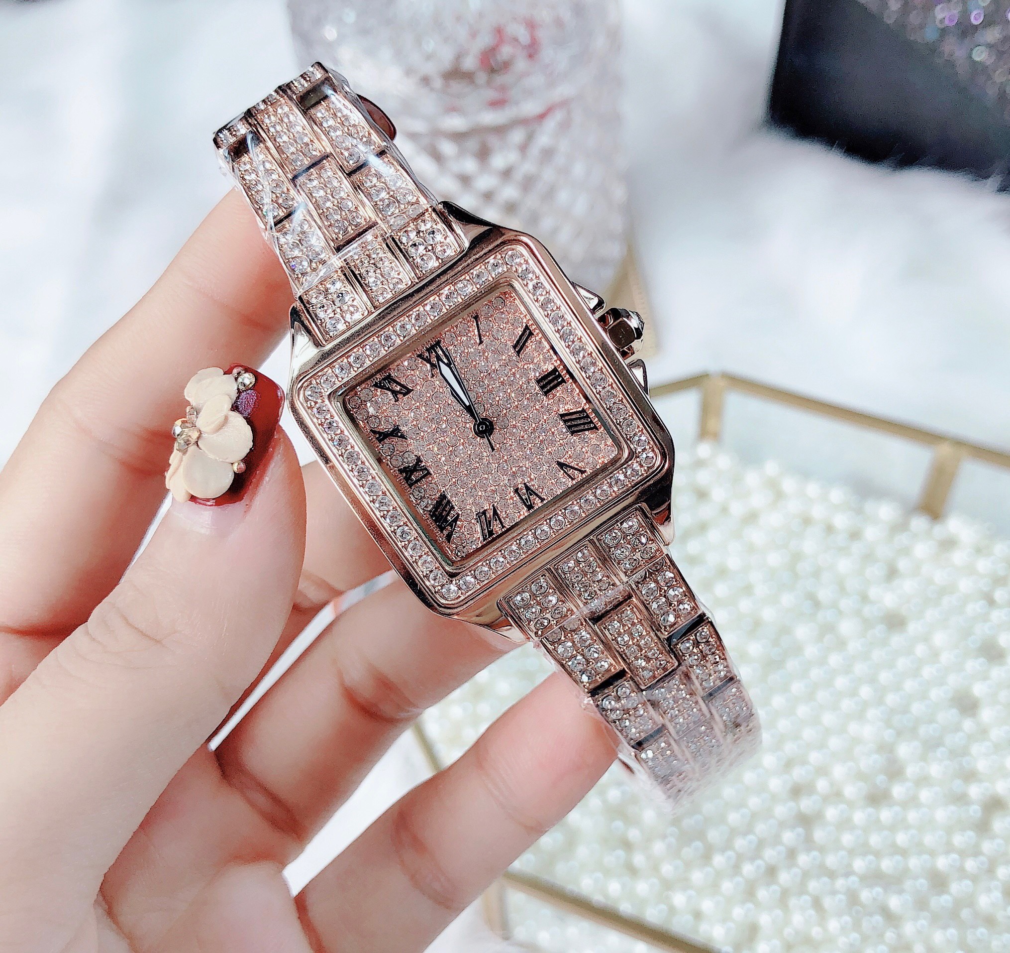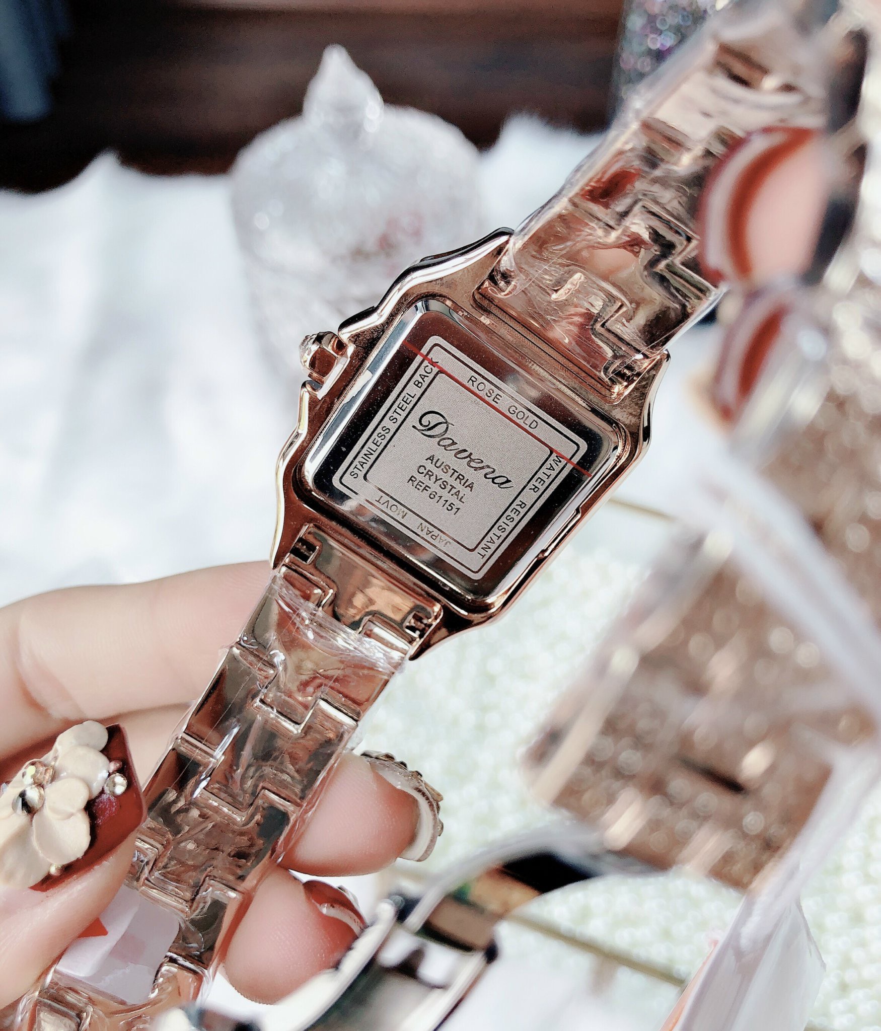 Đồng hồ Davena nữ chính hãng mặt vuông đính đá Davena D61151 Rose