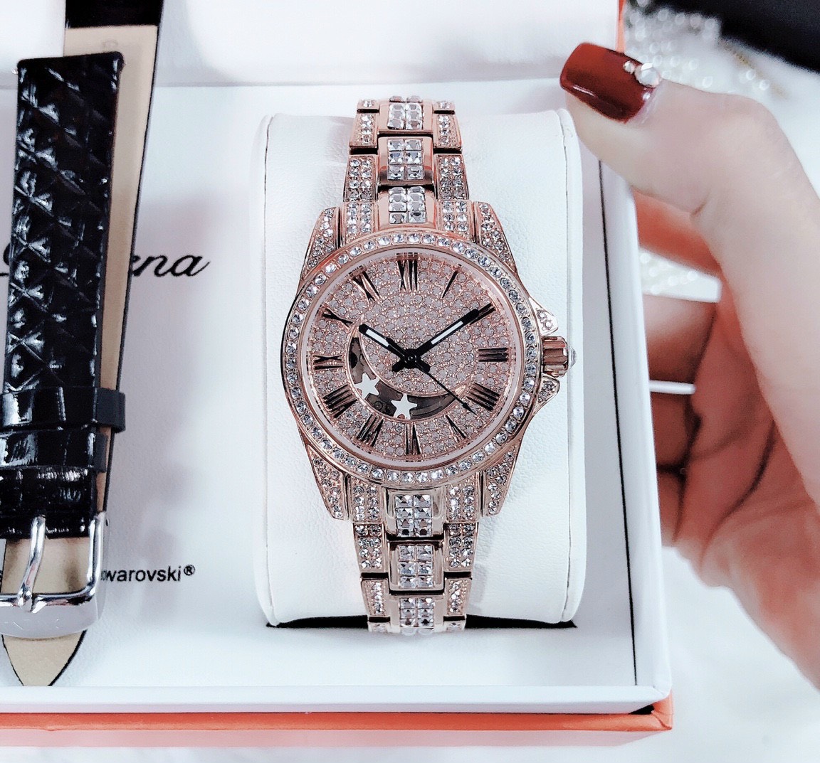 Đồng hồ Davena nữ chính hãng máy cơ Austria Automatic Rose full đá