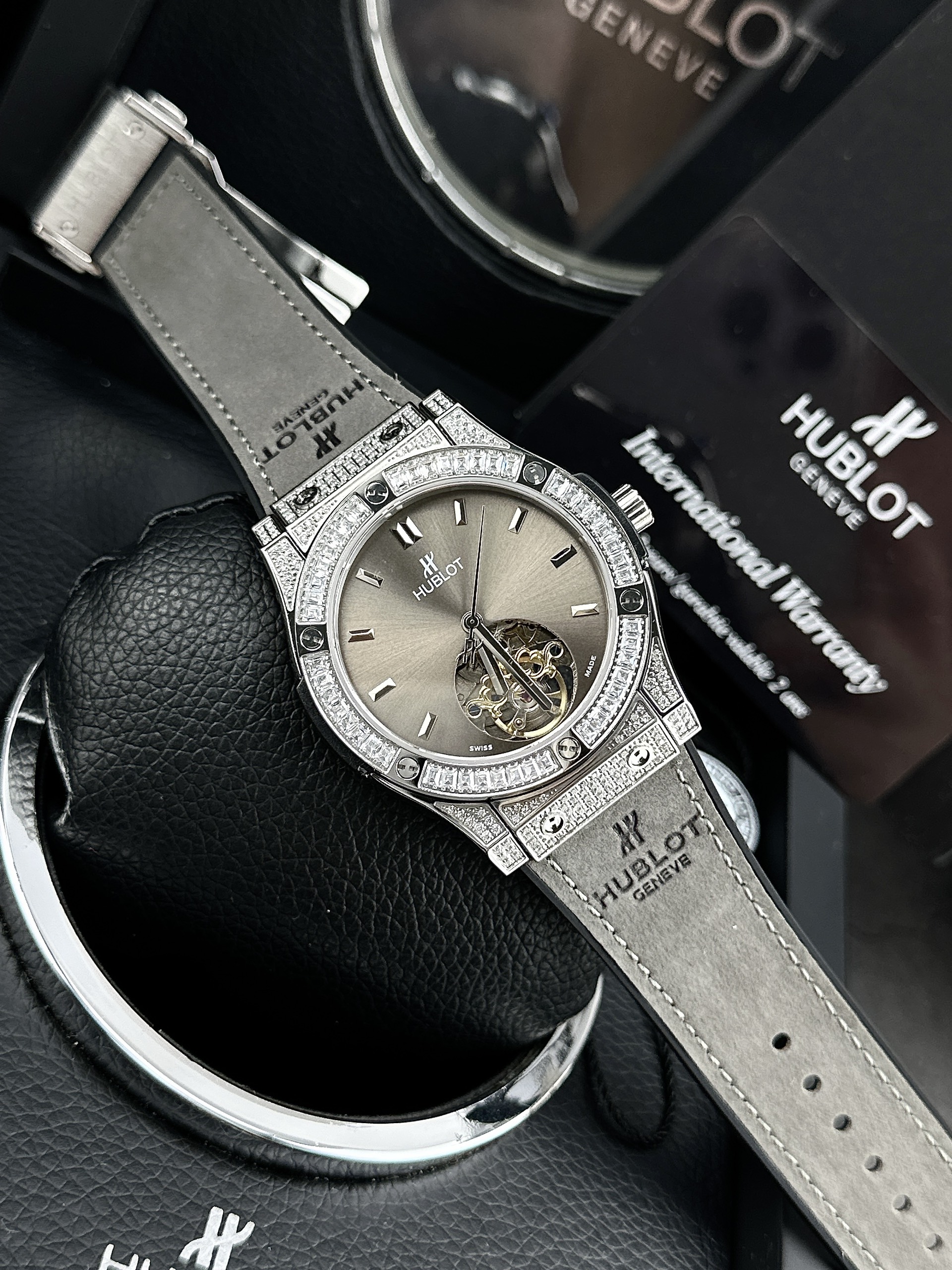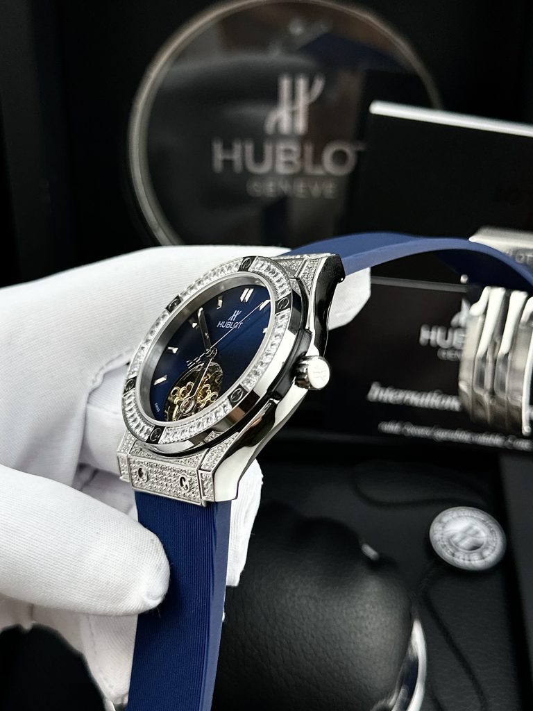 - Đồng hồ đính đá Hublot cơ lộ máy Fake cao cấp máy Nhật thiết kế mặt cầu kì tinh xảo và nổi bật