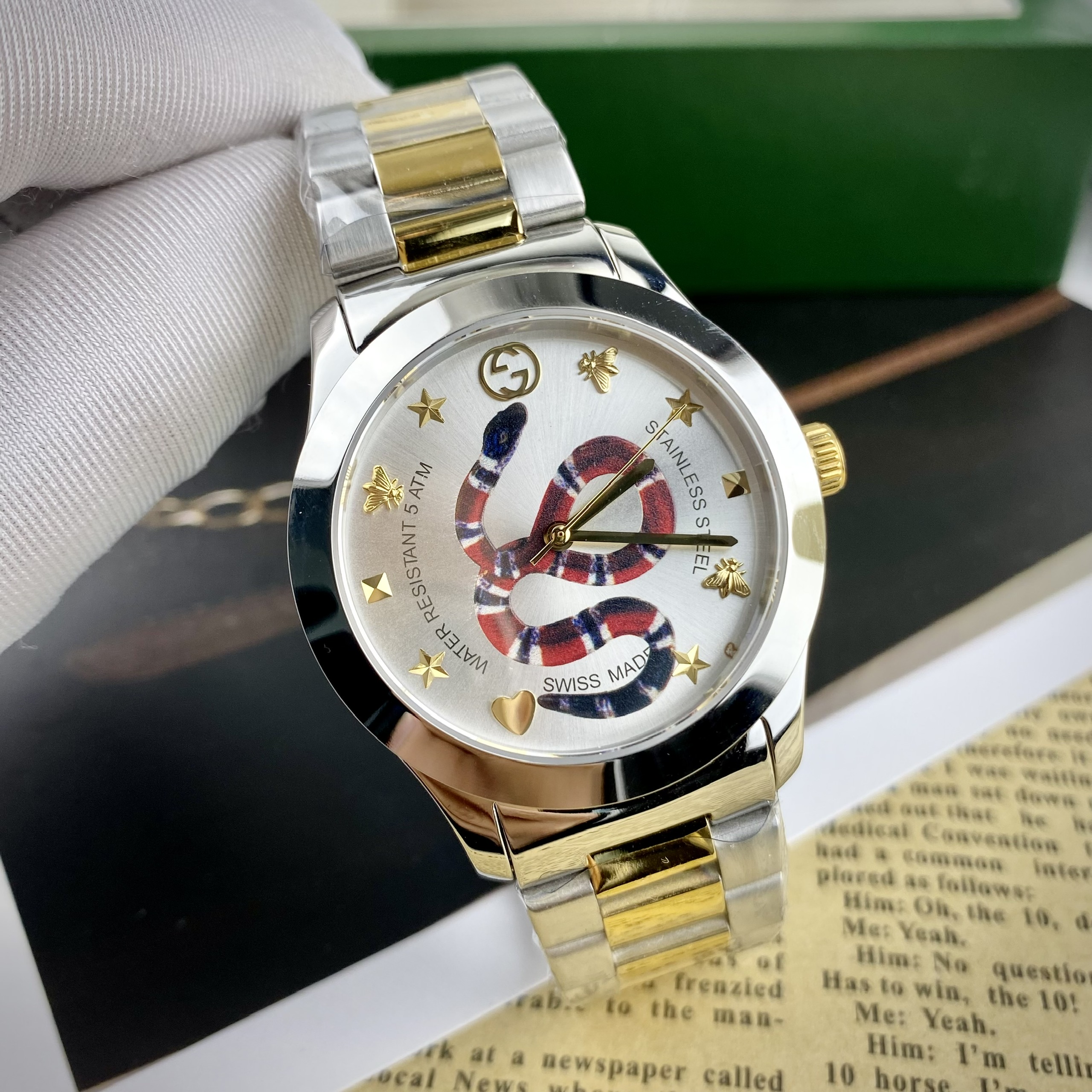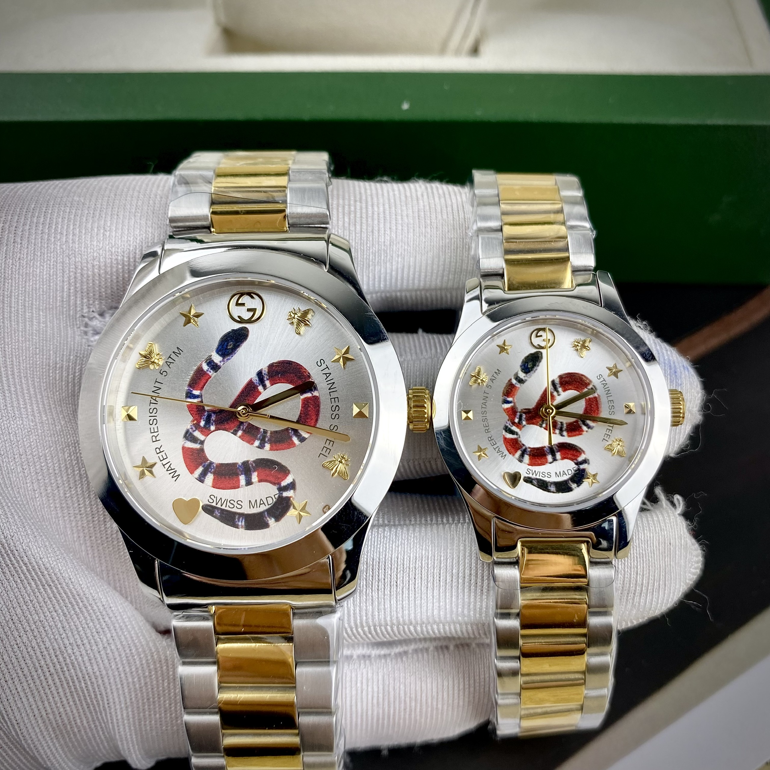 Đồng hồ đôi Gucci Rắn dây kim loại màu demi like auth 28/38mm