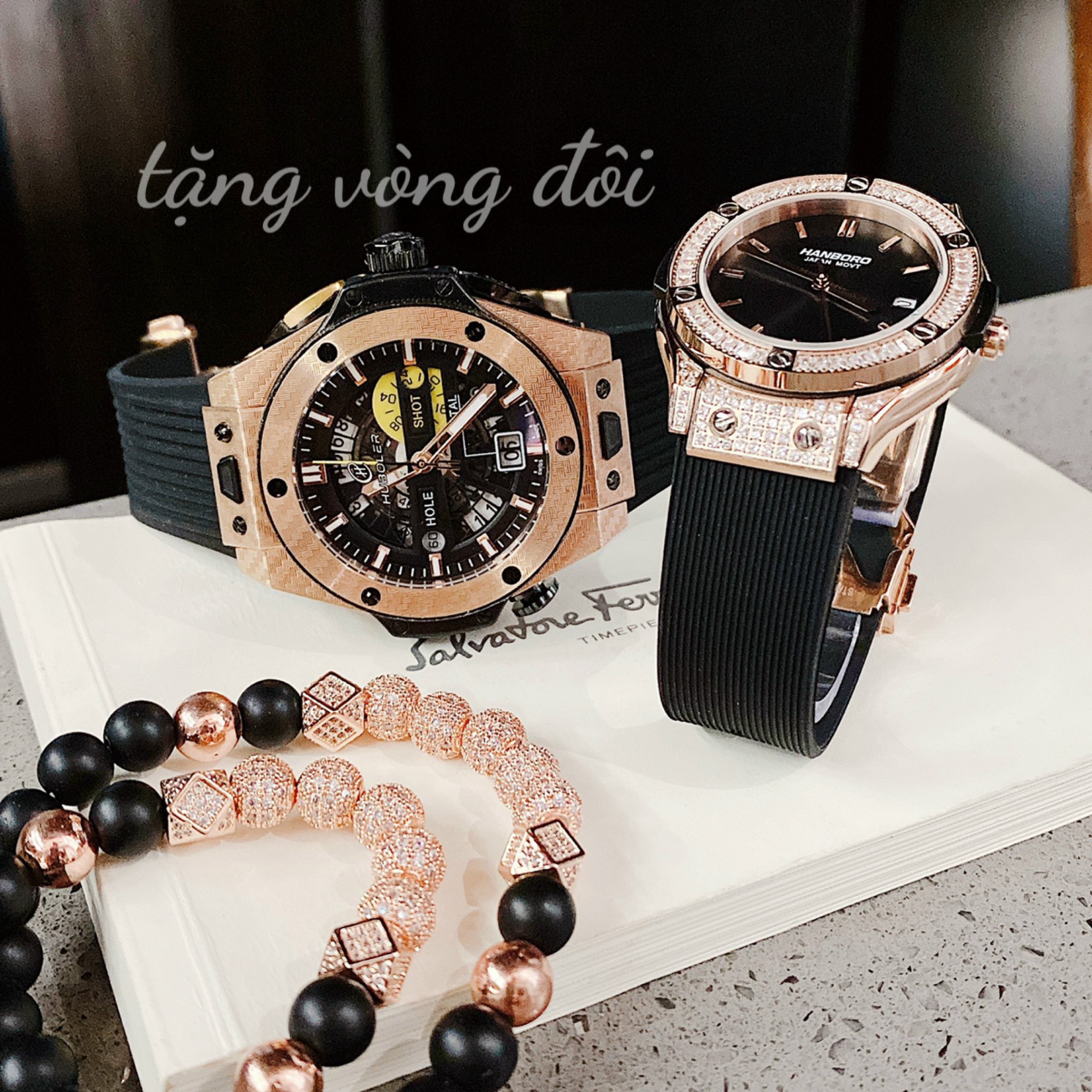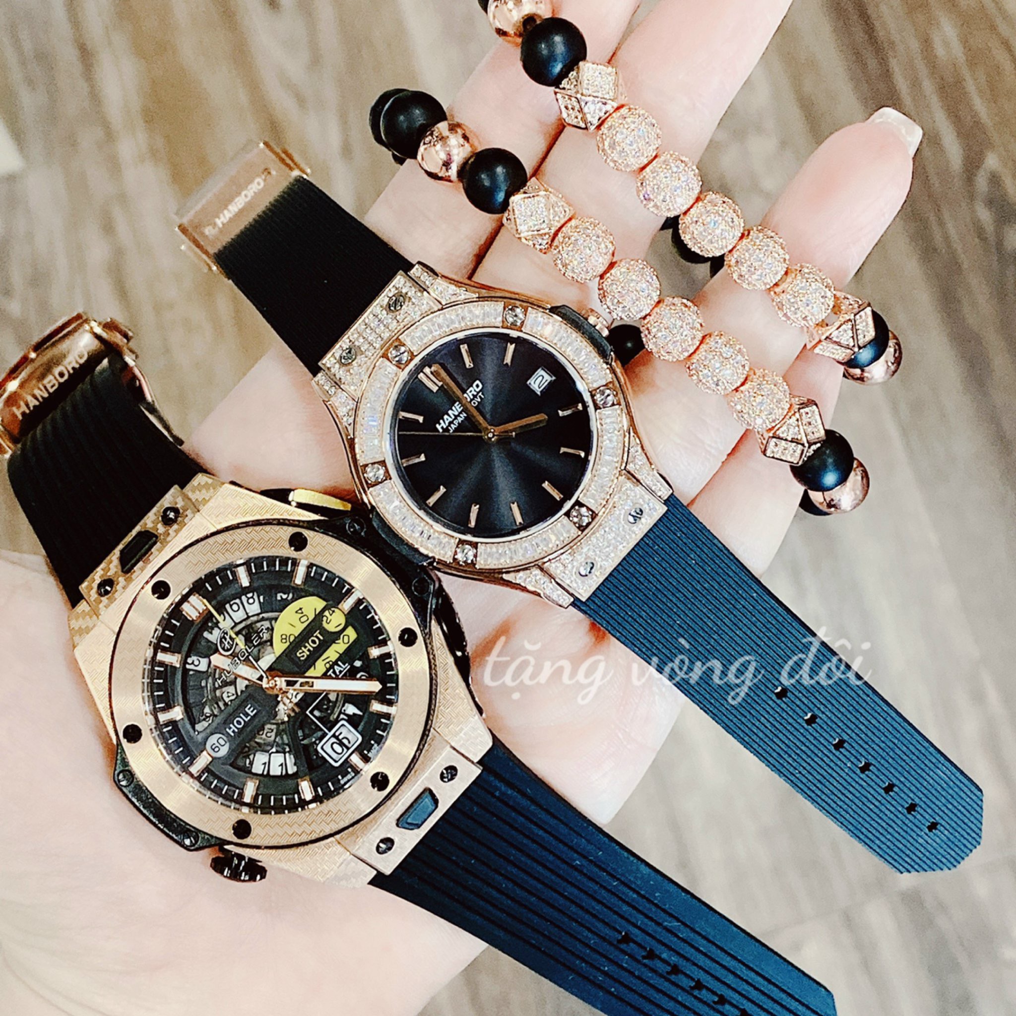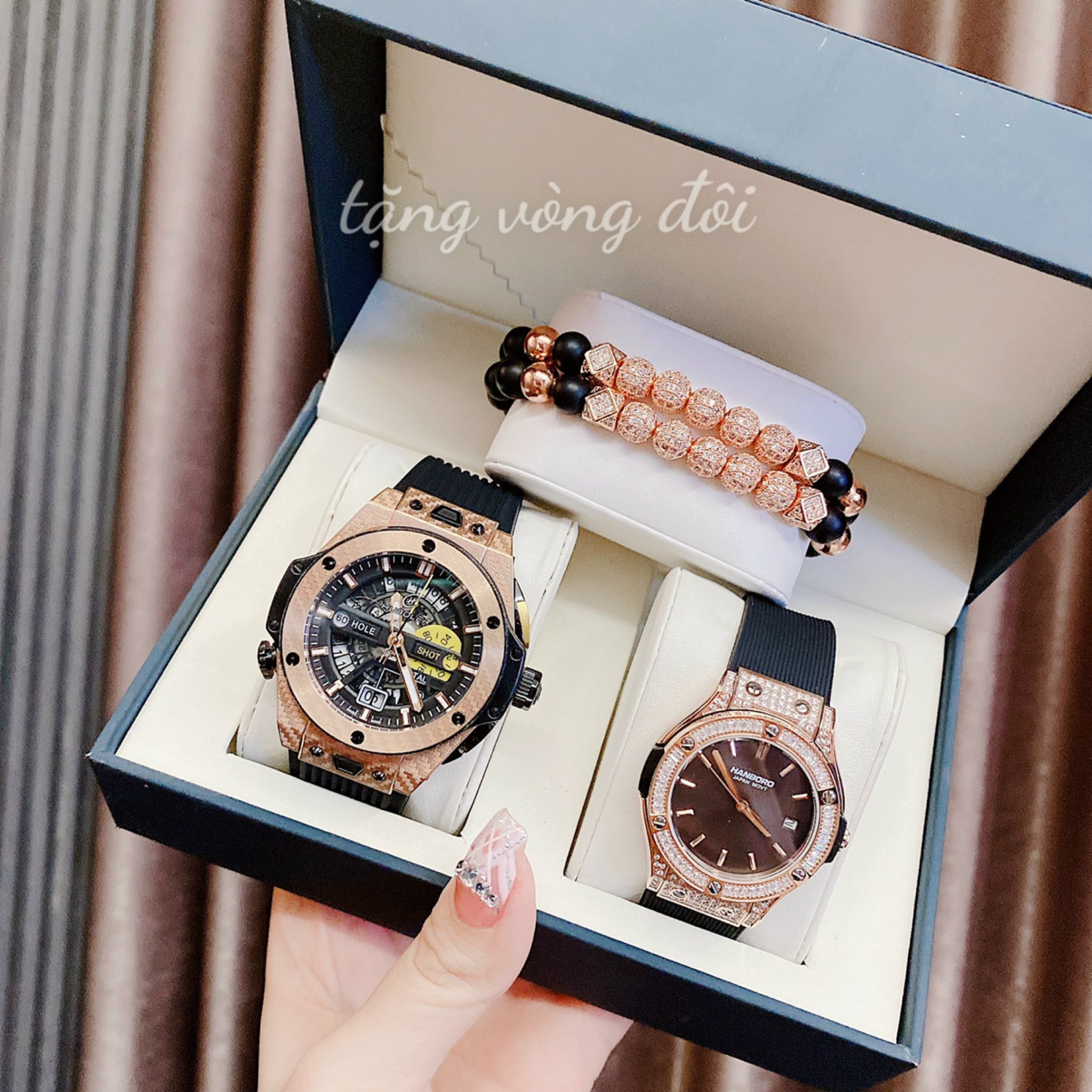 Đồng hồ đôi Hanboro By Huboler chính hãng dây cao su