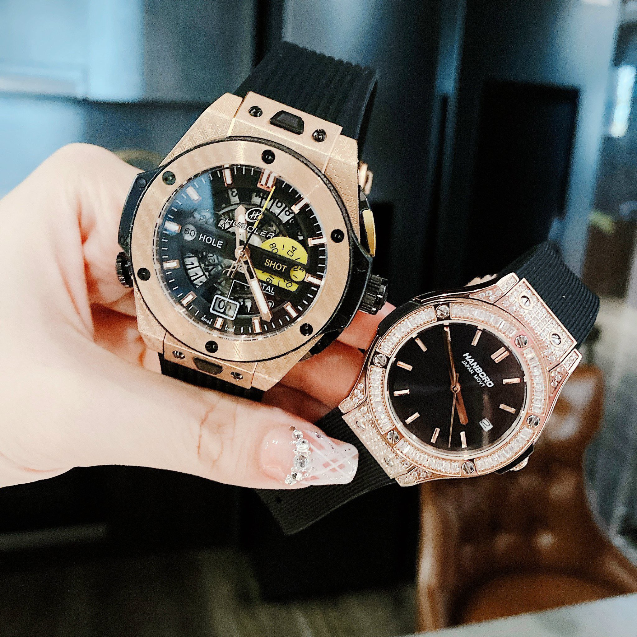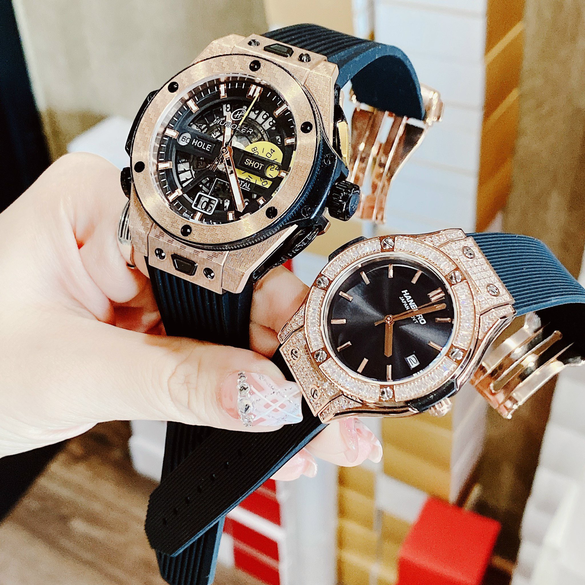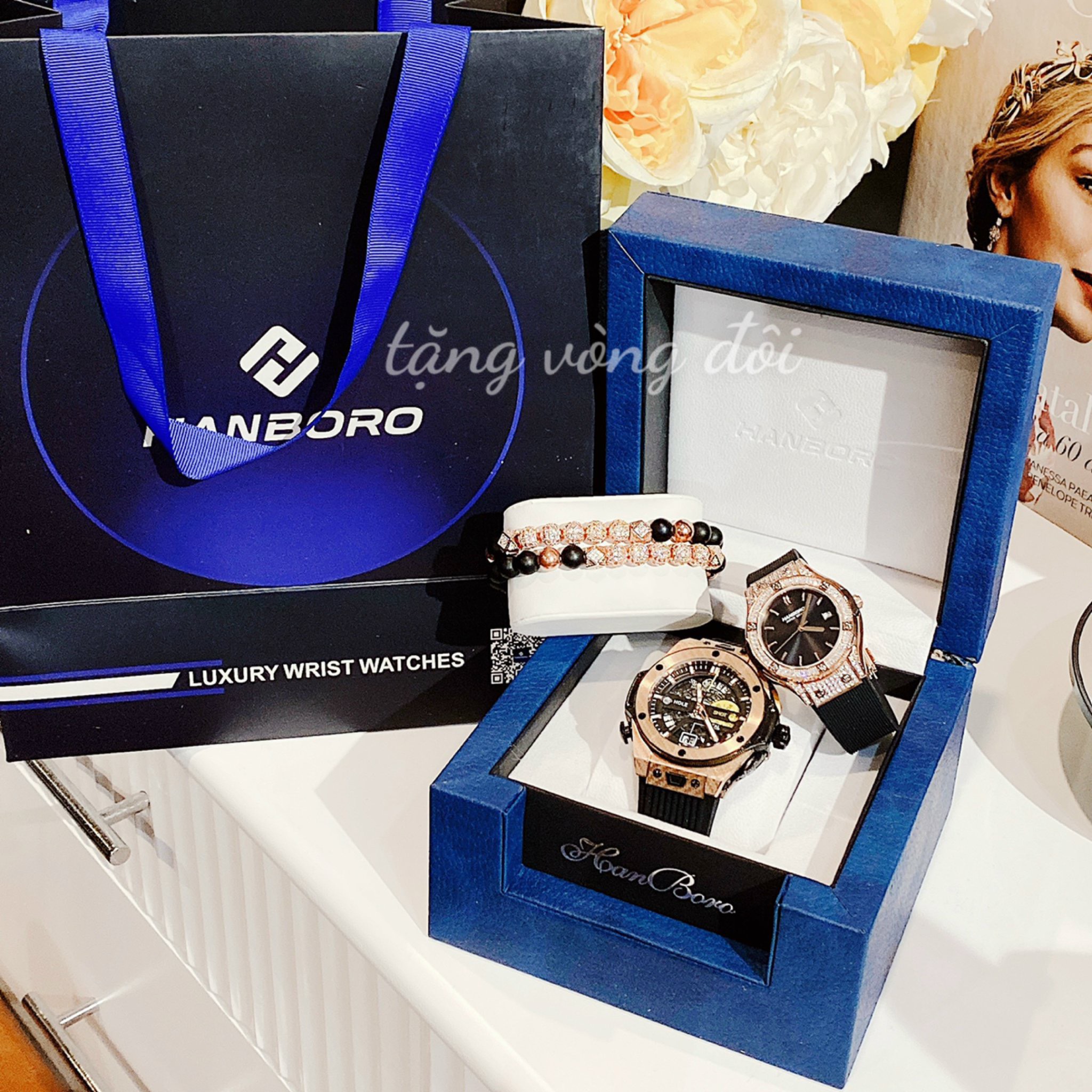 Đồng hồ đôi Hanboro By Huboler chính hãng dây cao su