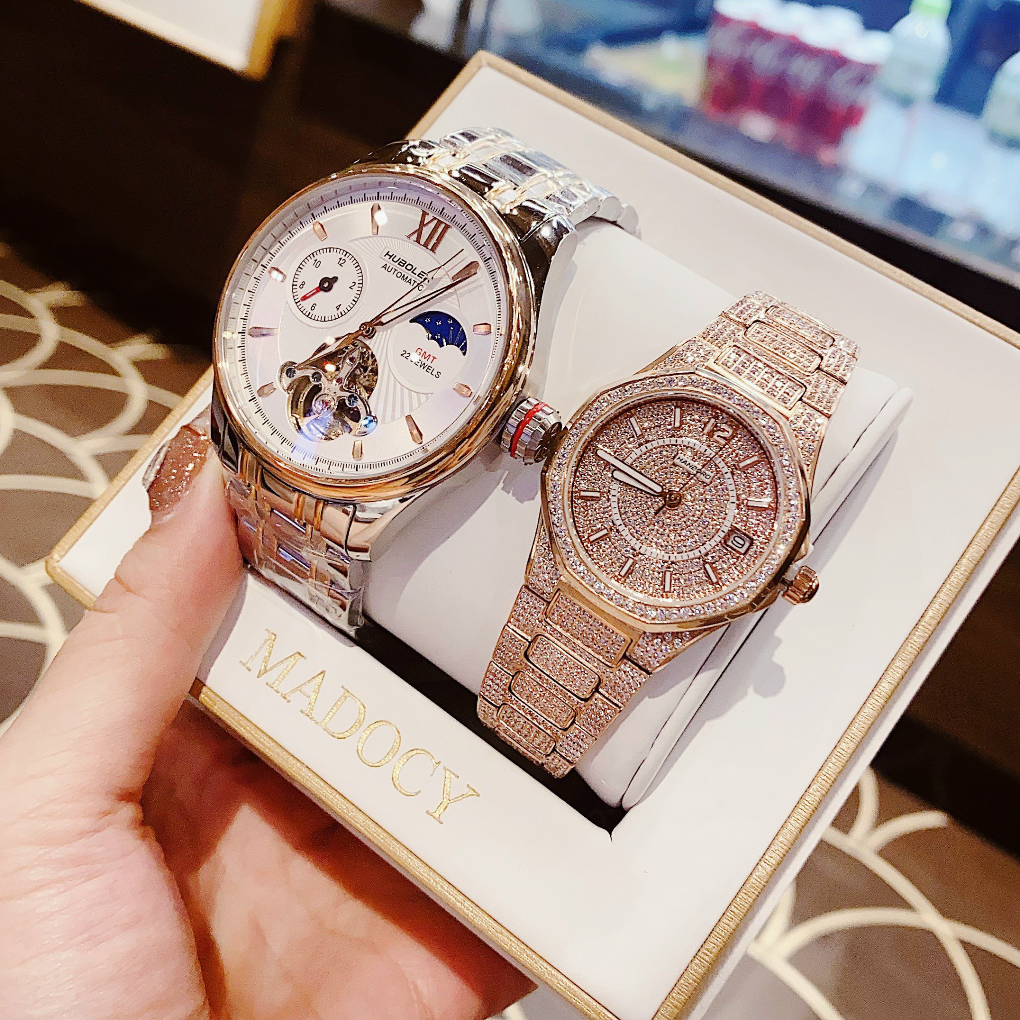 Hãy cùng DWatch Thế Giới Đồng Hồ Đẹp tham khảo mẫu Đồng hồ đôi Hanboro By Huboler chính hãng dây kim loại 36/44mm nhé !