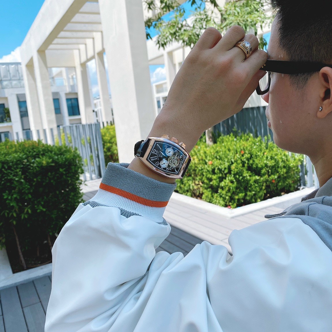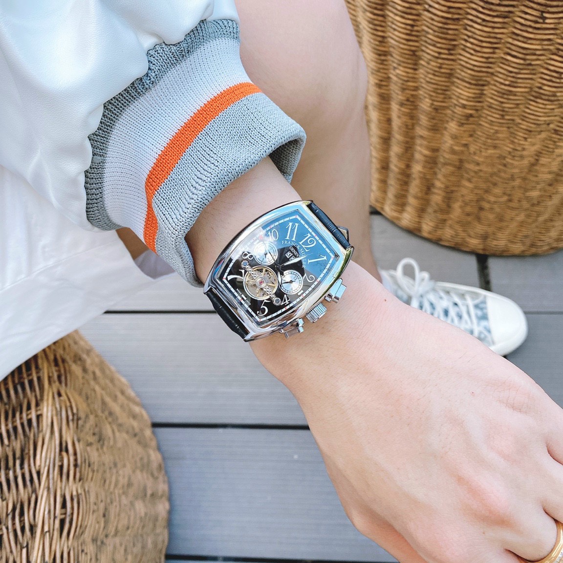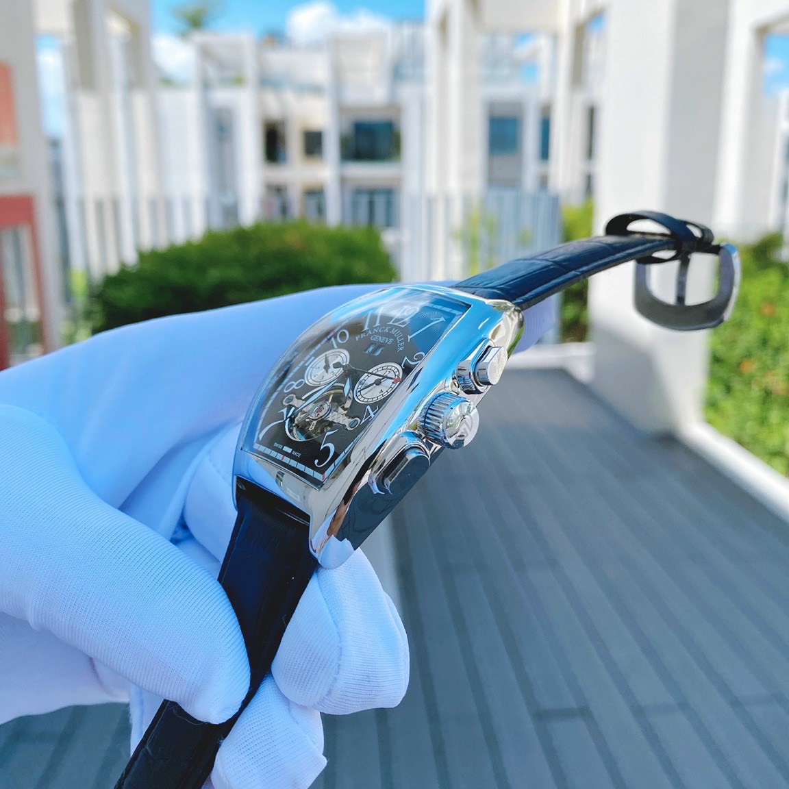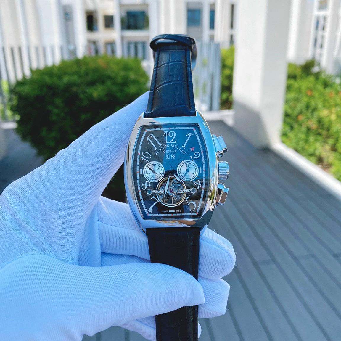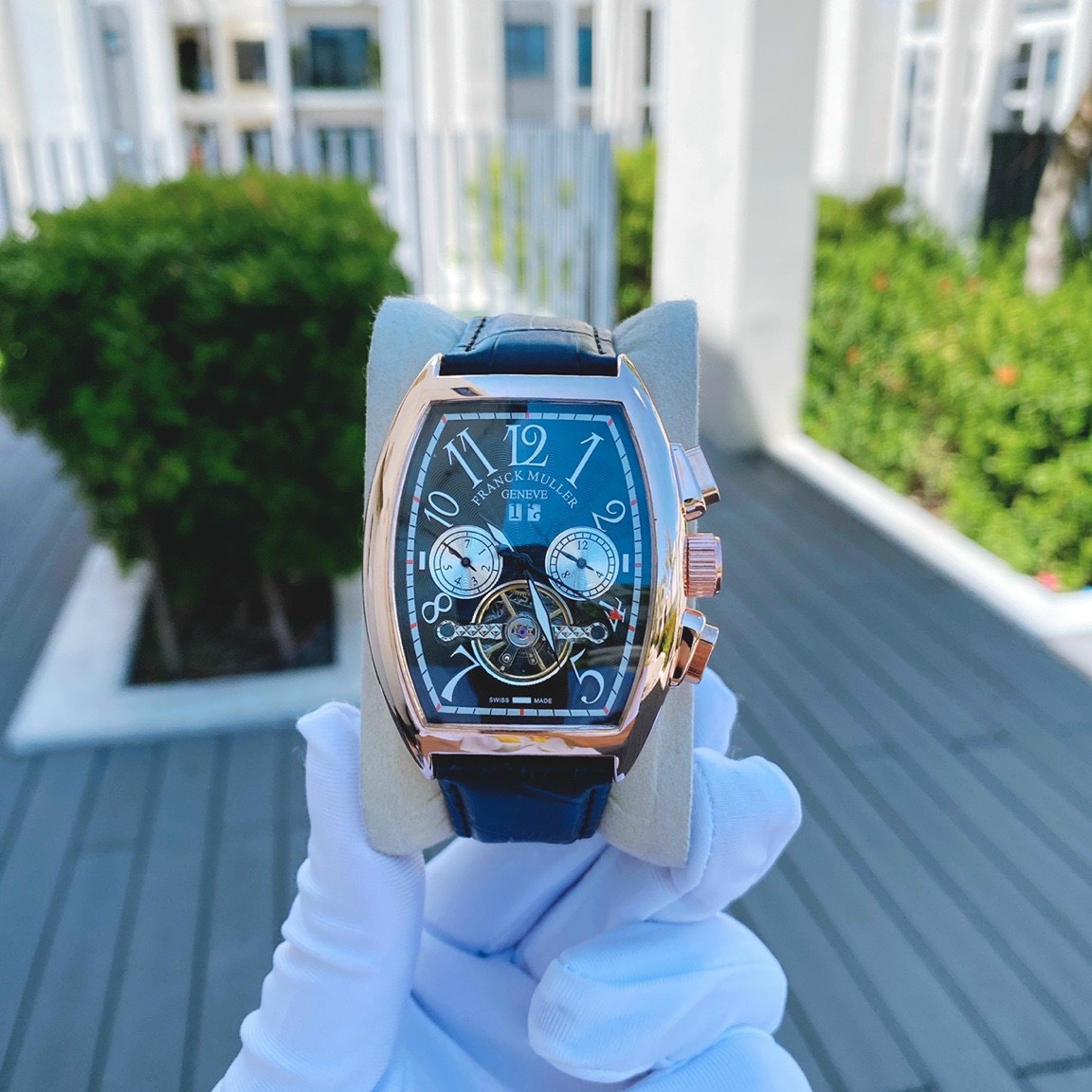 Đồng hồ Franck Muller nam dây da màu đen giá rẻ máy cơ lộ máy 42x54mm