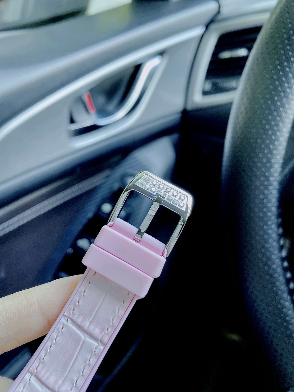 - Đồng hồ Franck Muller V32 nữ siêu cấp dây cao su bọc da lộn sang trọng và linh hoạt