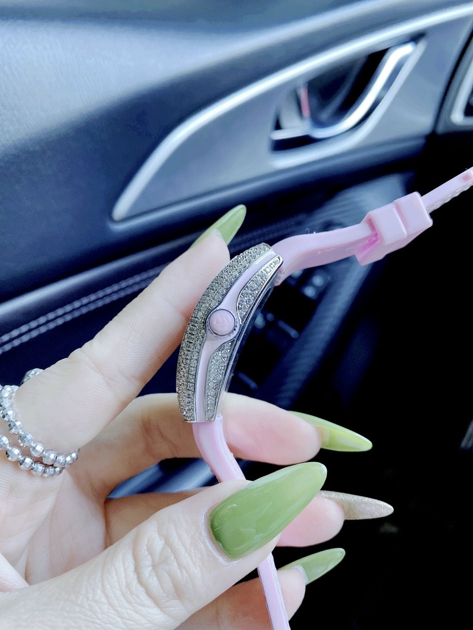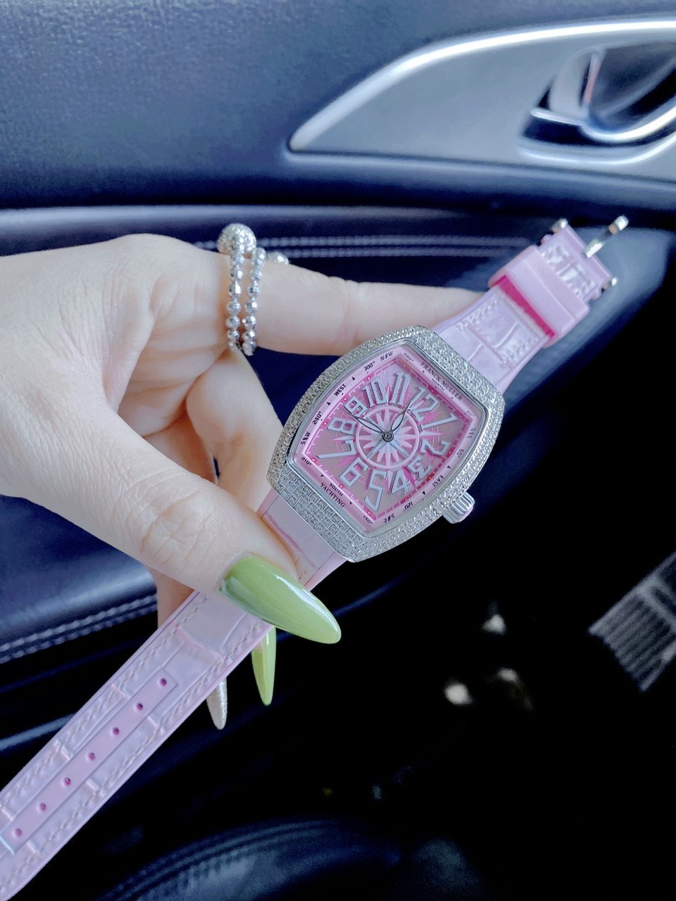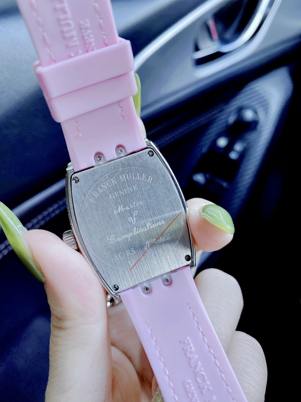 - Đồng hồ Franck Muller V32 nữ dây cao su màu hồng mang lại cảm giác đồng cảm, sự quan tâm, hiểu biết, tình yêu và sự lãng mạn