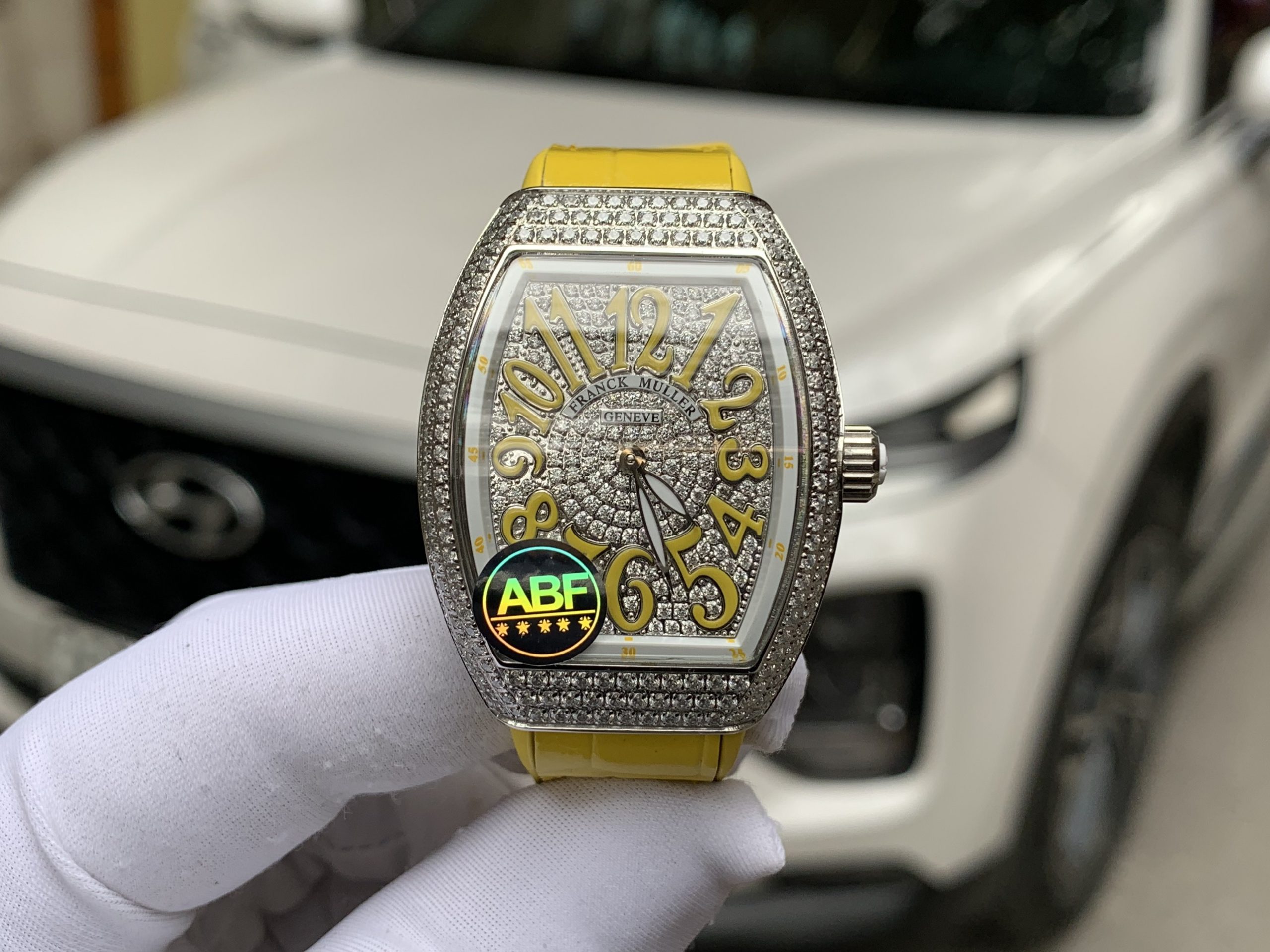 Đồng hồ Franck Muller V32 nữ siêu cấp ABF Thụy Sỹ màu vàng đính full đá