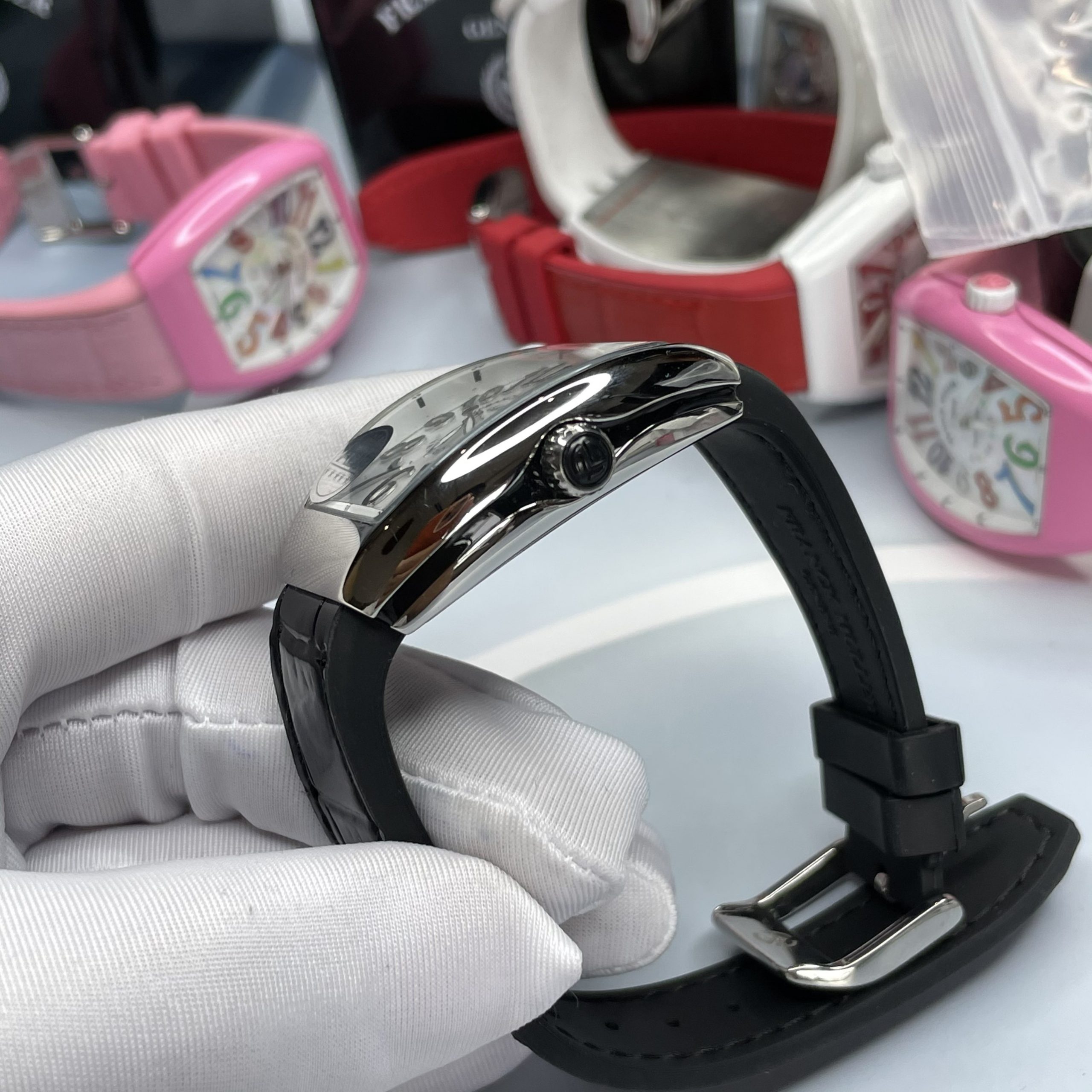 - Đồng hồ Franck Muller nữ dây cao su bọc da sang trọng và linh hoạt