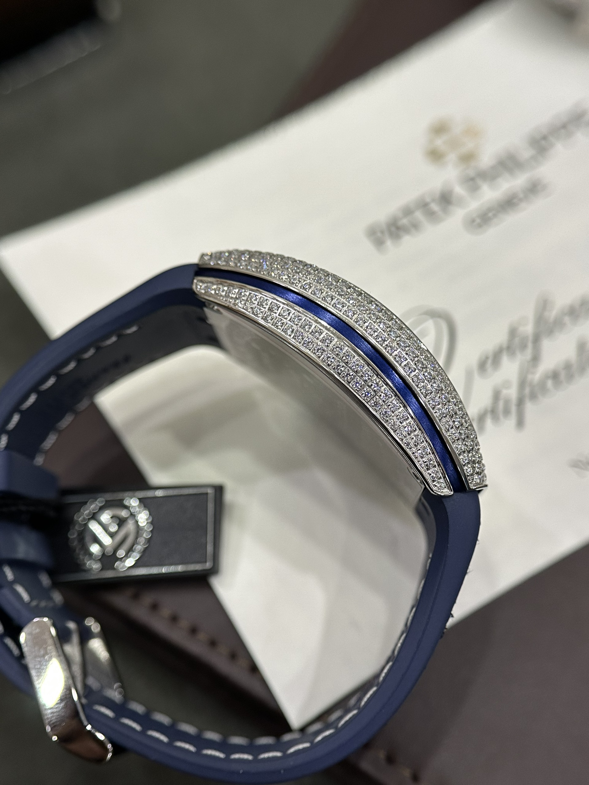 Đồng hồ Franck Muller V45 nam đính full kim cương nhân tạo màu xanh
