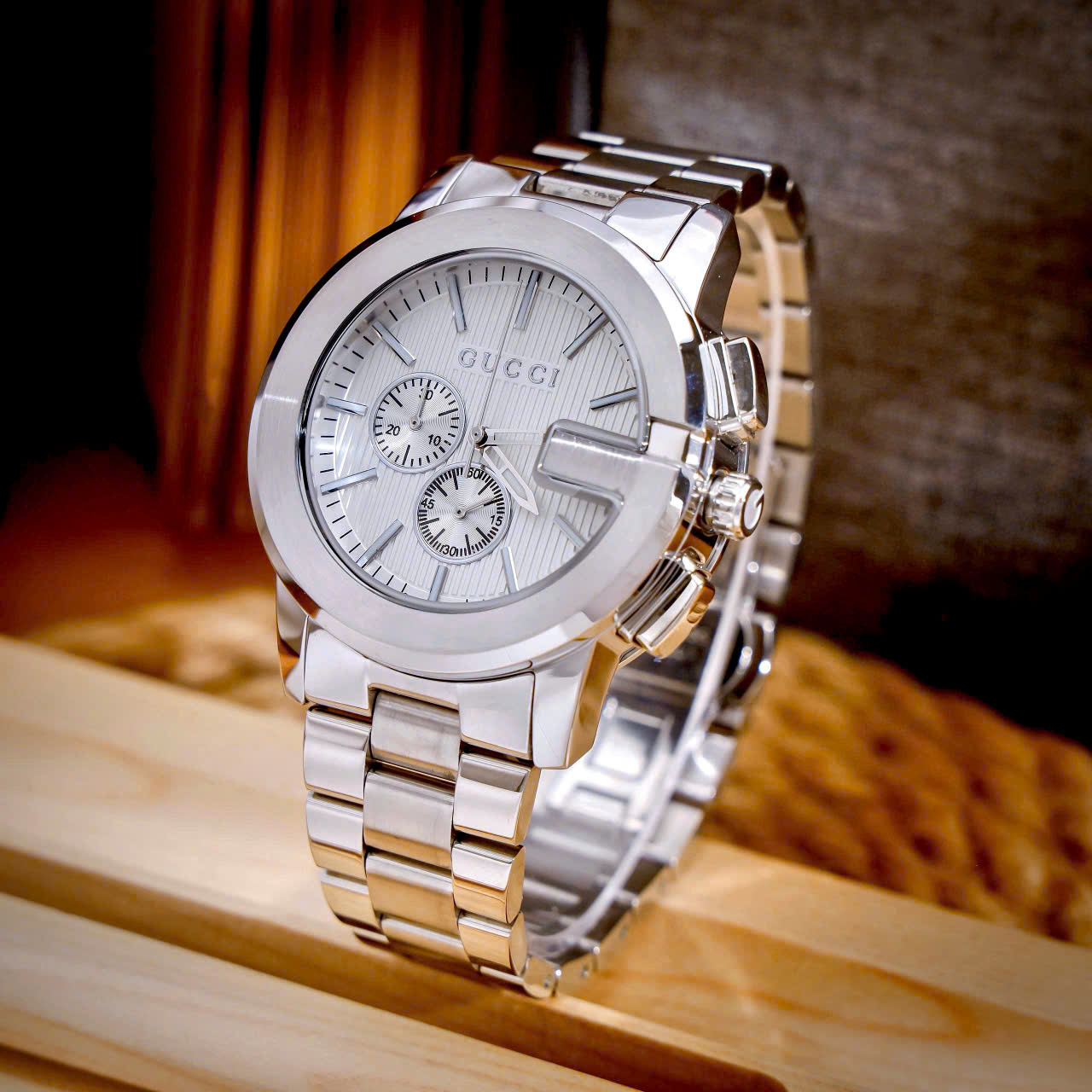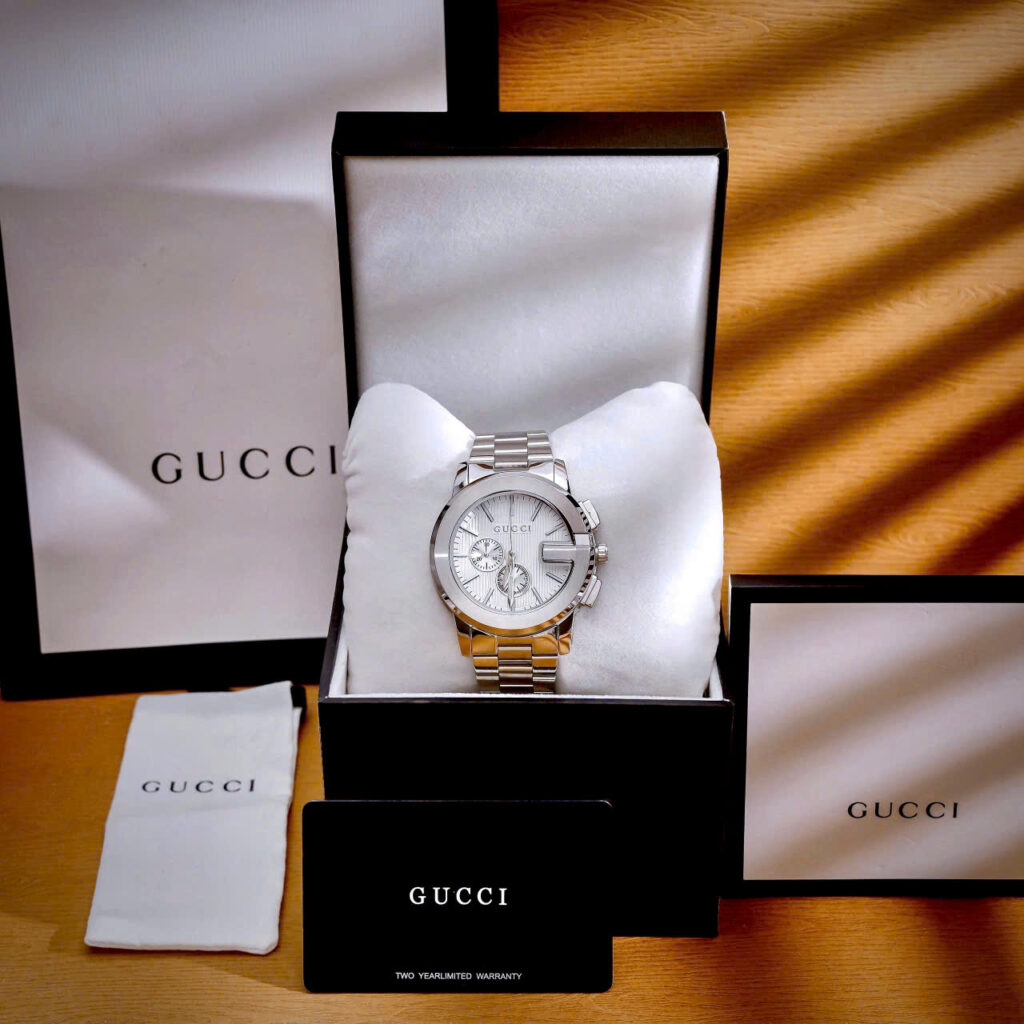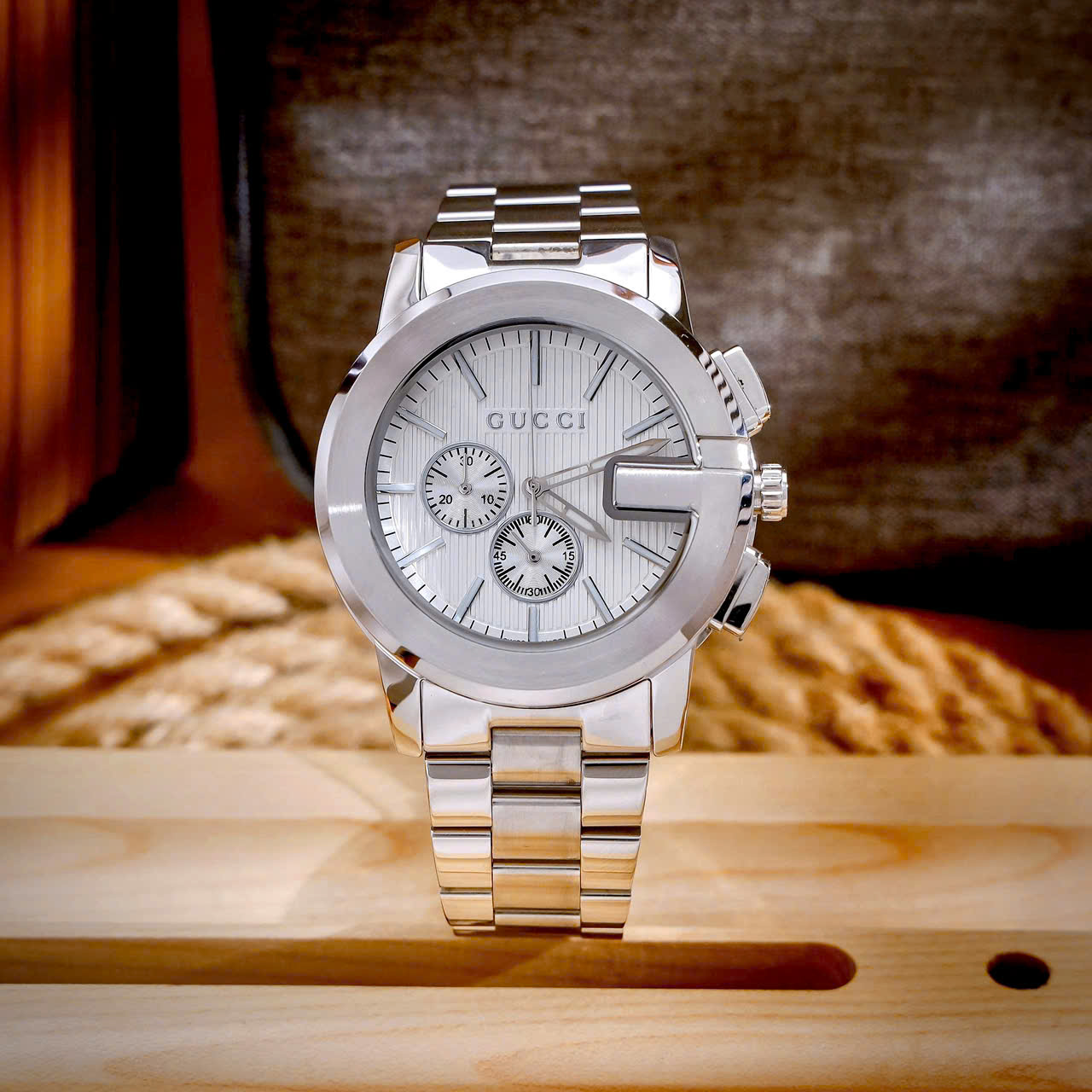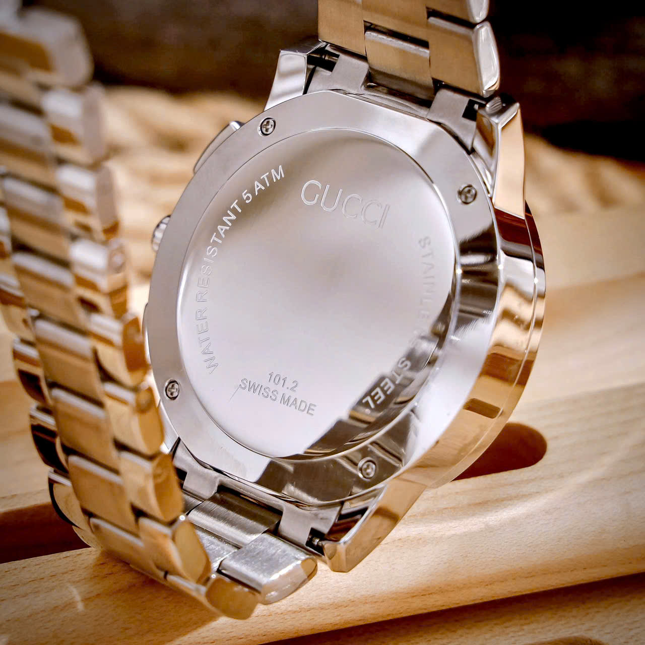 Đồng hồ Gucci Chronograph Like Auth dây kim loại mặt số trắng máy pin nam 44mm