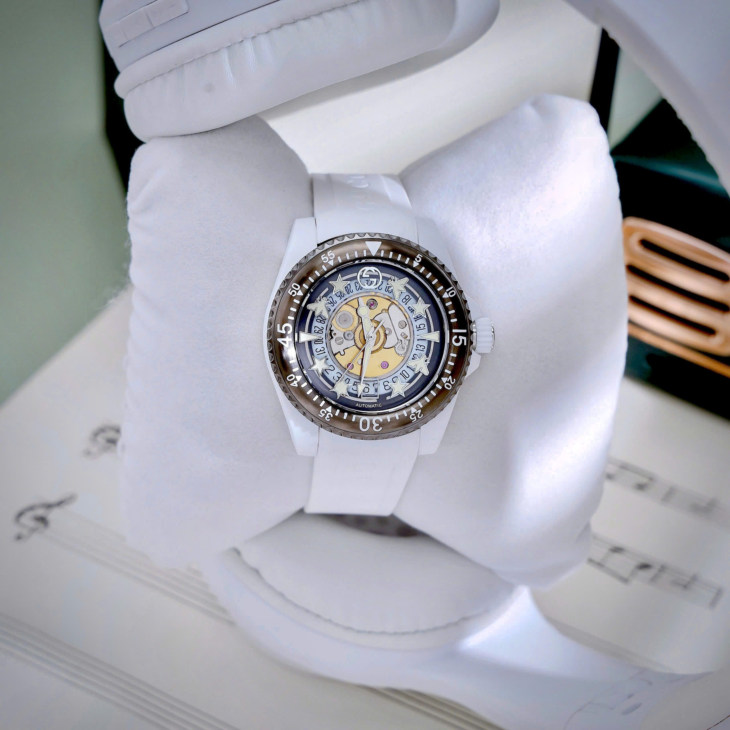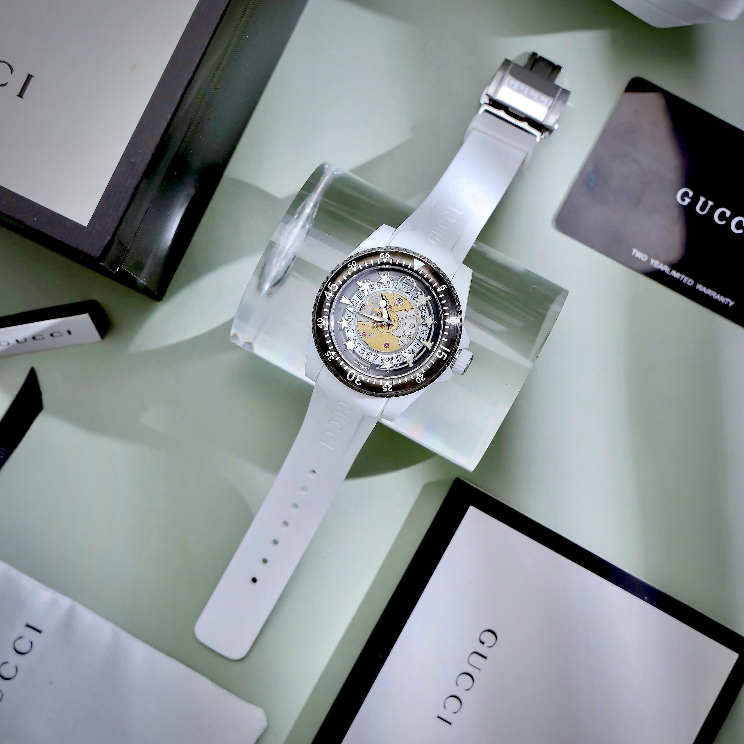 Đồng hồ Gucci Dive Rubber unisex dây cao su trắng like auth 40mm
