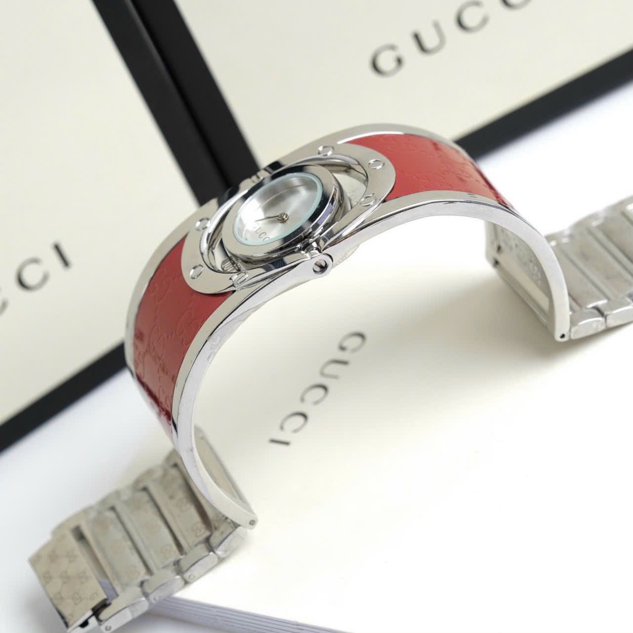 Đồng hồ Gucci Like Auth màu hồng dạng lắc tay thép trắng phiên bản cao cấp có sẵn tại DWatch.