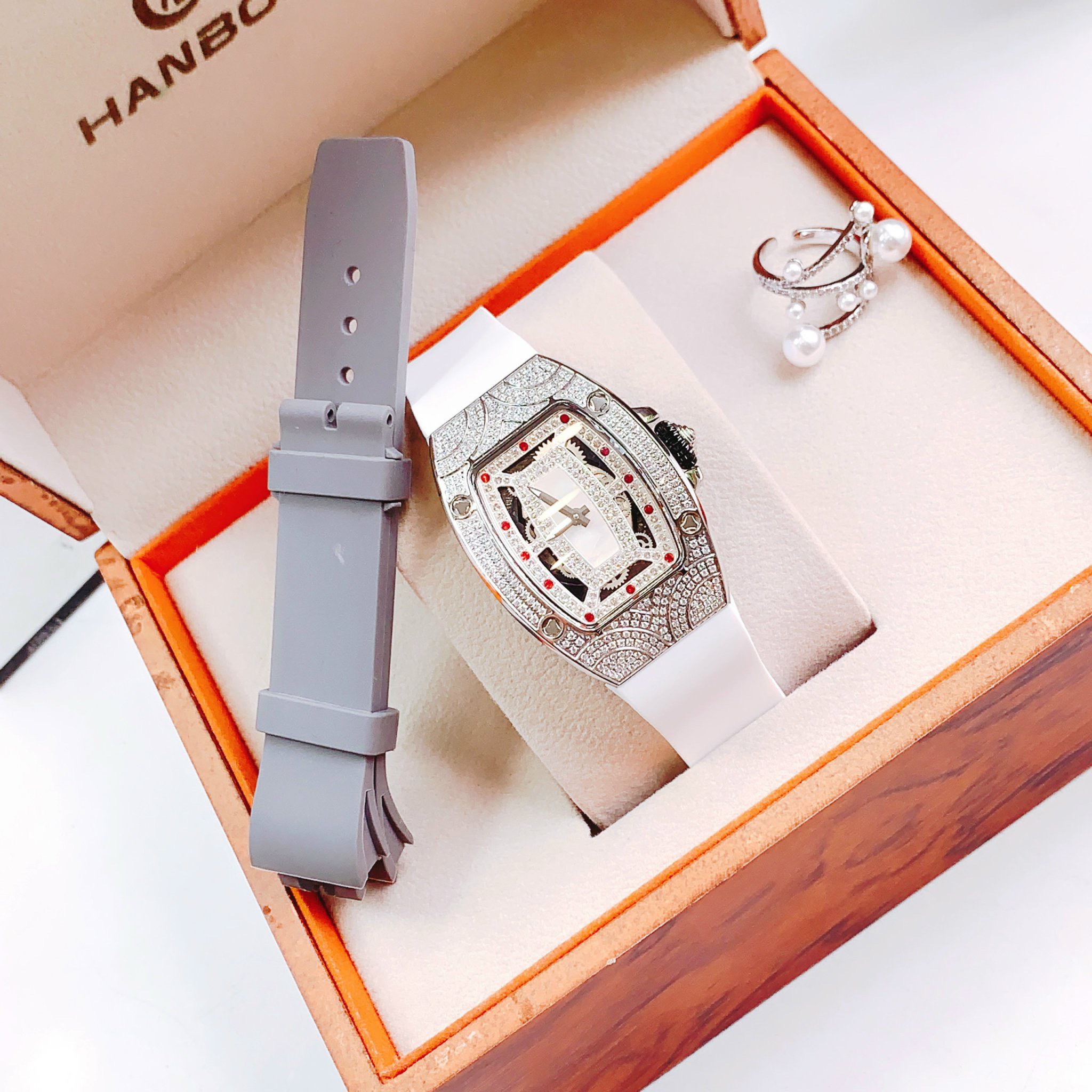 Đồng hồ Hanboro chính hãng nữ dây cao su trắng