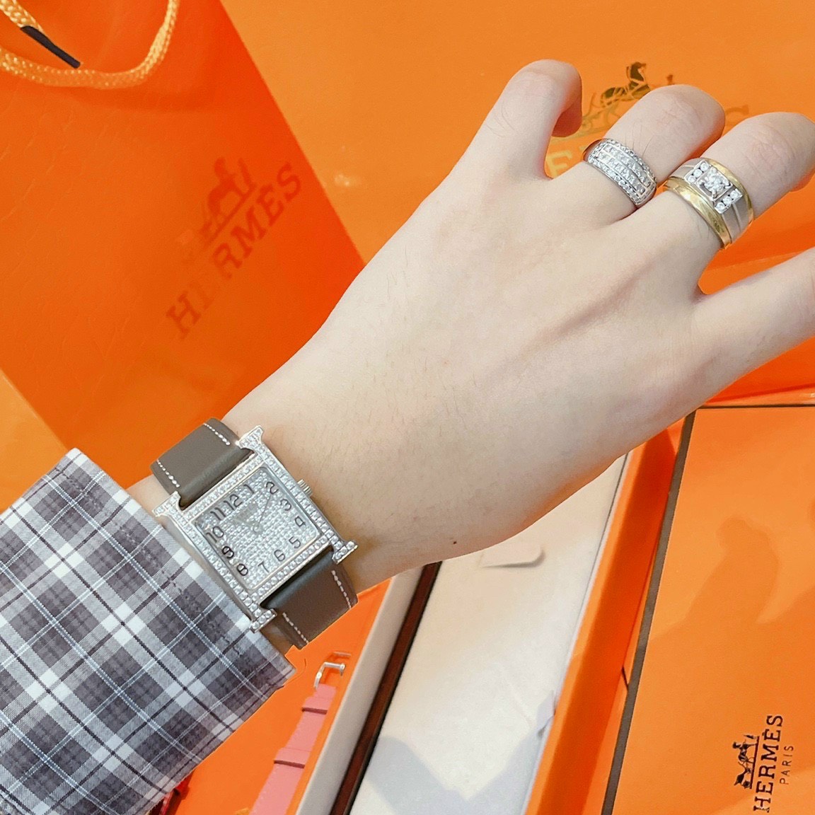 Đồng hồ Hermes nữ mặt vuông đính đá Hermes Heure H Full Diamond 3 màu Like Auth