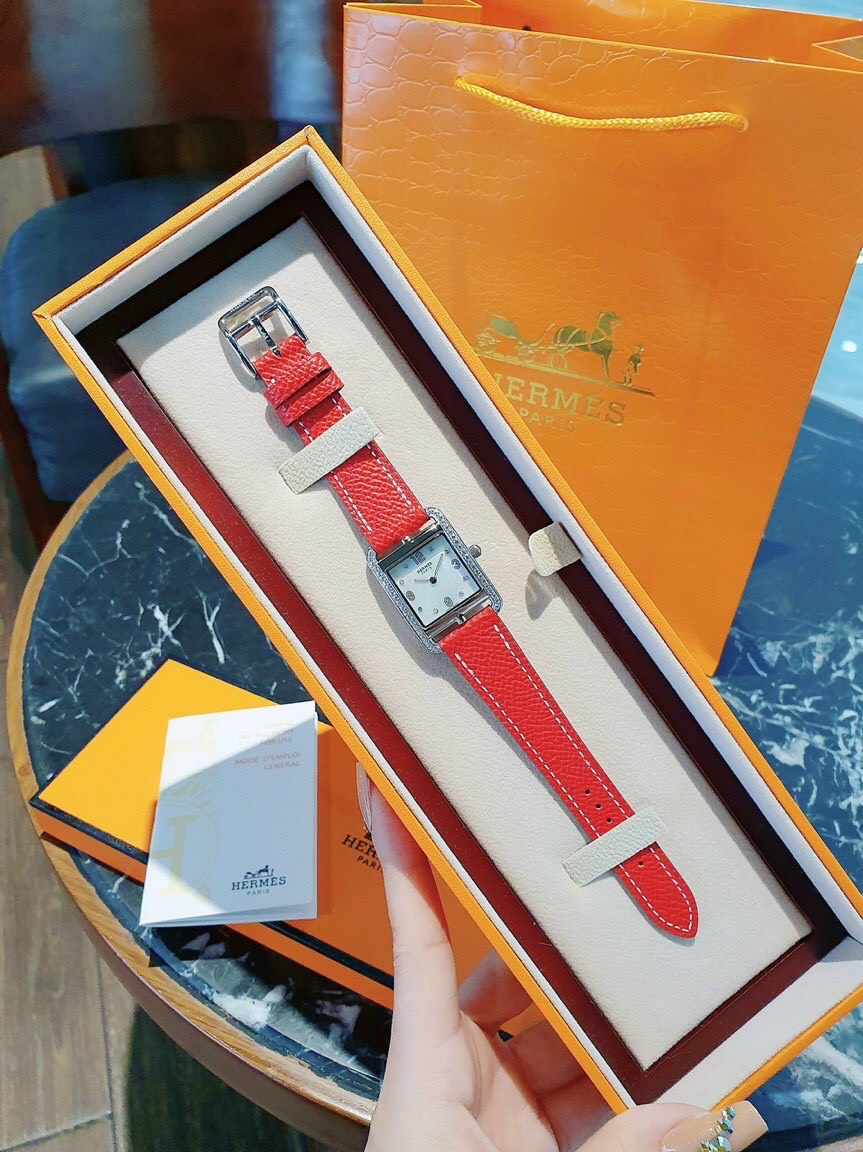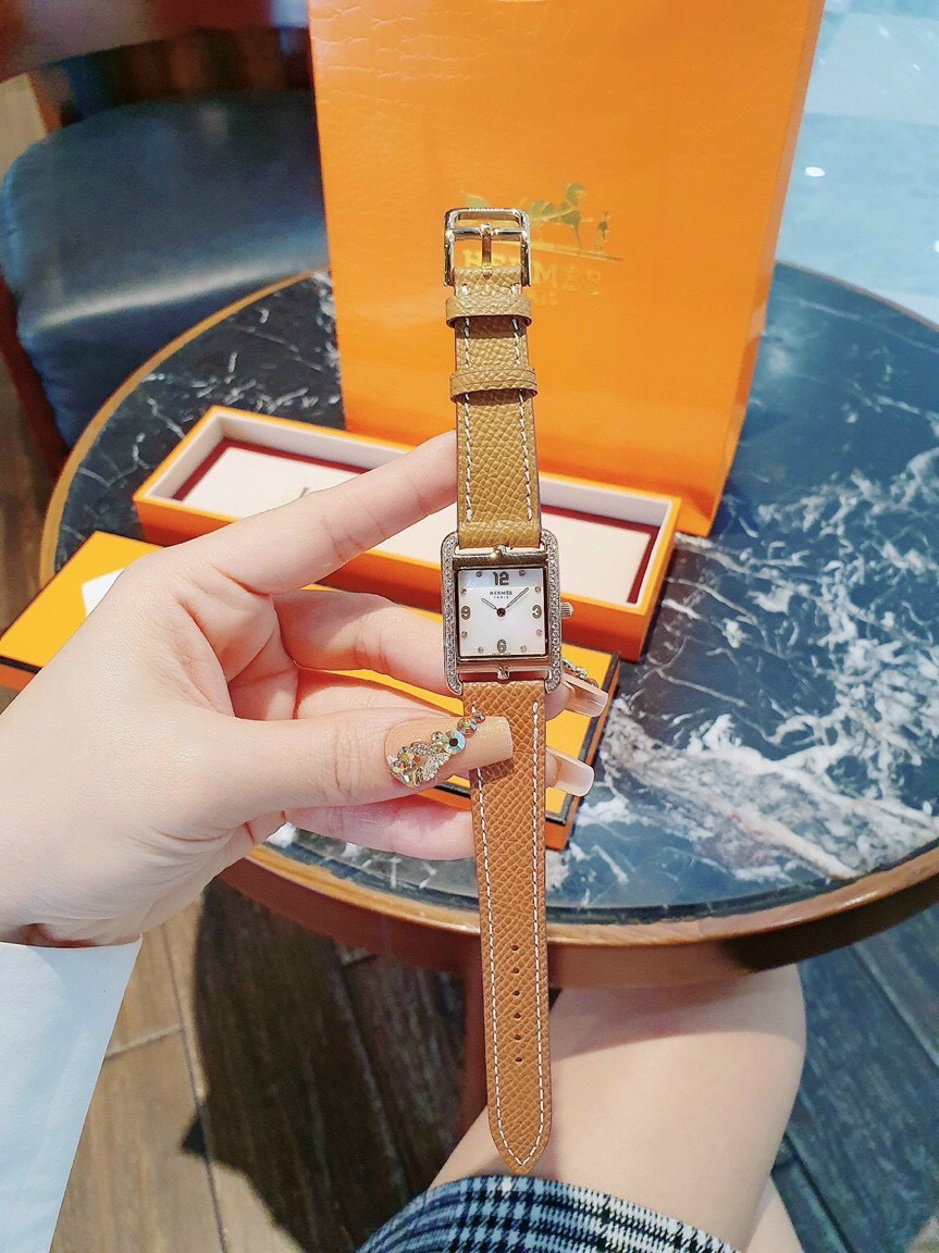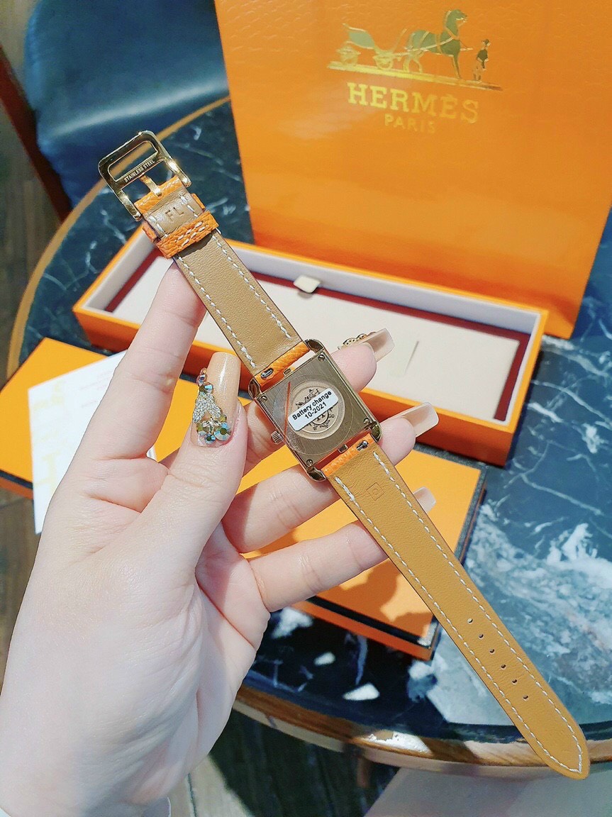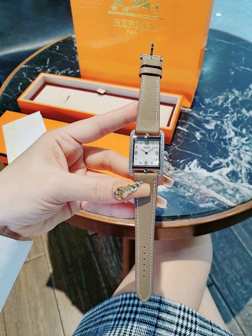 Đồng hồ Hermes nữ mặt vuông đính đá sang chảnh Super Fake 1:1 25mm