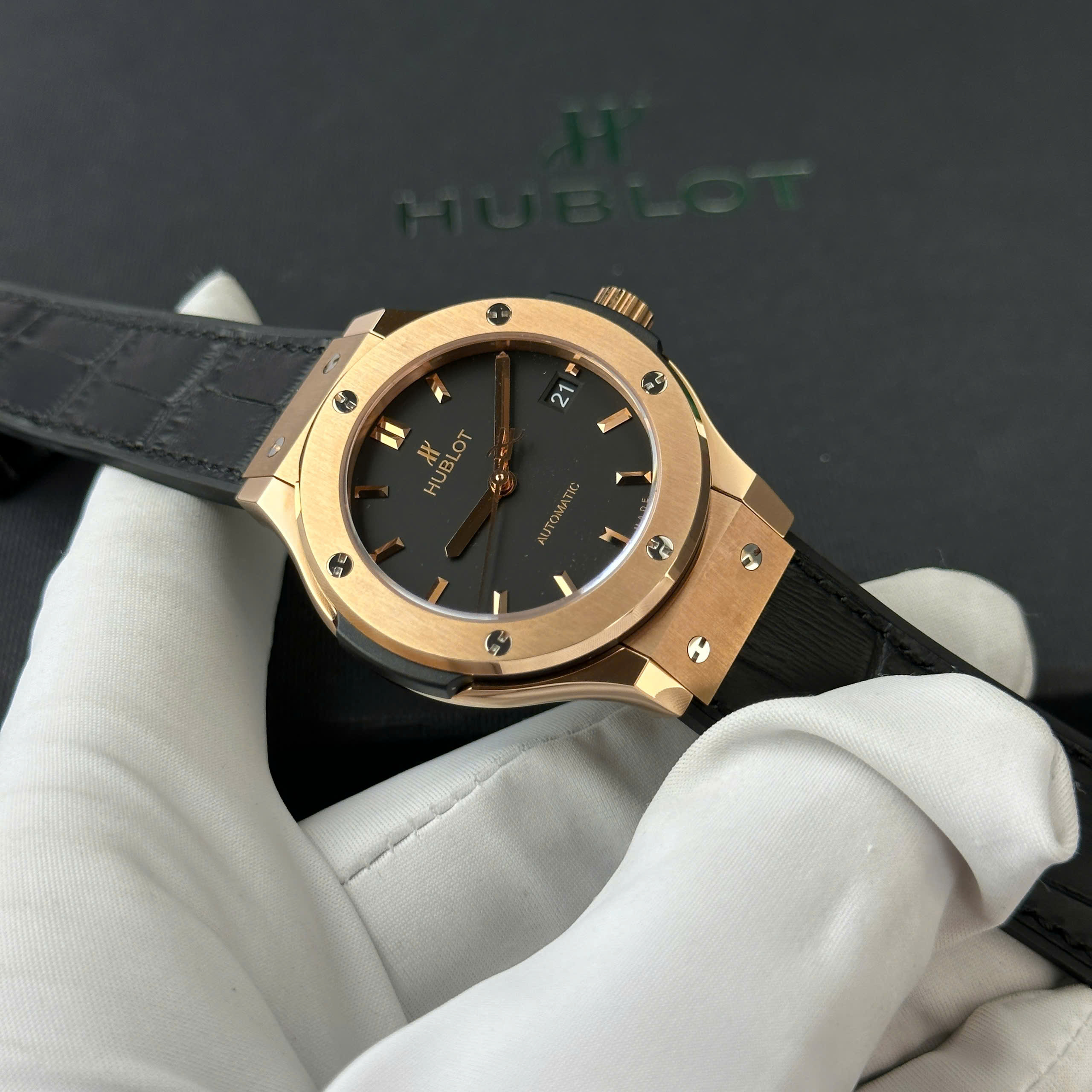Hãy cũng DWatch tham khảo mẫu Đồng hồ Hublot Classic Fusion King Gold Replica 11 mặt đen nhà máy JJF 38mm nhé !