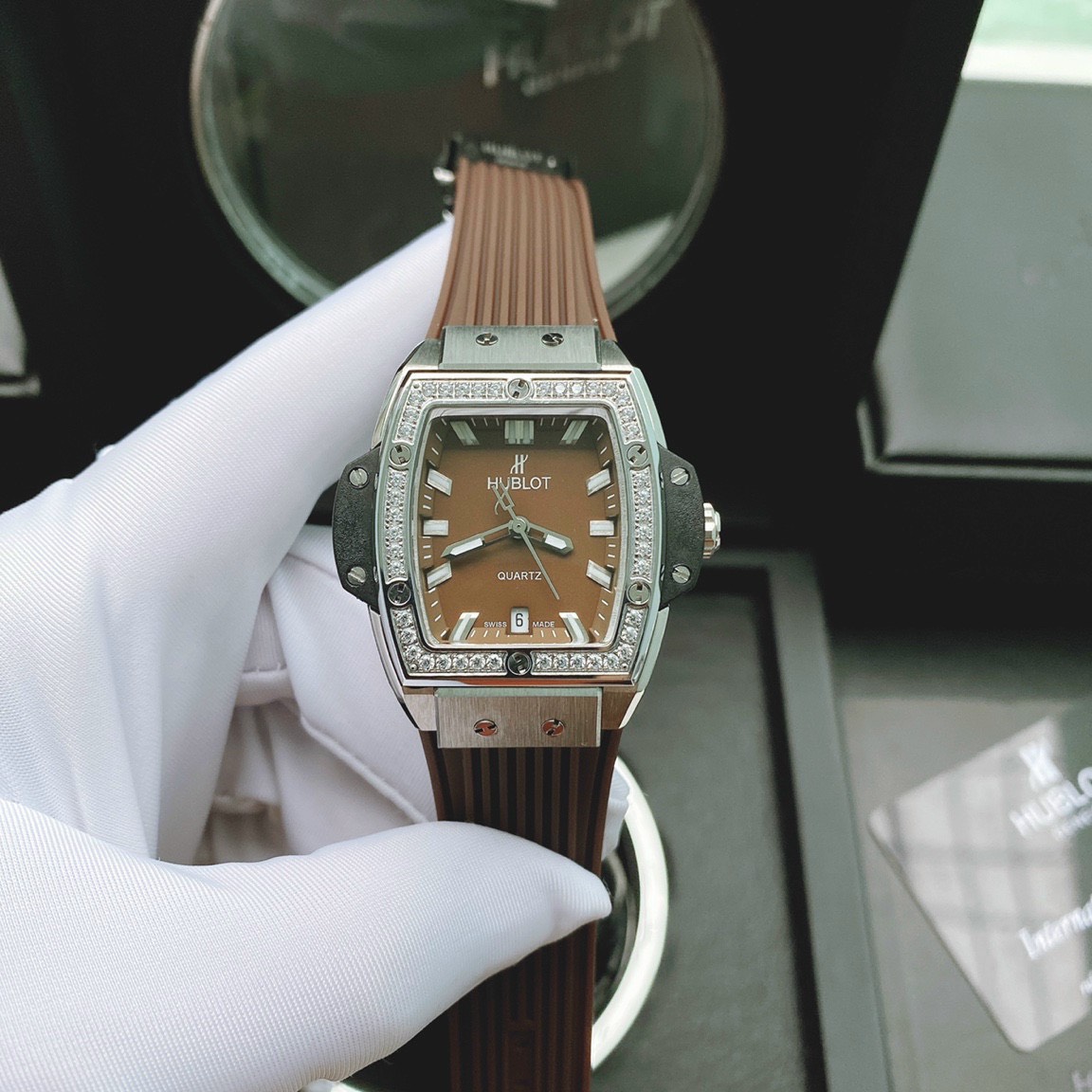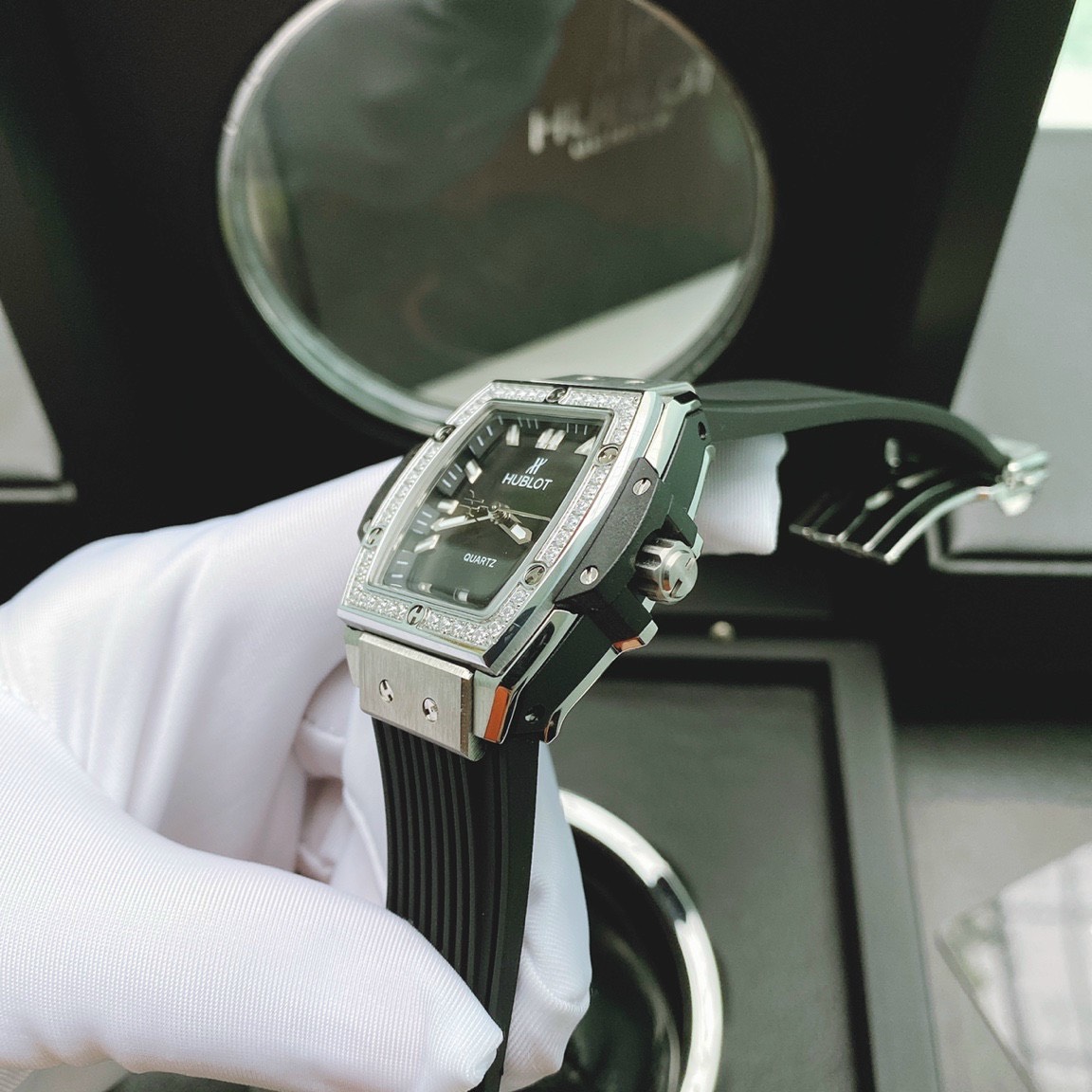 - Viền đồng hồ Hublot đính đá Swarovski sáng lấp lánh sang chảnh