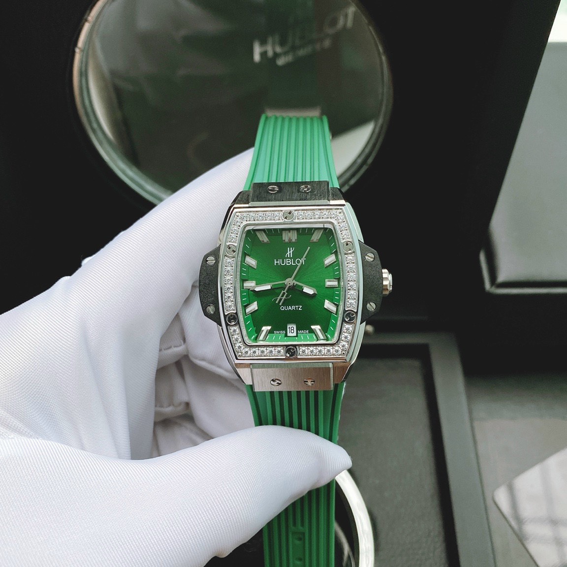 Đồng hồ Hublot dây cao su màu xanh lá cây