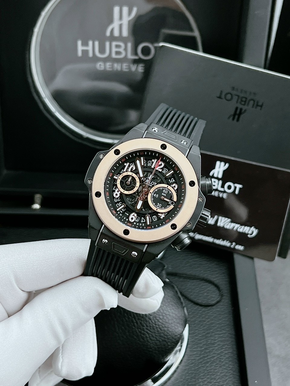 Đồng hồ Hublot Fake Nhật cao cấp nam dây cao su màu đen