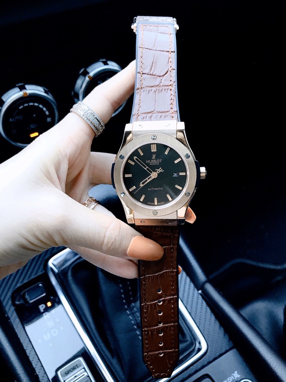 Đồng hồ hublot nam cơ kinh điển màu nâu lịch lãm.