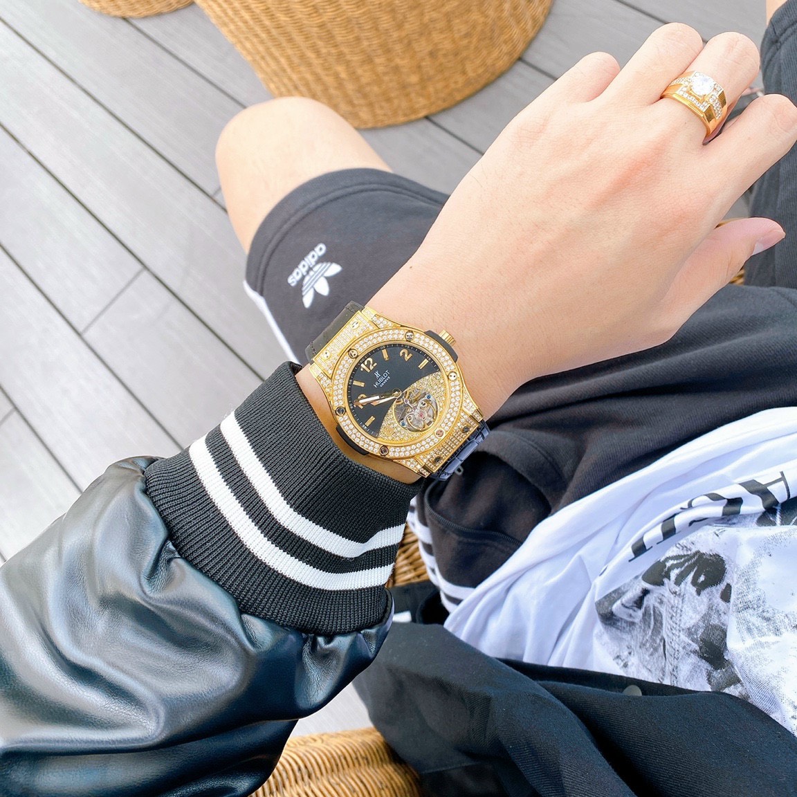 - Mặt đồng hồ Hublot nam đính đá cùng bộ số mạ vàng đơn giản cuốn hút theo phong cách riêng