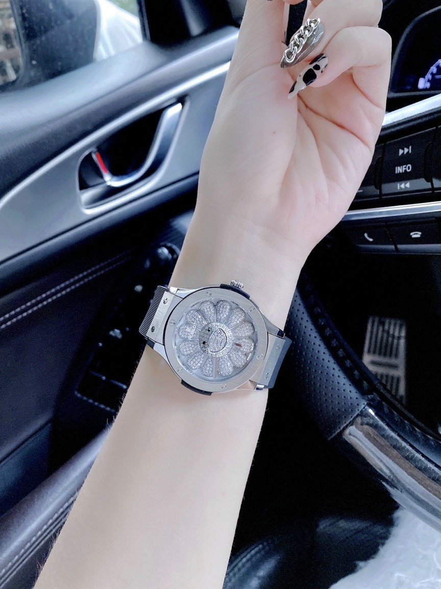 - Mặt đồng hồ Hublot đính đá hình hoa hướng dương xoay tự động quyến rũ