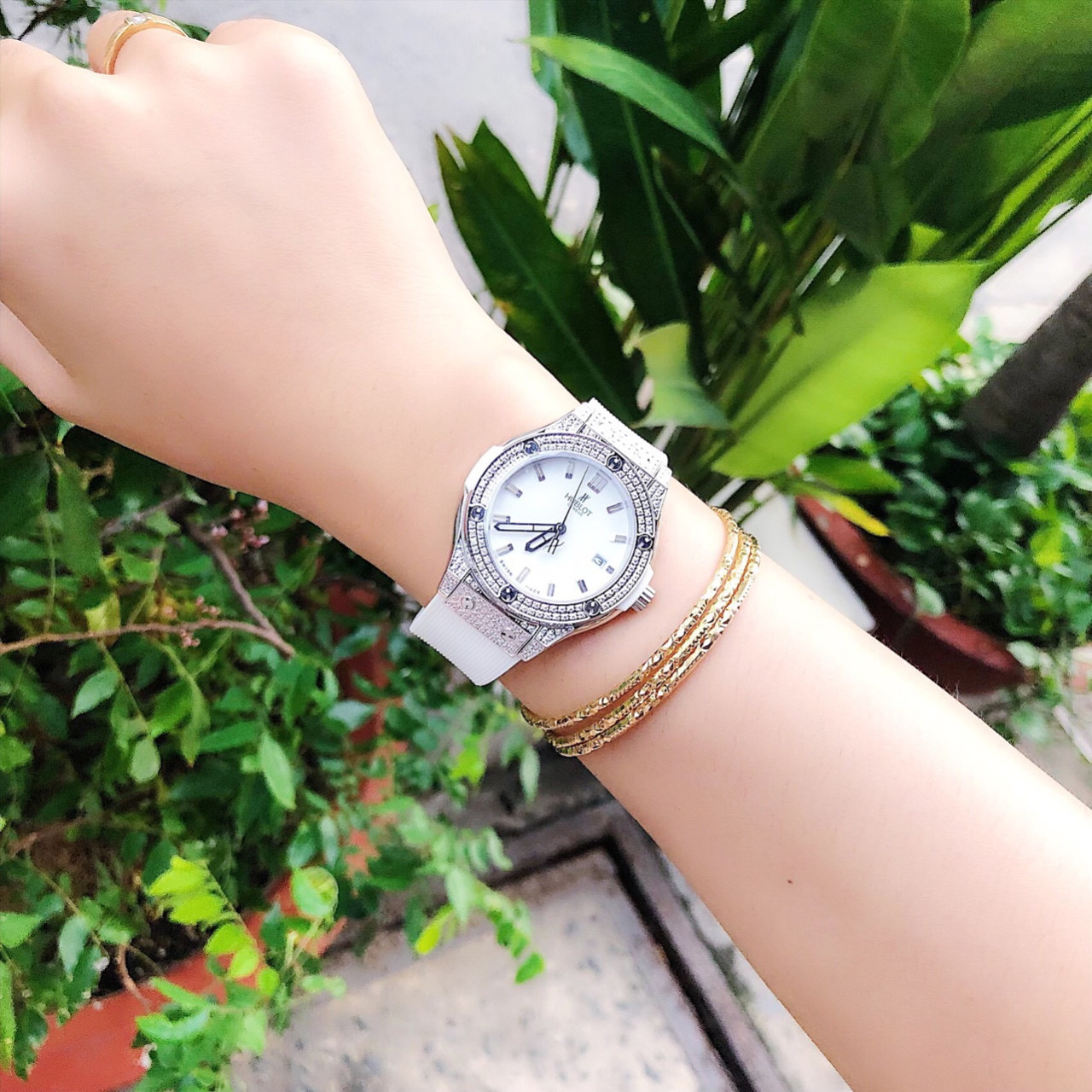 - Viền đồng hồ hublot nữ đính full đá swarovski sáng lấp lánh sang chảnh