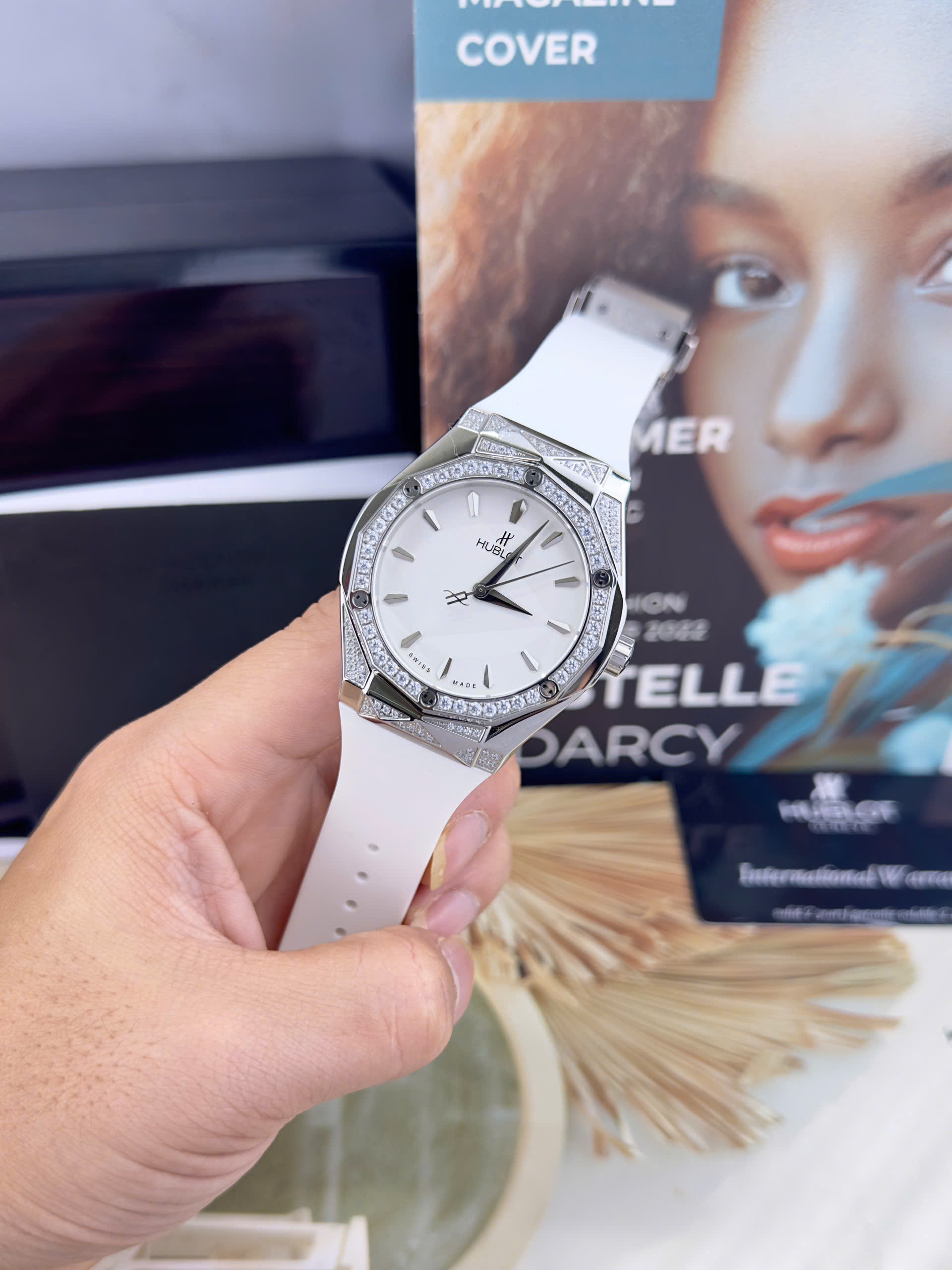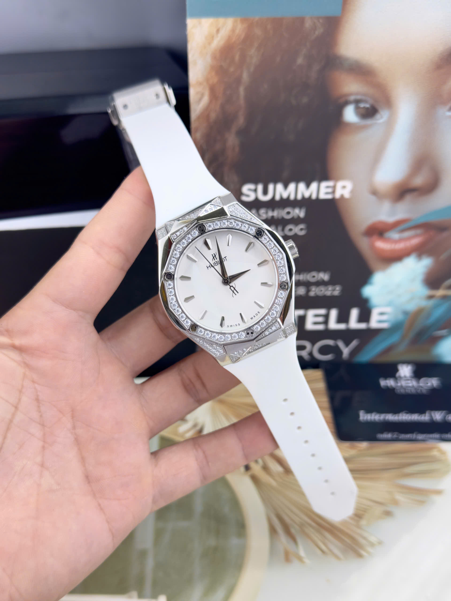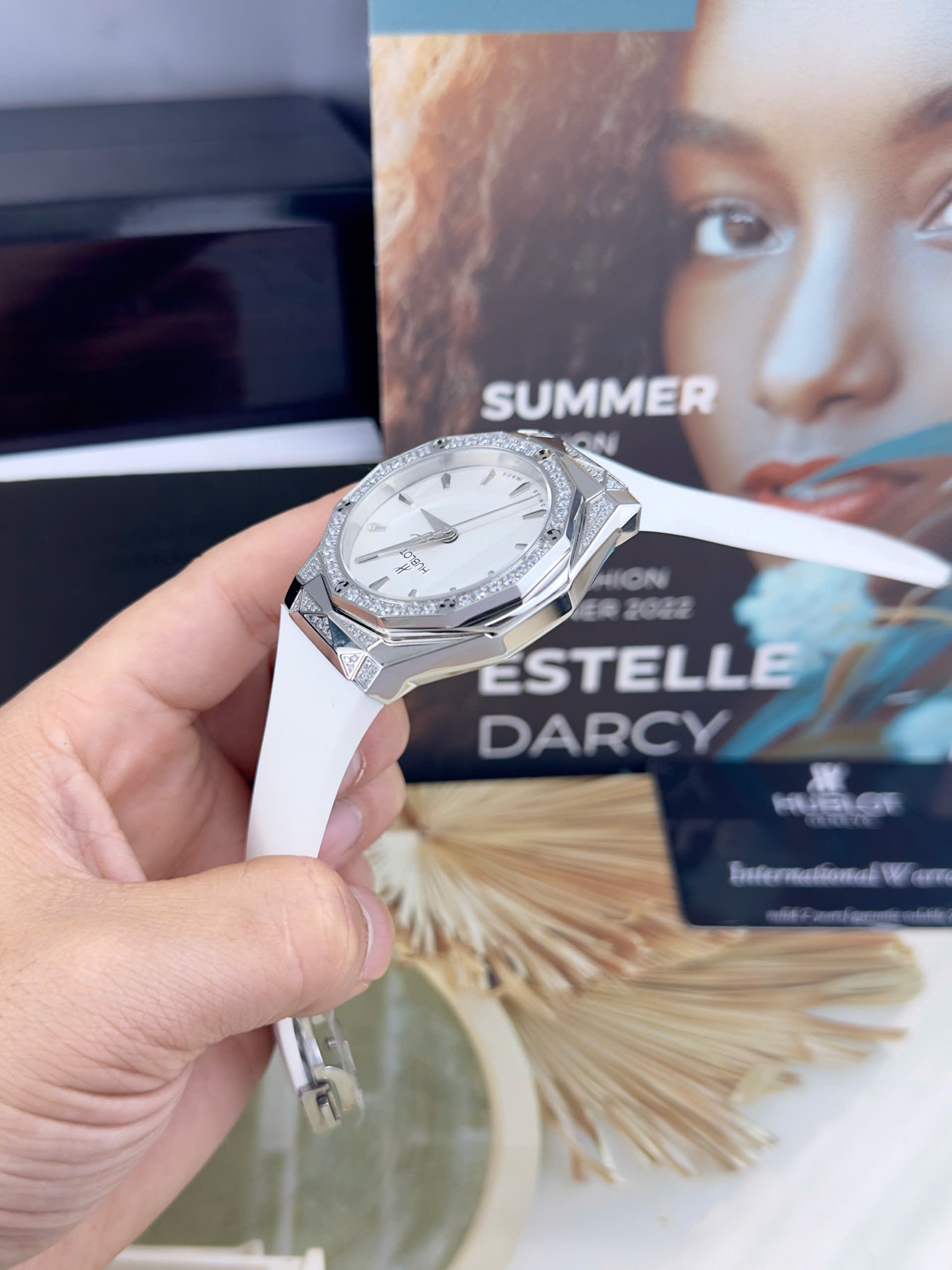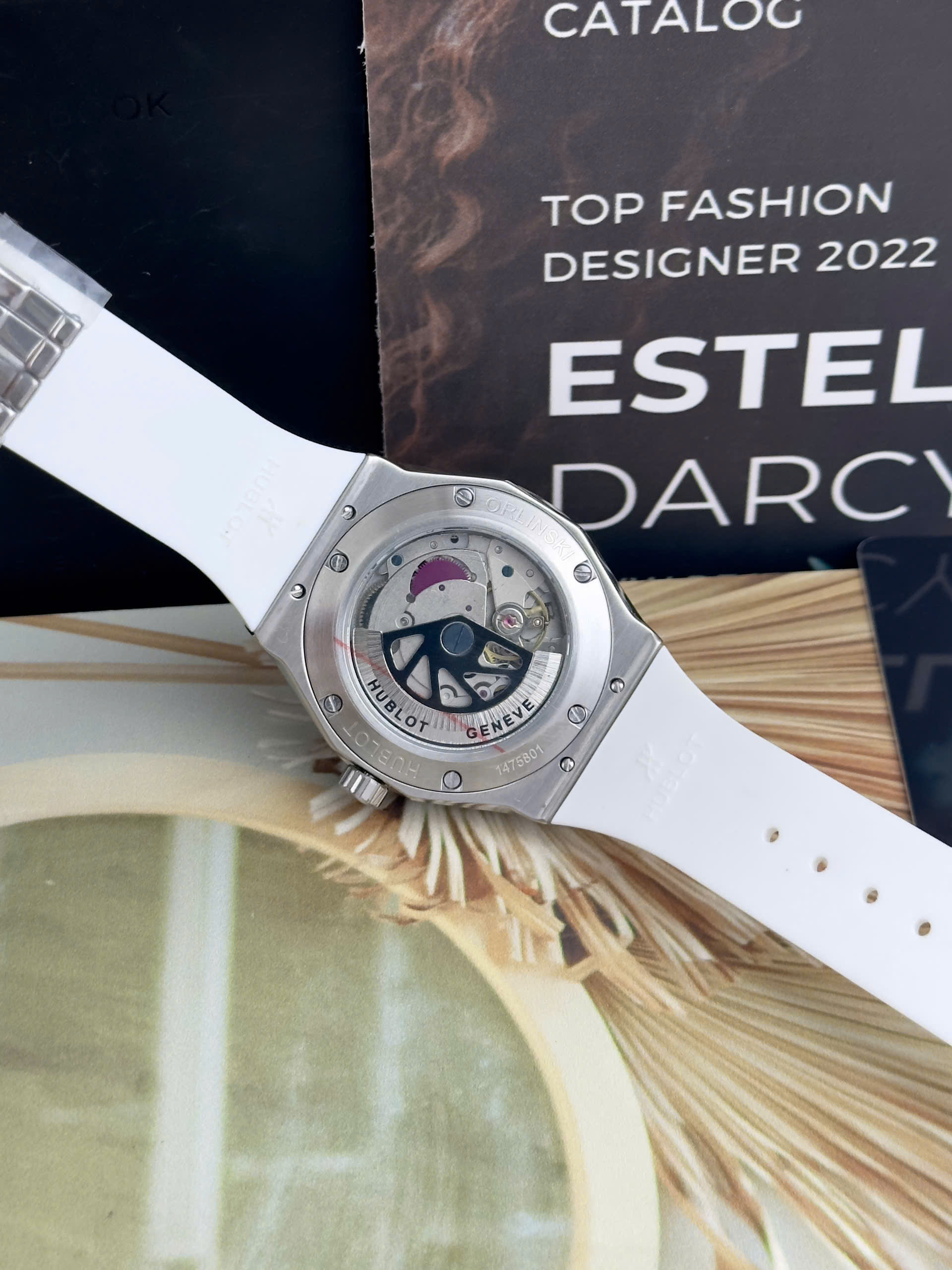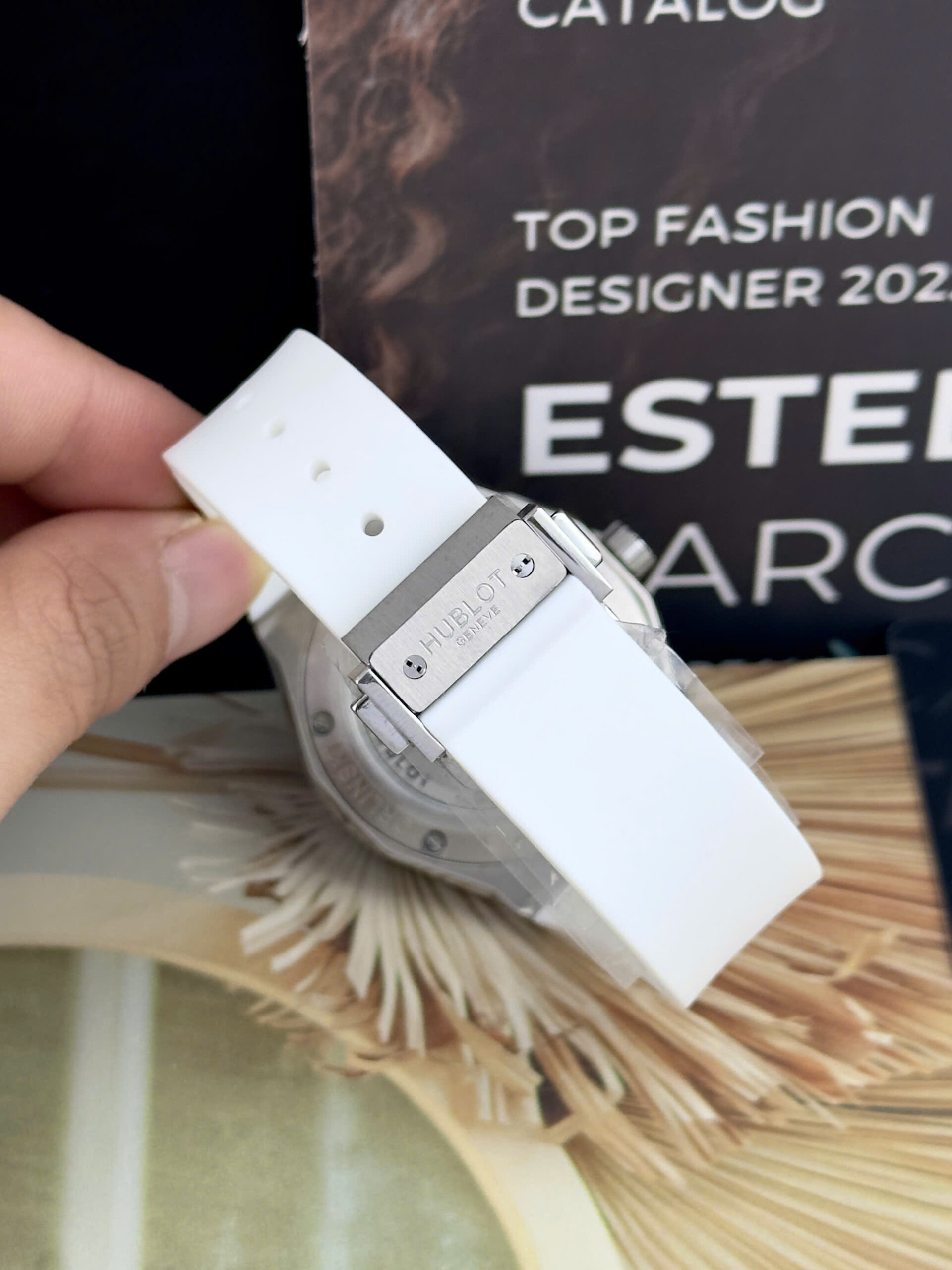 Đồng hồ Hublot Orlinski đính đá CZ dây cao su trắng fake cao cấp 40mm