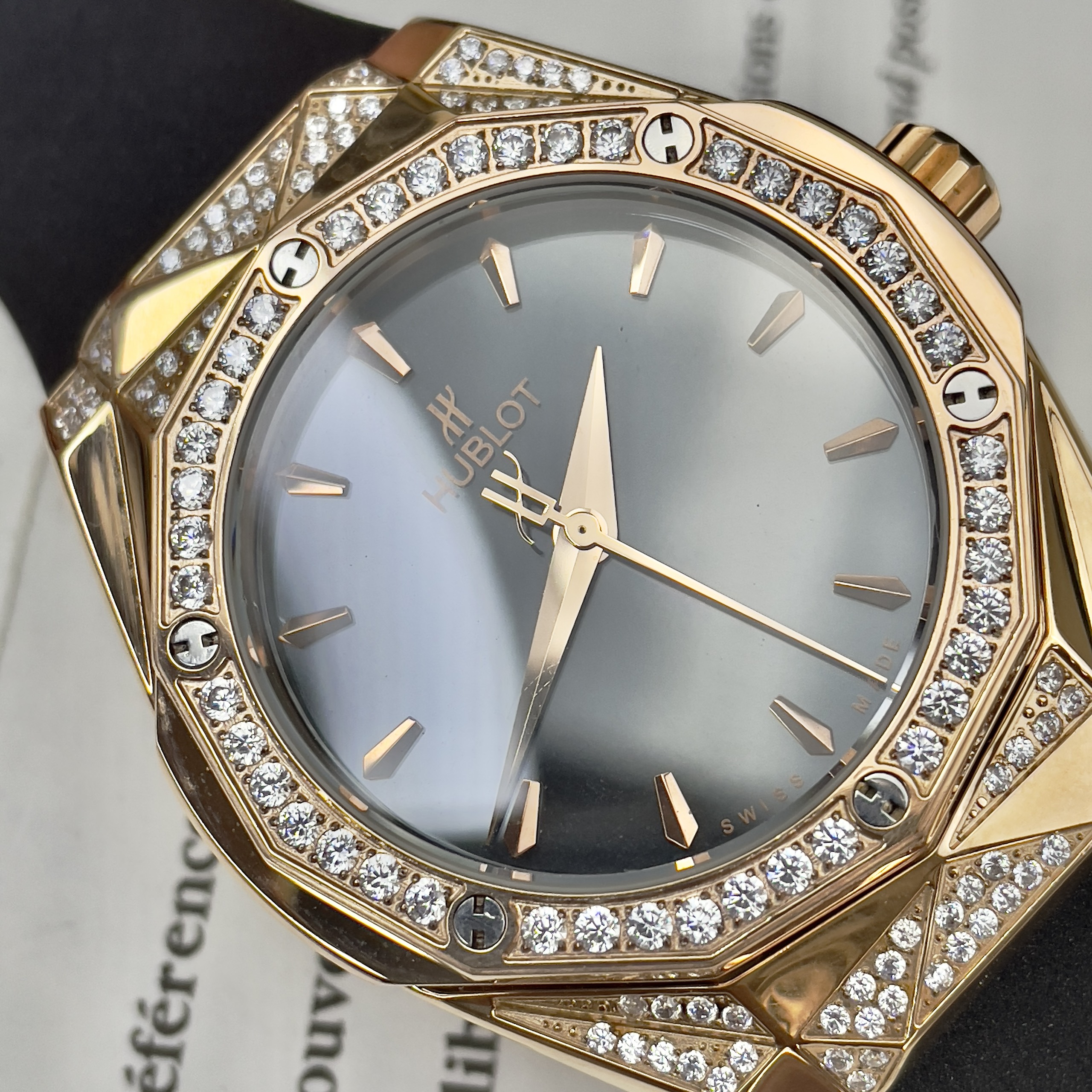 Đồng hồ Hublot rep còn nổi tiếng với các phiên bản đính đá sang trọng, thể hiện sự quý phái và đẳng cấp.