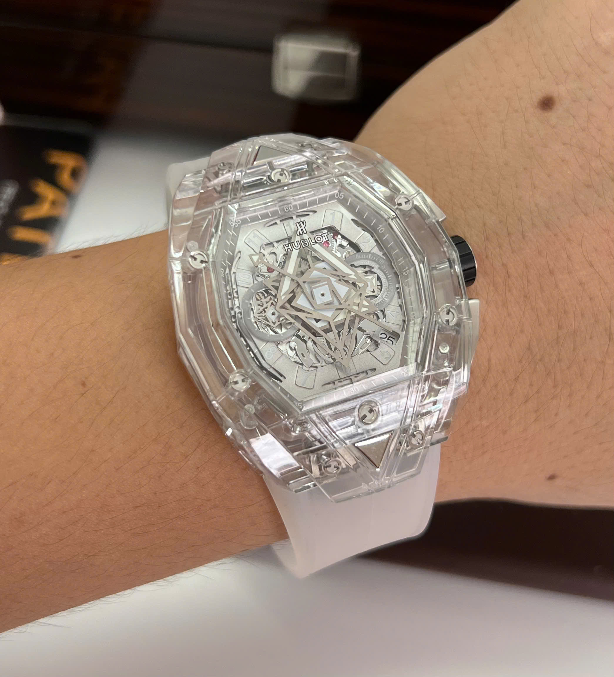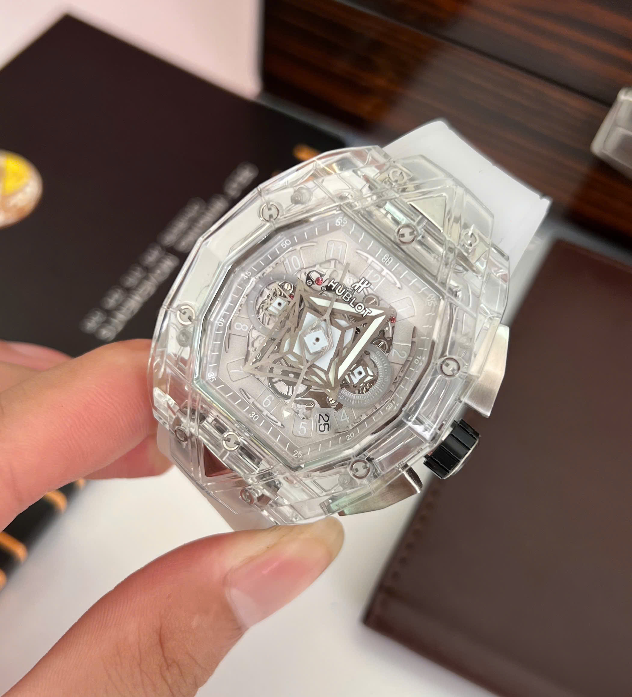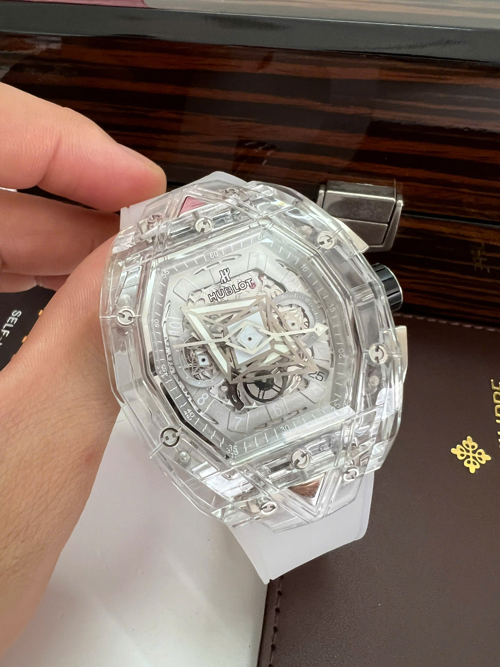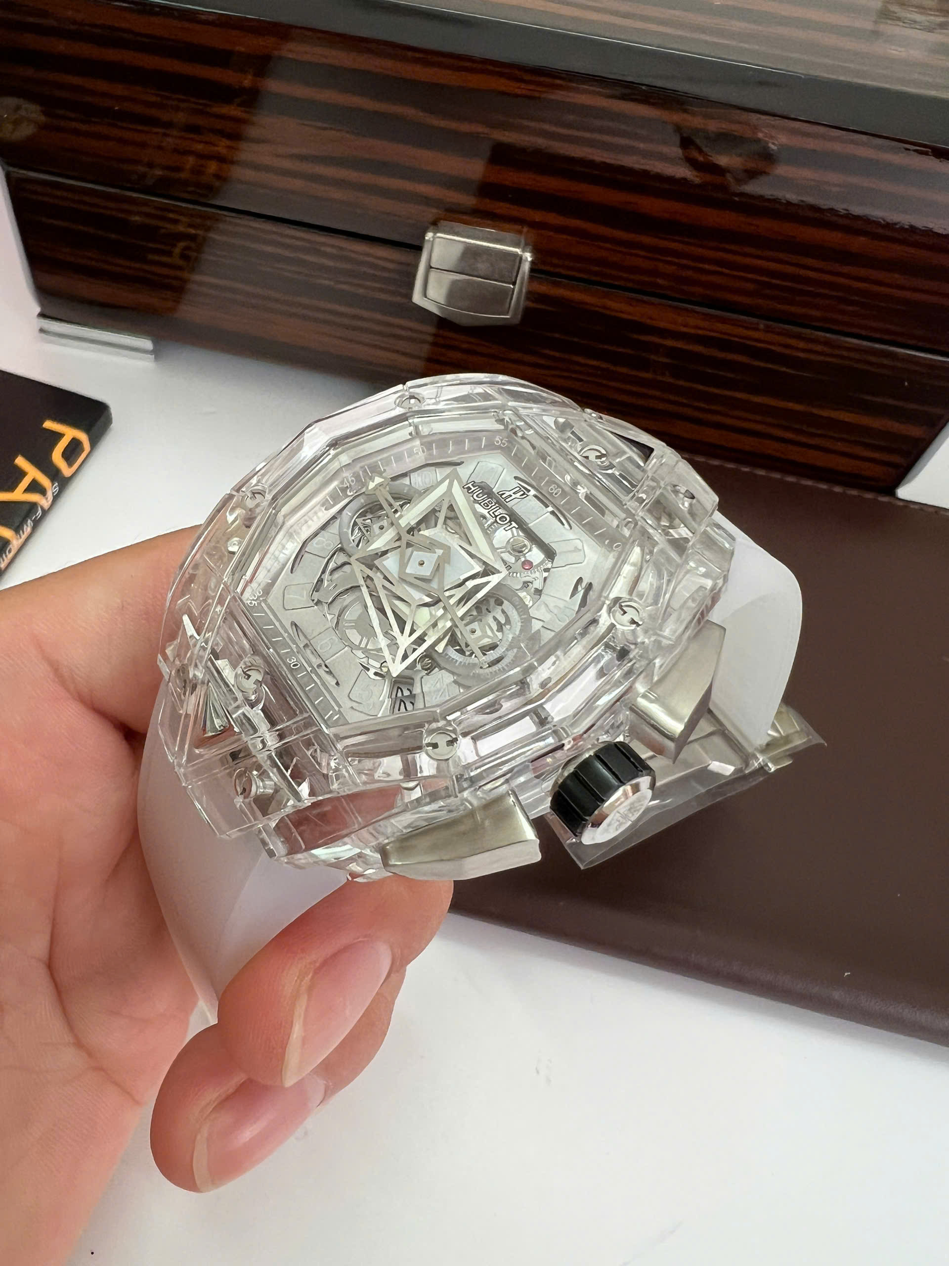 Đồng hồ Hublot Spirit Big Bang Bleu nam vỏ Sapphire trong suốt fake cao cấp 42mm