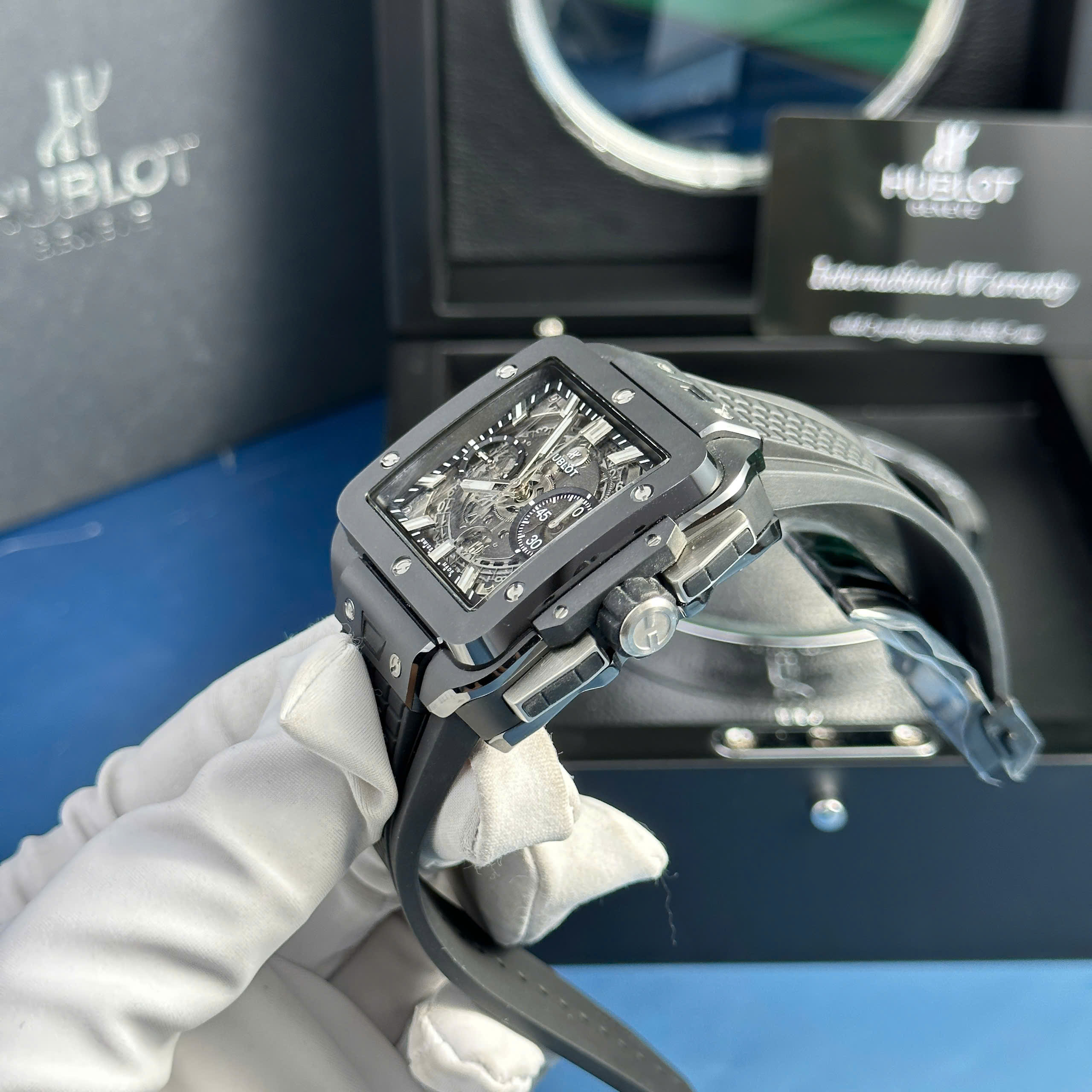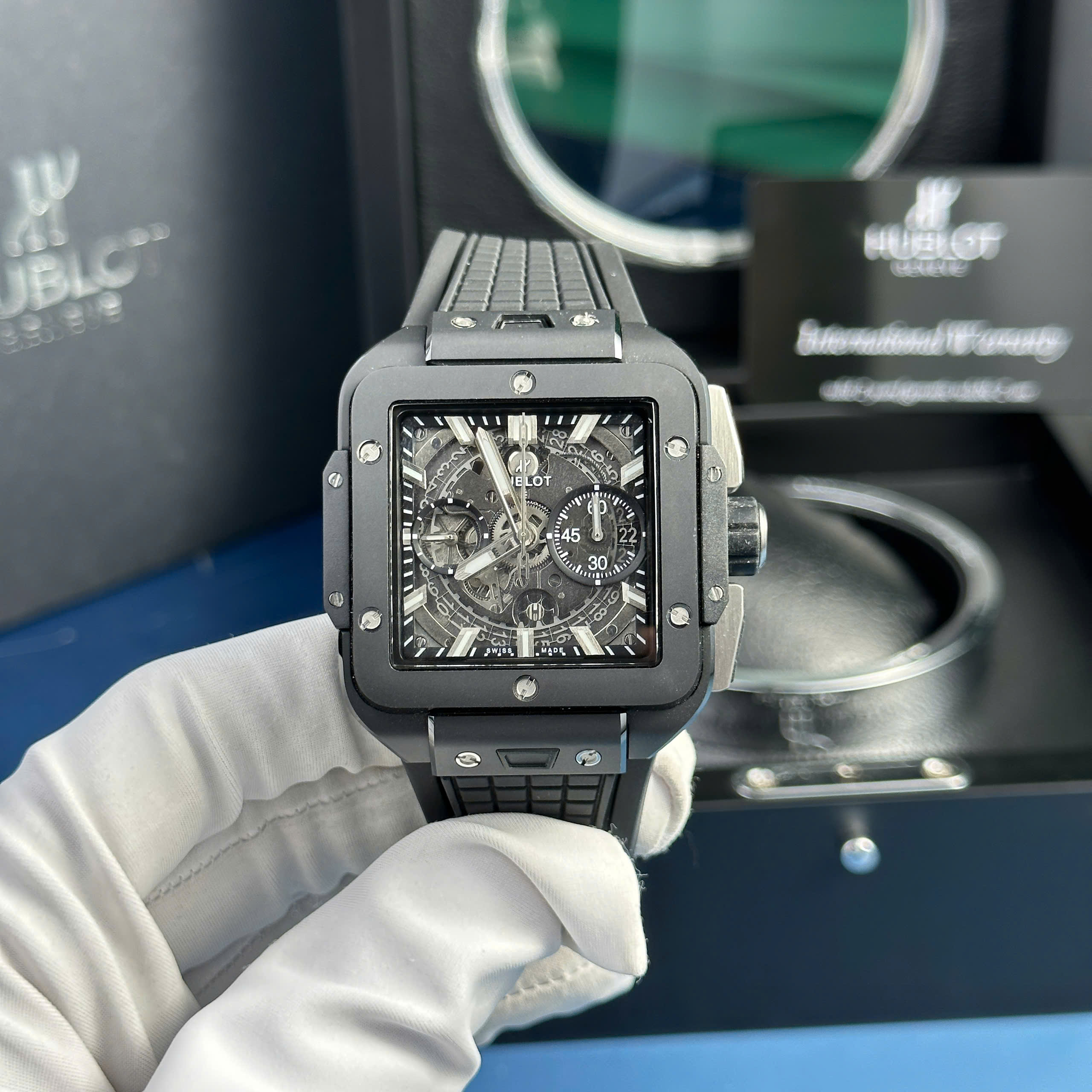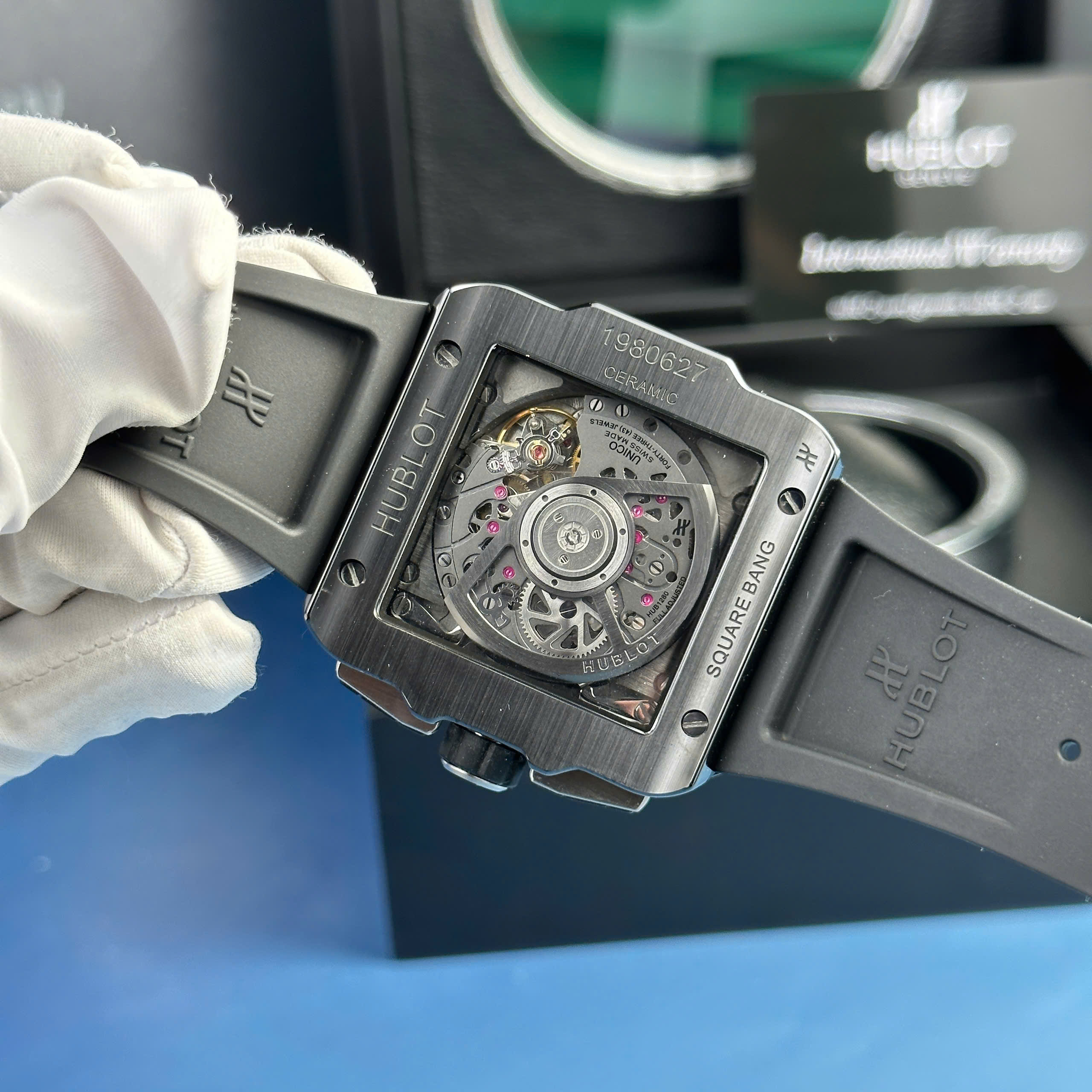 Đồng hồ Hublot Square Bang Unico gốm đen Rep 11 nhà máy BBF phiên bản sao chép chuẩn 1:1 chạy đầy đủ chức năng.