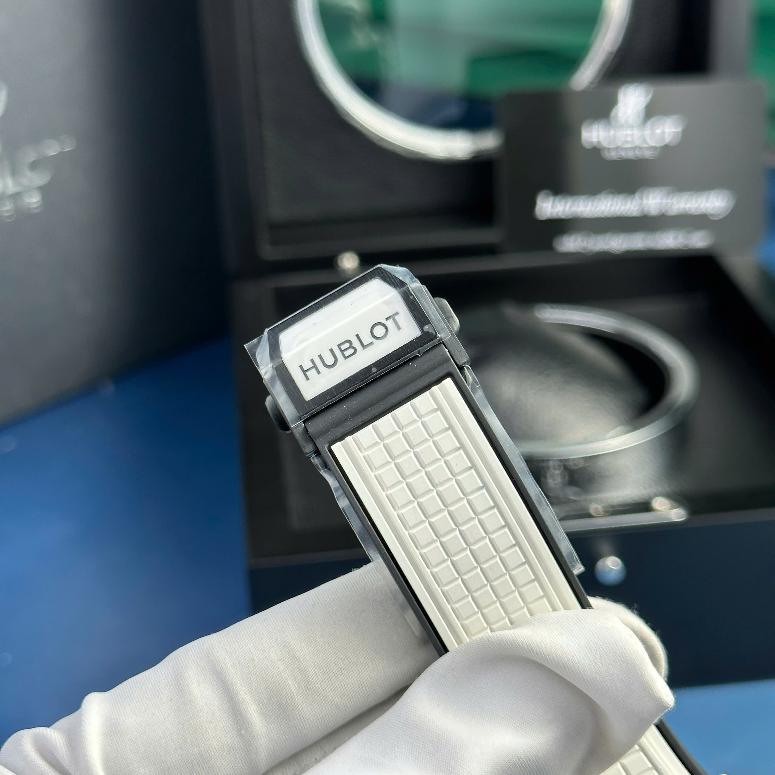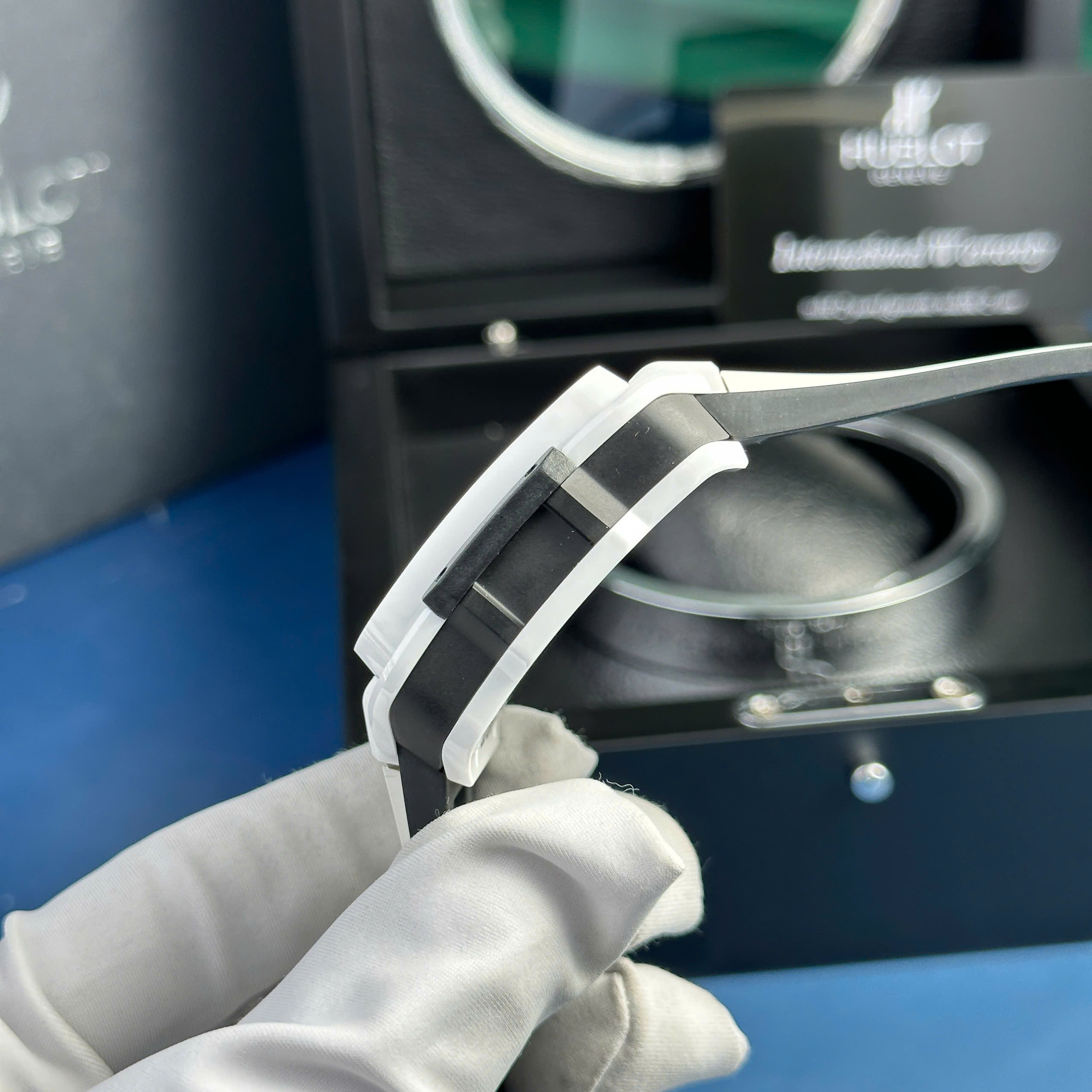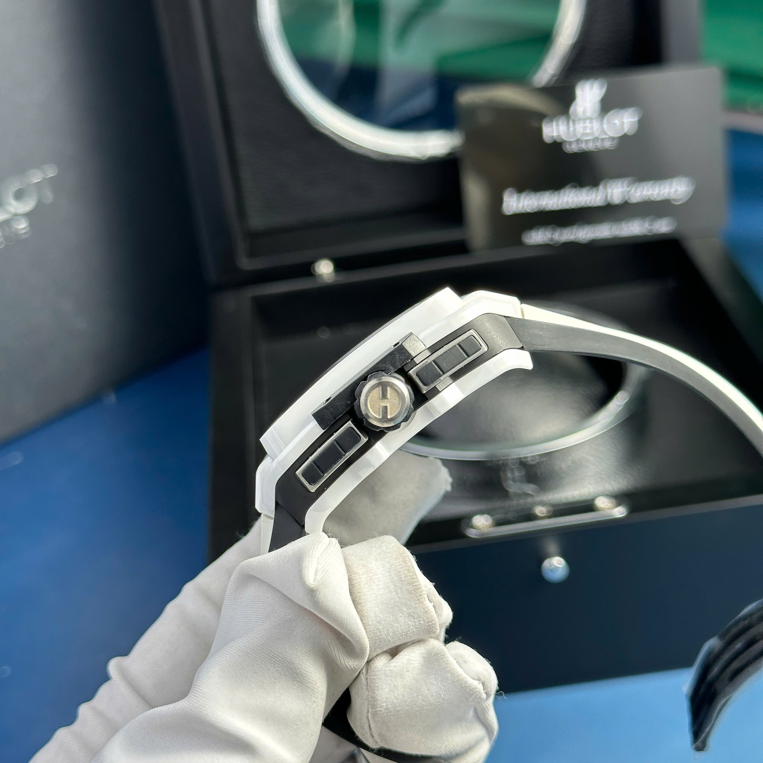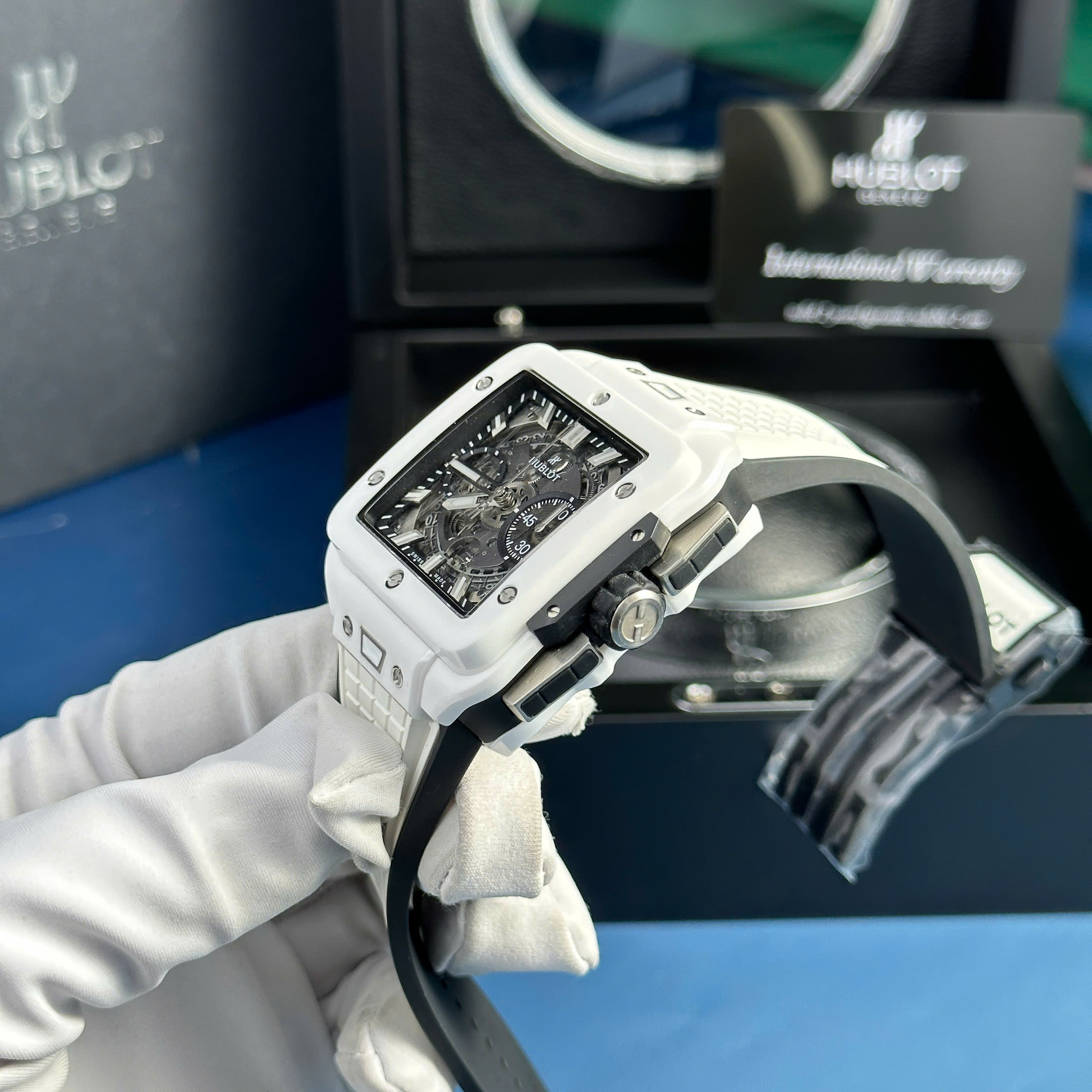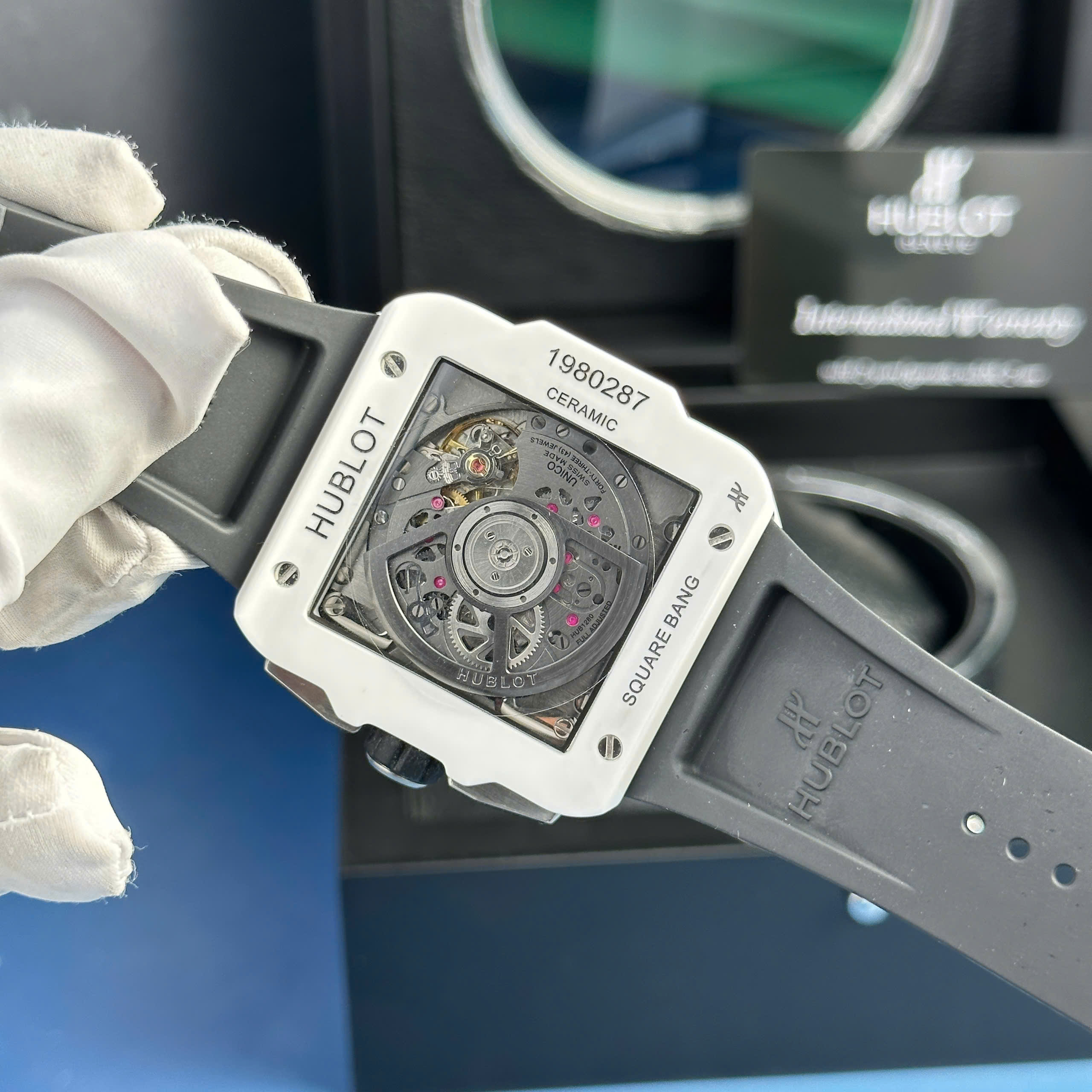 Đồng hồ Hublot Square Bang Unico gốm trắng Rep 11 nhà máy BBF phiên bản sao chép chuẩn 1:1 chạy đầy đủ chức năng.